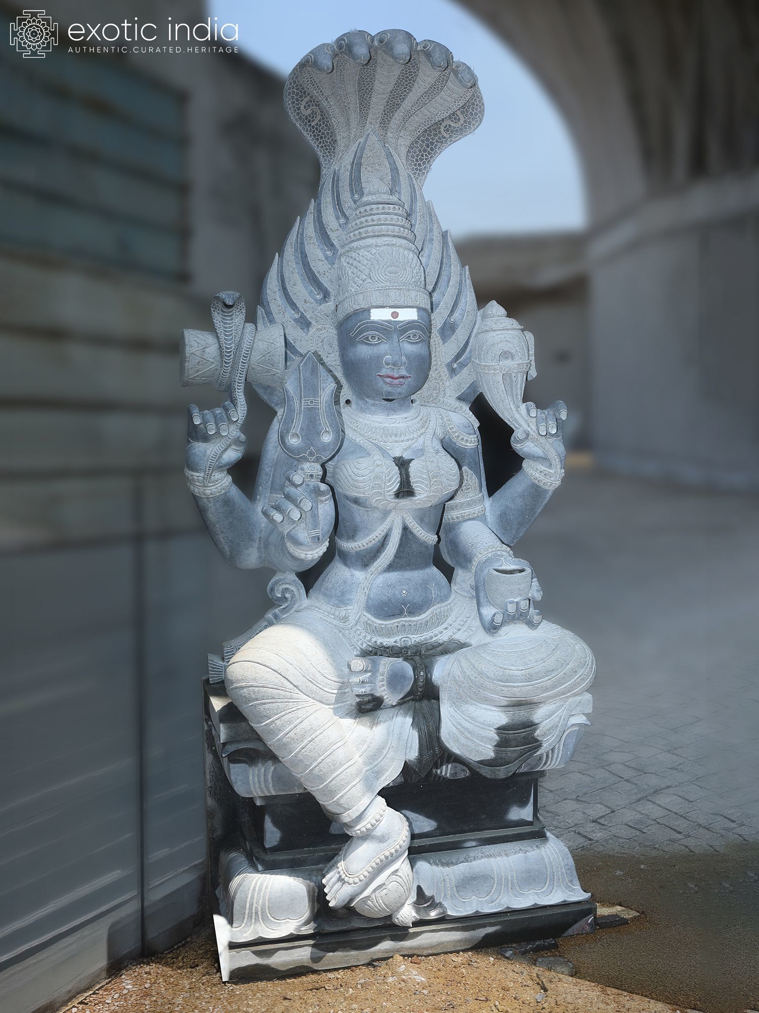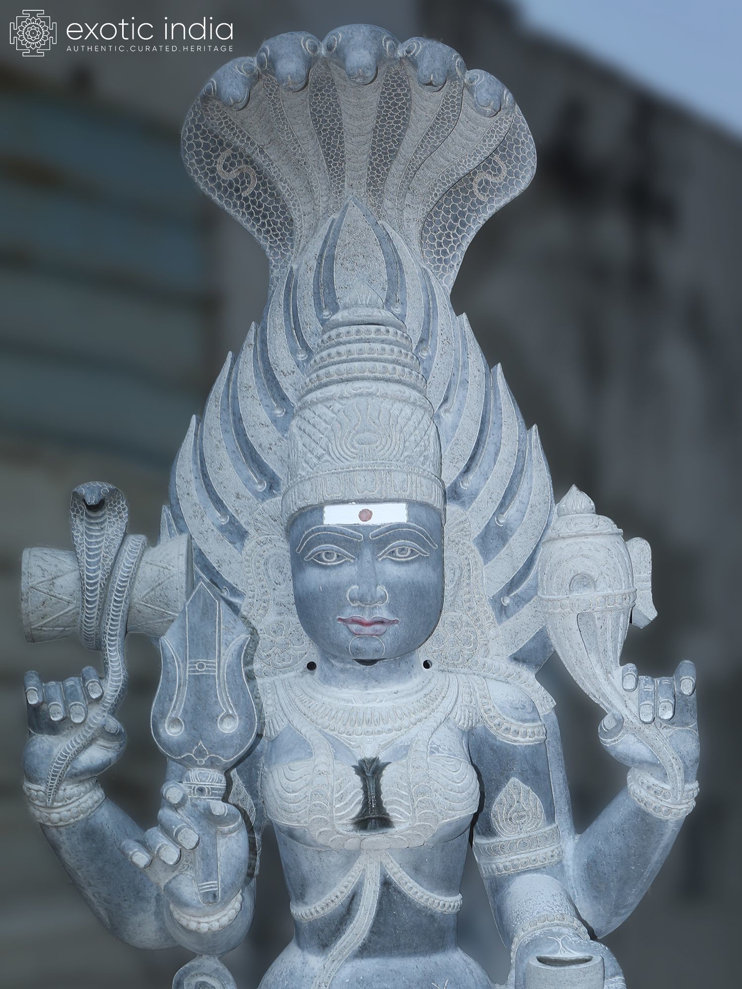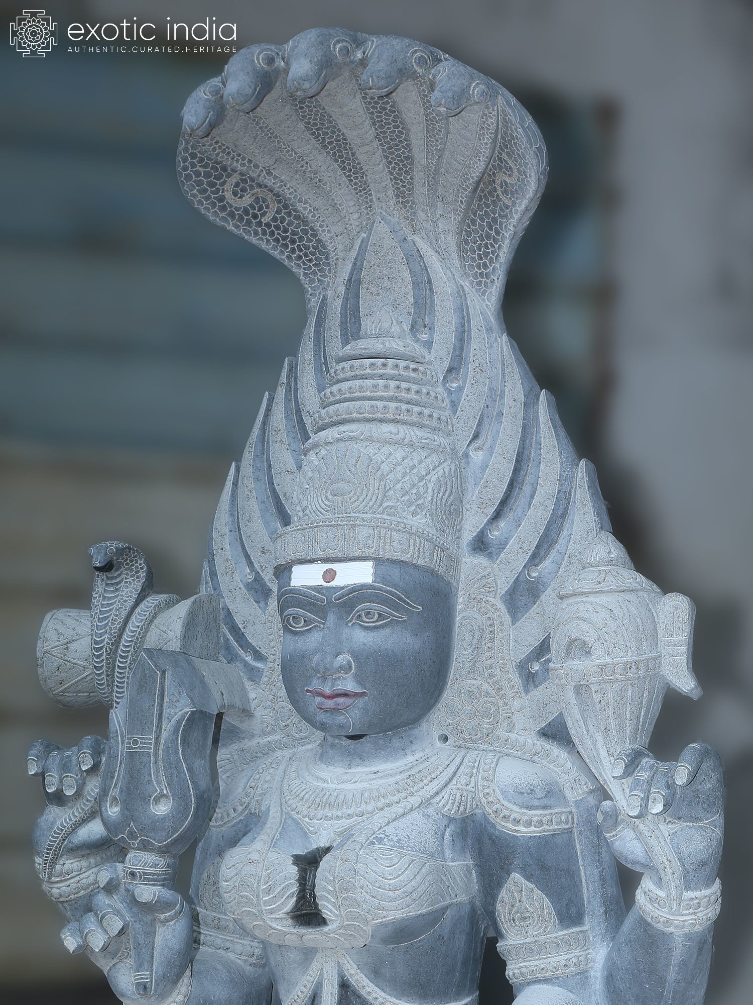 Intricate carving showcases the multi-headed cobra hood and divine iconography.