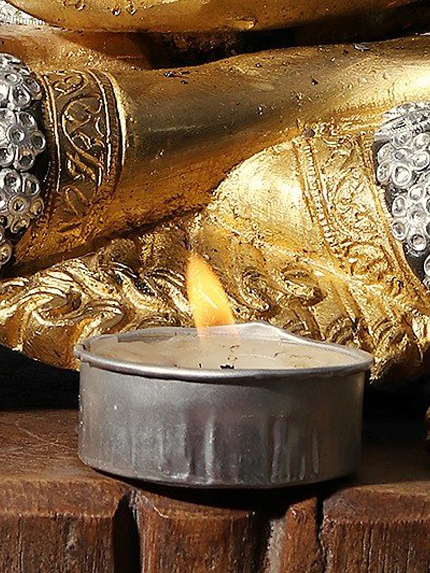 With the immense vibration of his mantra, Blessing Buddha can heal a person's body and psyche. Although it is natural to believe that physical issues necessitate physical therapy, Blessing Buddha's teachings are supposed to cure people through spiritual practices. His eyes are closed, and his short curls cover his head. Buddha's skull crest represents transcendental wisdom, and his earlobes are extended in his characteristic avatar.