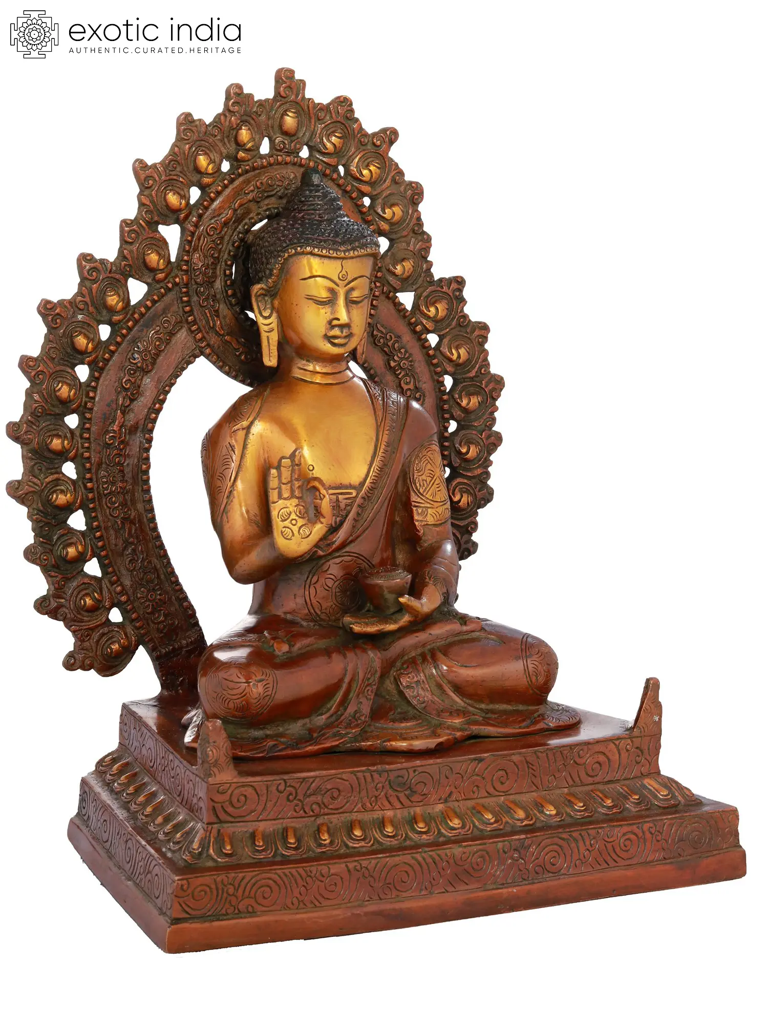 11" Blessing Buddha Seated on Fine Throne In Brass | Handmade | Made In India