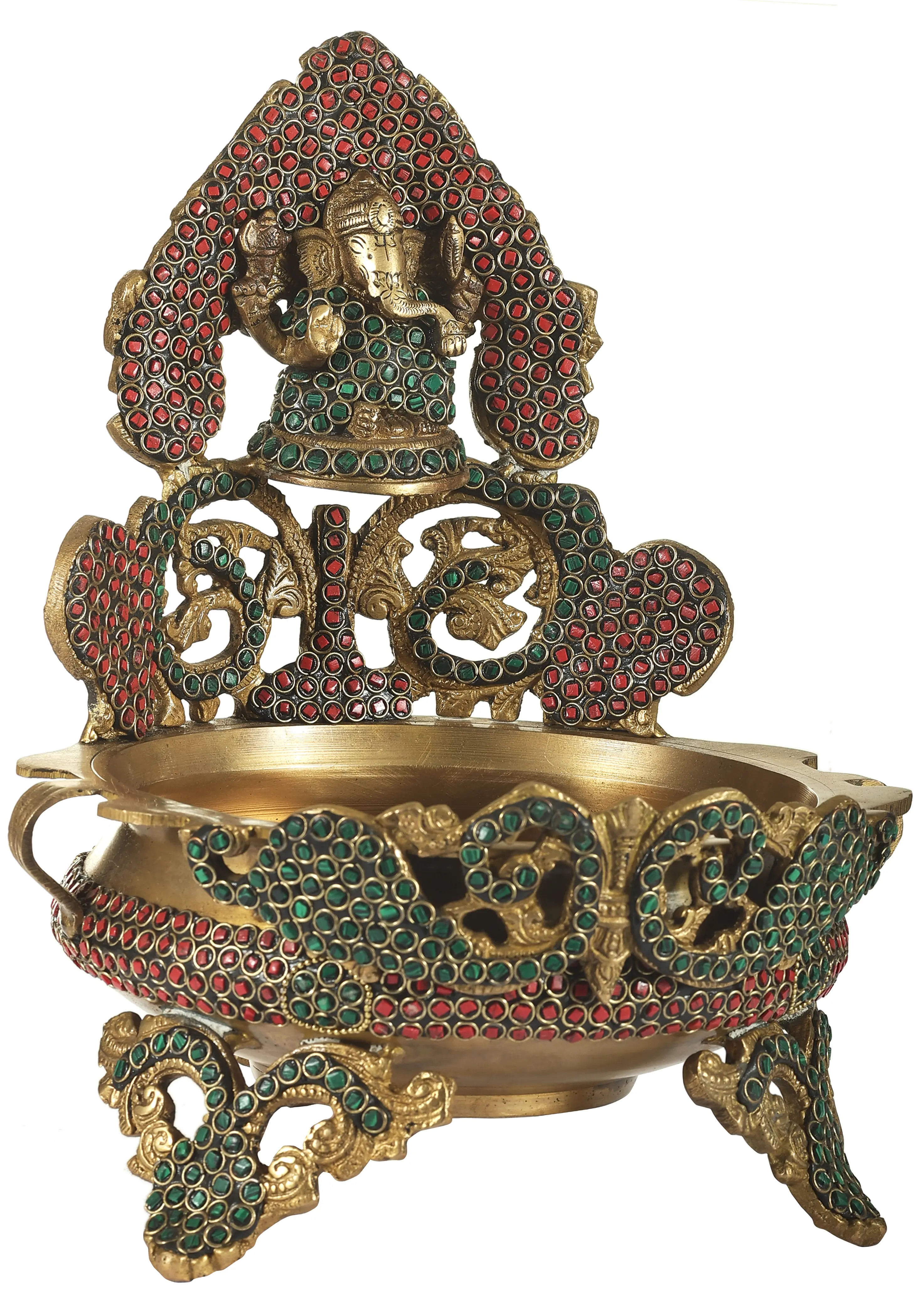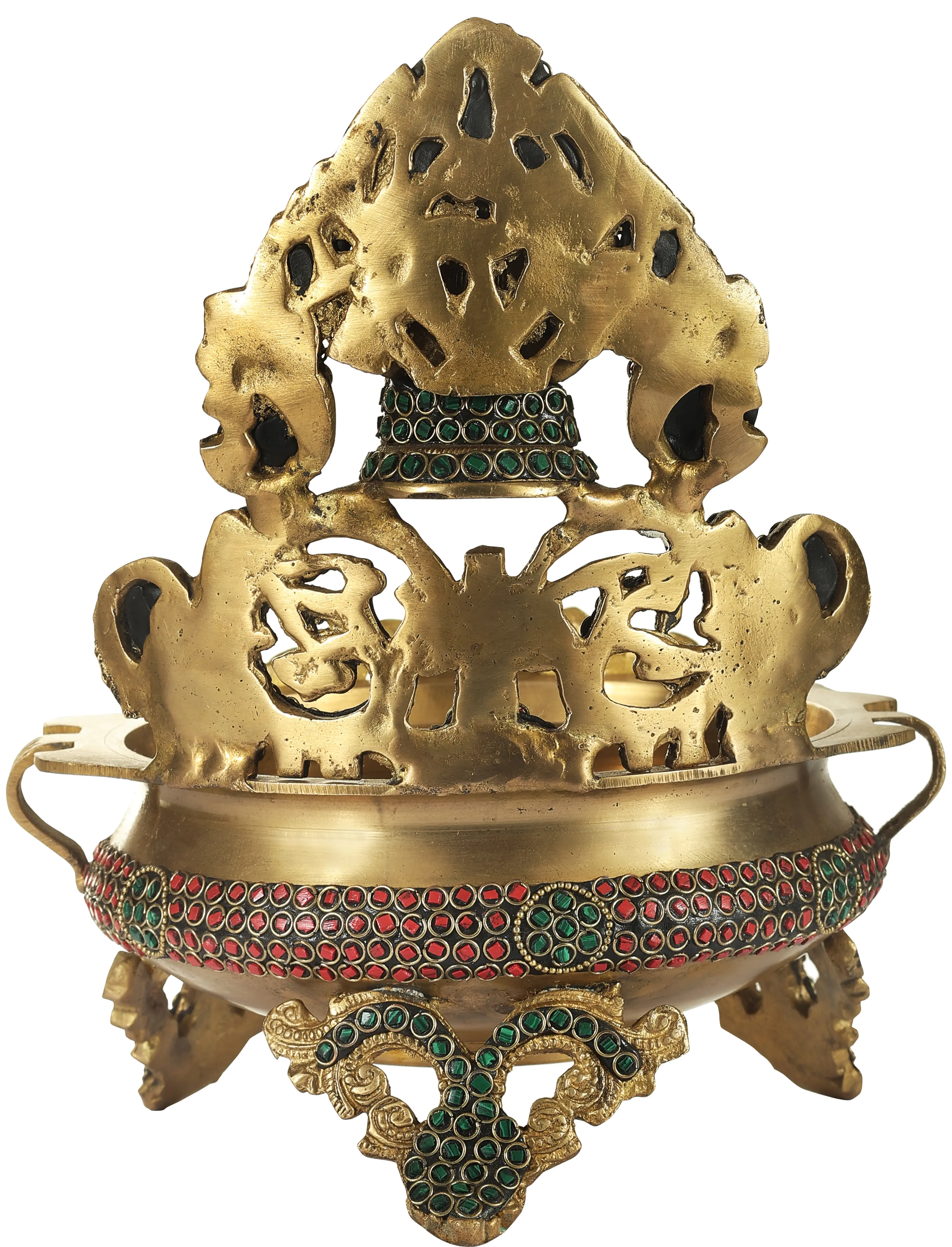 Celebrate the divine presence of Lord Ganesha with Handmade Ganesha Urli adorned with exquisite inlay stone work in Brass, a magnificent creation crafted in India. This extraordinary urli showcases both artistry and spirituality, with Lord Ganesha, the remover of obstacles, gracing its center. The intricate stone inlay adds an extra dimension of beauty and charm to this piece. Handcrafted with meticulous care, it not only serves as a decorative centerpiece but also holds profound cultural and spiritual significance. By welcoming this urli into your home, you're connecting with the rich heritage of India and experiencing the deep sincerity behind its creation, invoking the blessings of Lord Ganesha in your space.