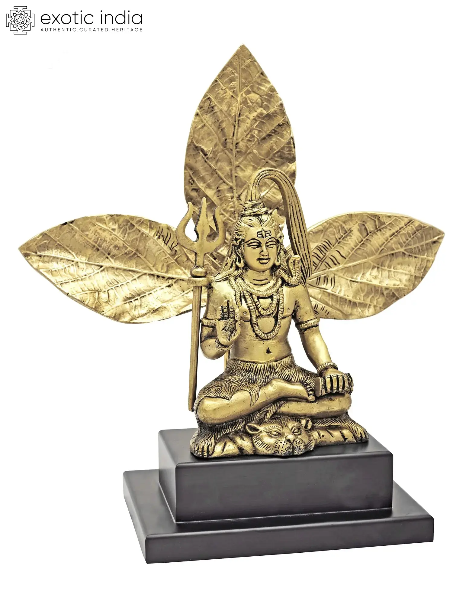 Bel Patra, or Bilva Leaf, is an integral part of Lord Shiva worship rituals. This Mahadev Shiva in Ashirwad Mudra statue beautifully captures this essence. In Adi Yogi form, Lord Shiva sits against a background of a large Bel leaf, representing the Trinity. Seated on a tiger skin, holding the trident, the statue exudes divine energy.