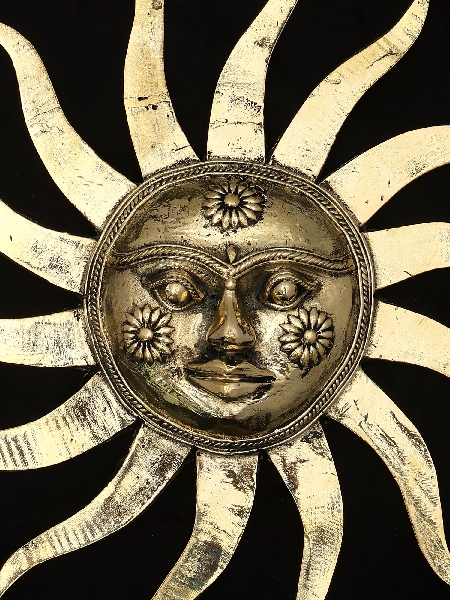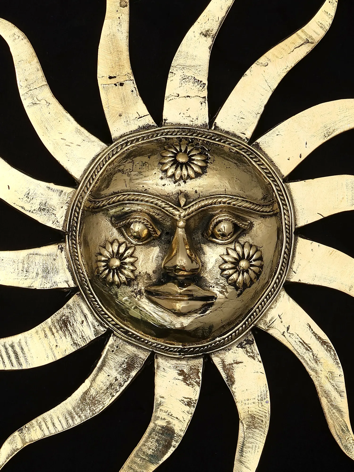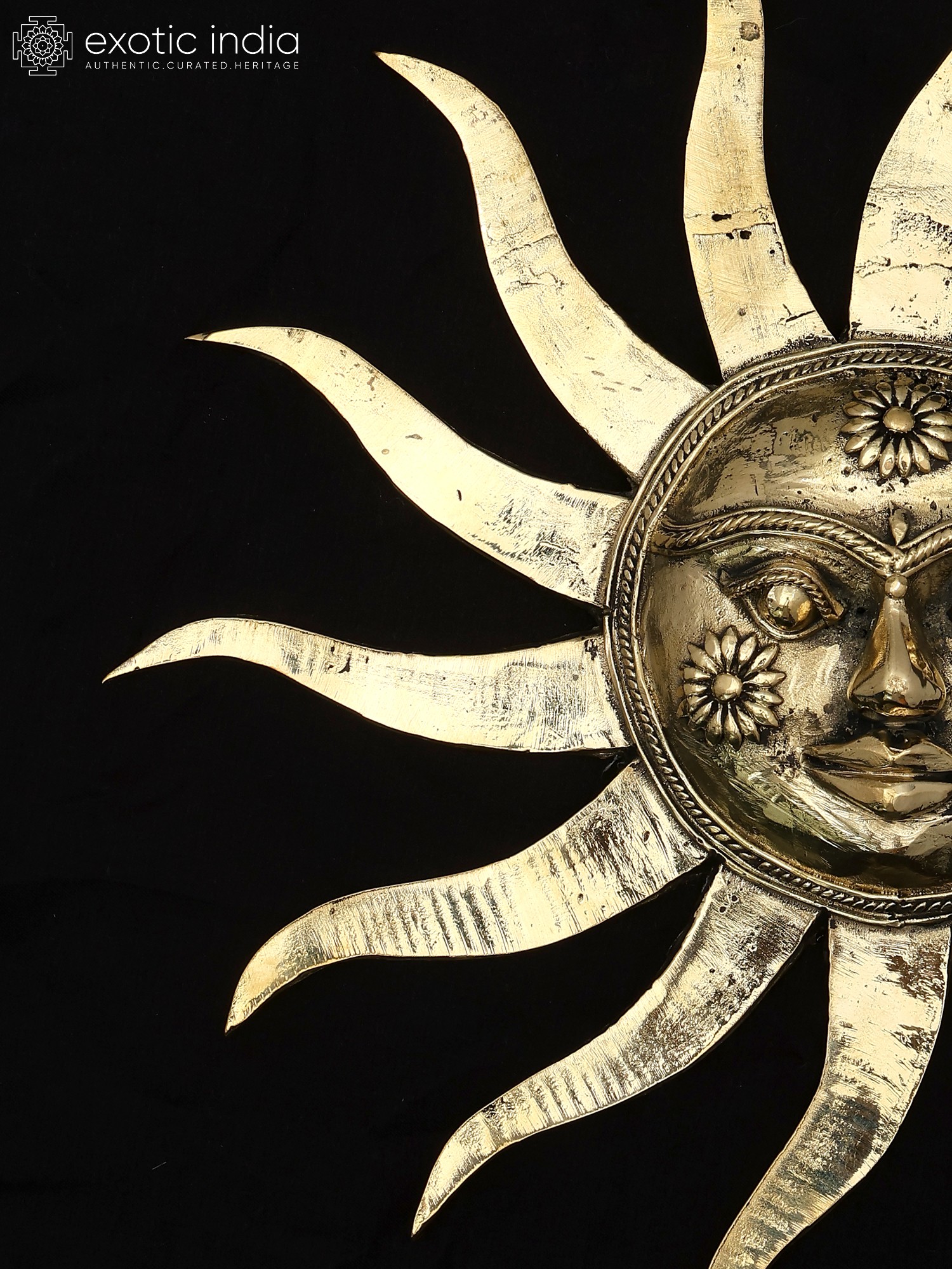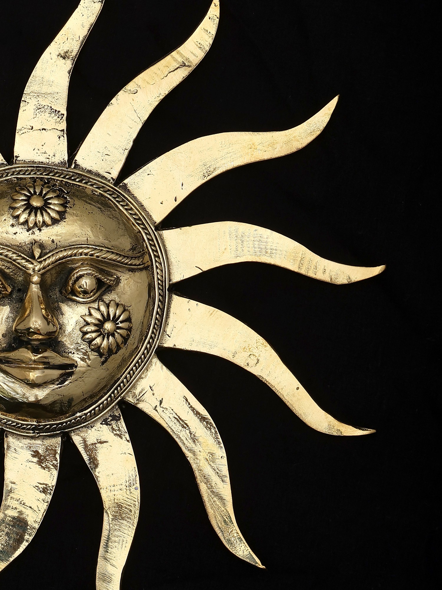 8" Surya Wall-Hanging Statue: Auspicious Motif of Sun with Bells in Brass | Handmade | Made in India
