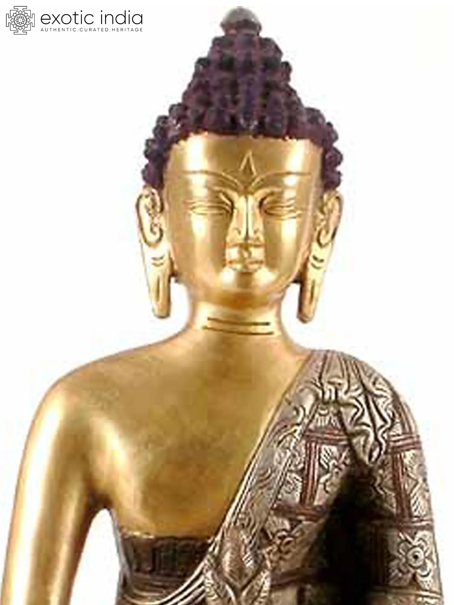 11" Buddha in the Bhumisparsha Mudra In Brass | Handmade | Made In India