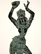 Apsaras, celestial nymphs in Hindu and Buddhist mythology, are known for their unparalleled beauty, their mastery of dance and music, and their role as heavenly courtesans and muses. They are often depicted gracing the courts of the gods, their performances enlivening the celestial abodes. Tales abound of their enchantments, their roles in significant divine events, and their ability to inspire mortals and gods alike. This statue, with its lifelike portrayal of a dancer caught in a moment of divine expression, evokes these ancient stories and the captivating allure of these mythical beings. Imagine the sounds of celestial music accompanying her movements, the divine audience captivated by her artistry.