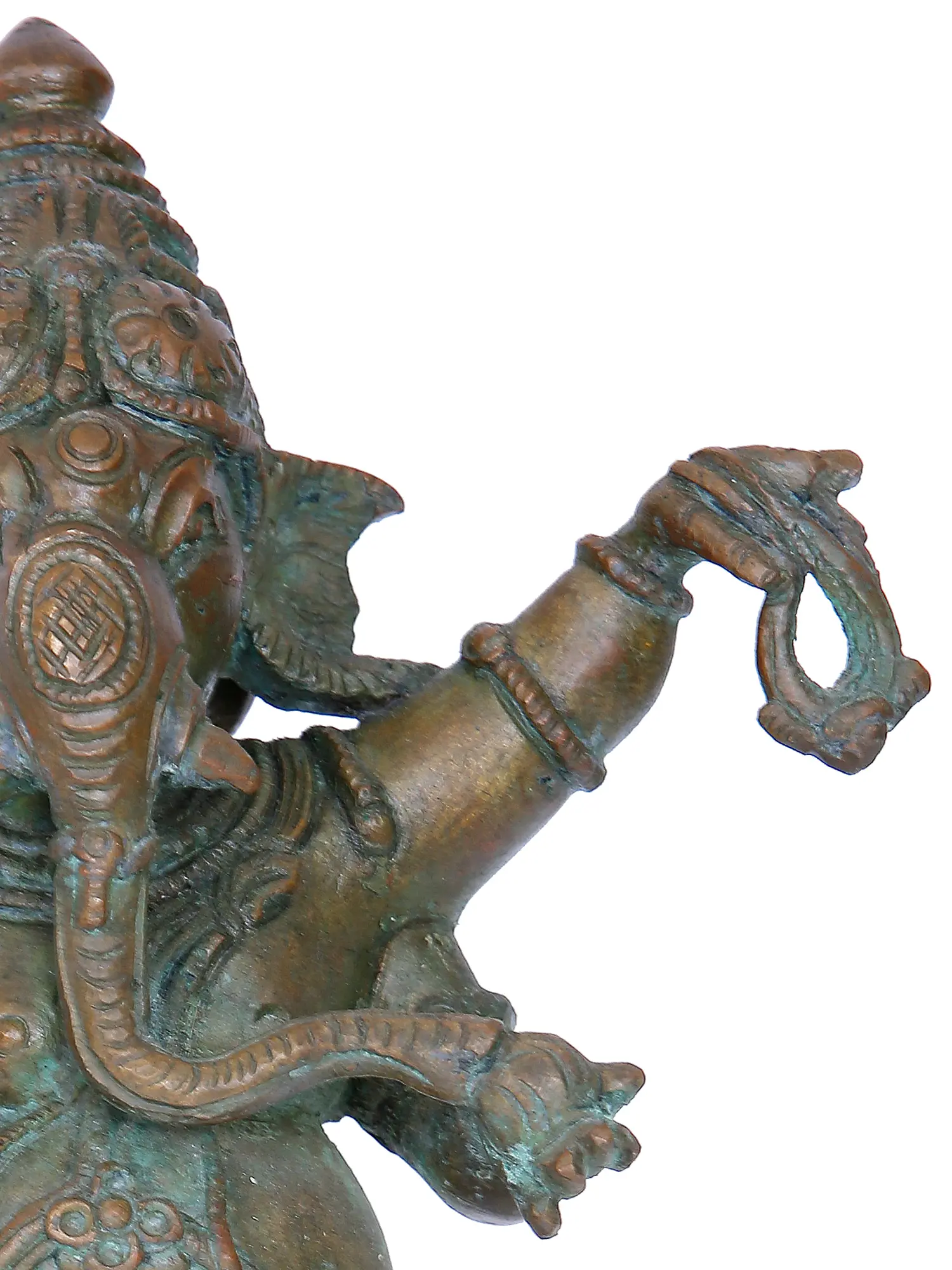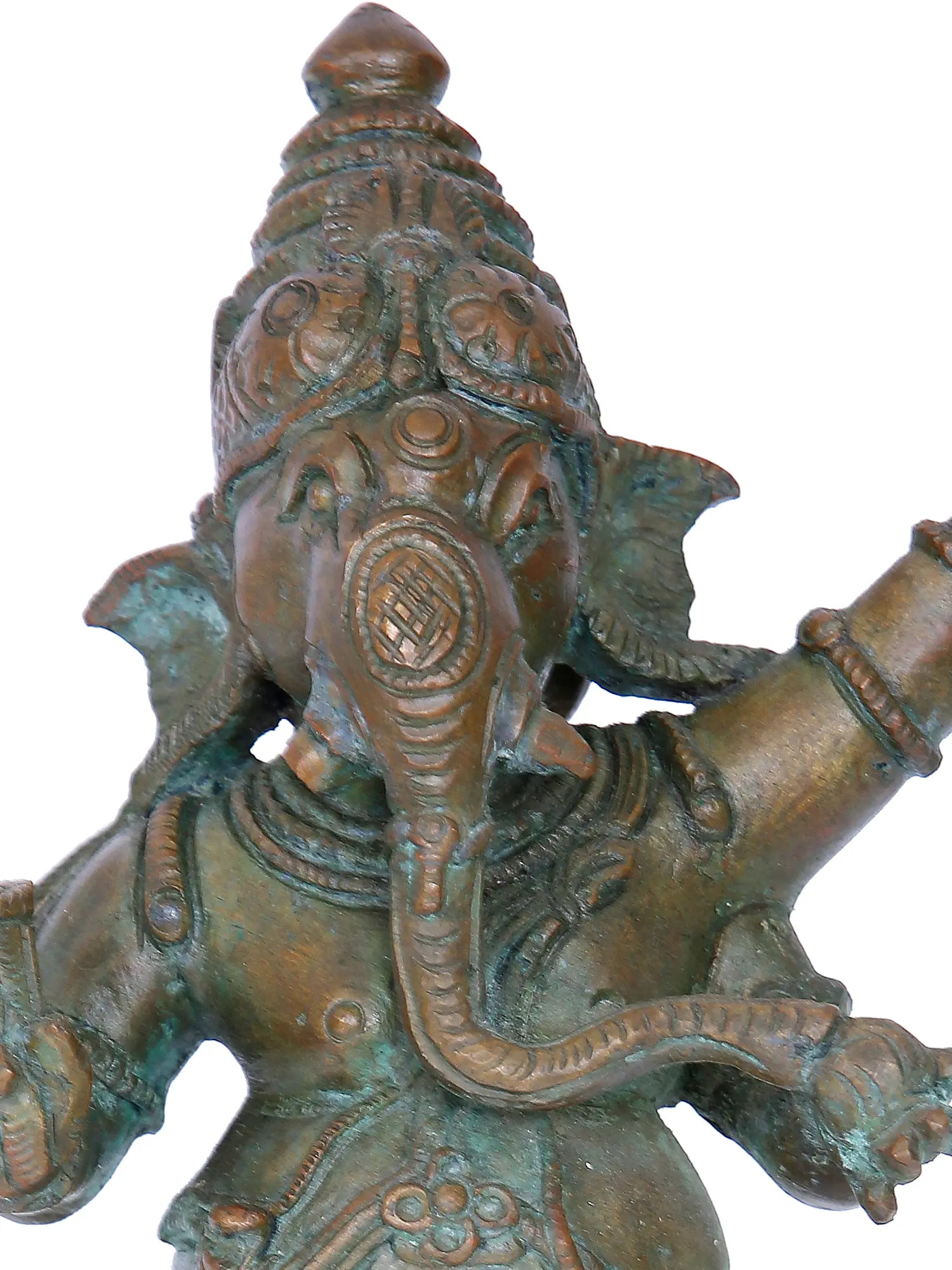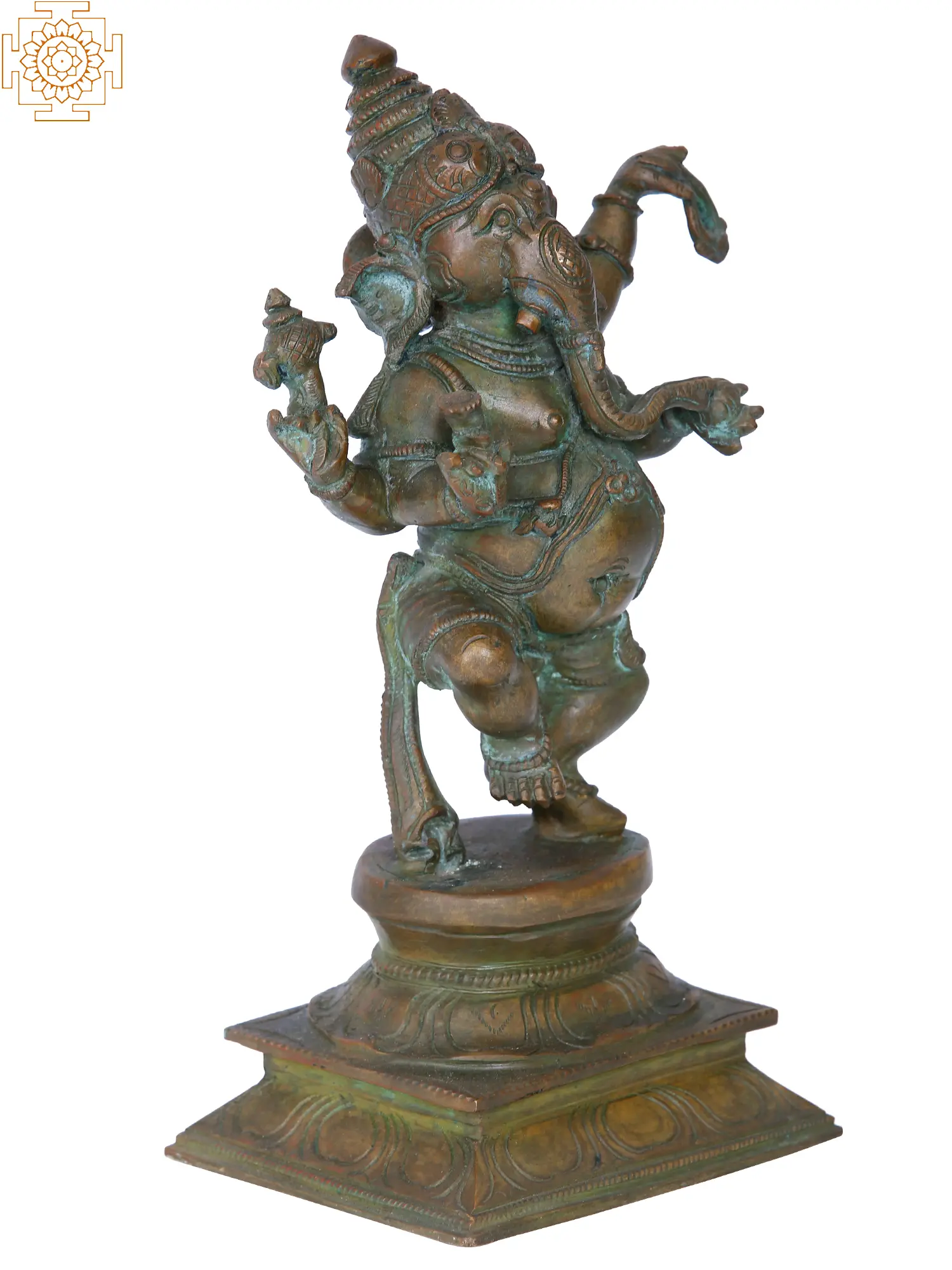 Invoke the joyous spirit with our Nritya Ganesha sculpture, a divine creation through Madhuchista Vidhanam in Swamimalai's Panchaloha Bronze. Thispiece beautifully captures Lord Ganesha in a dynamic dance pose. Beyond its artistic allure, the sculpture embodies the Hindu philosophical concept of 'Celestial Dance,' symbolising the cosmic rhythm and the joyous dance of creation. The lost-wax technique intricately details Ganesha's joyful movements, inviting you to embrace the divine dance and celebrate cosmic harmony.