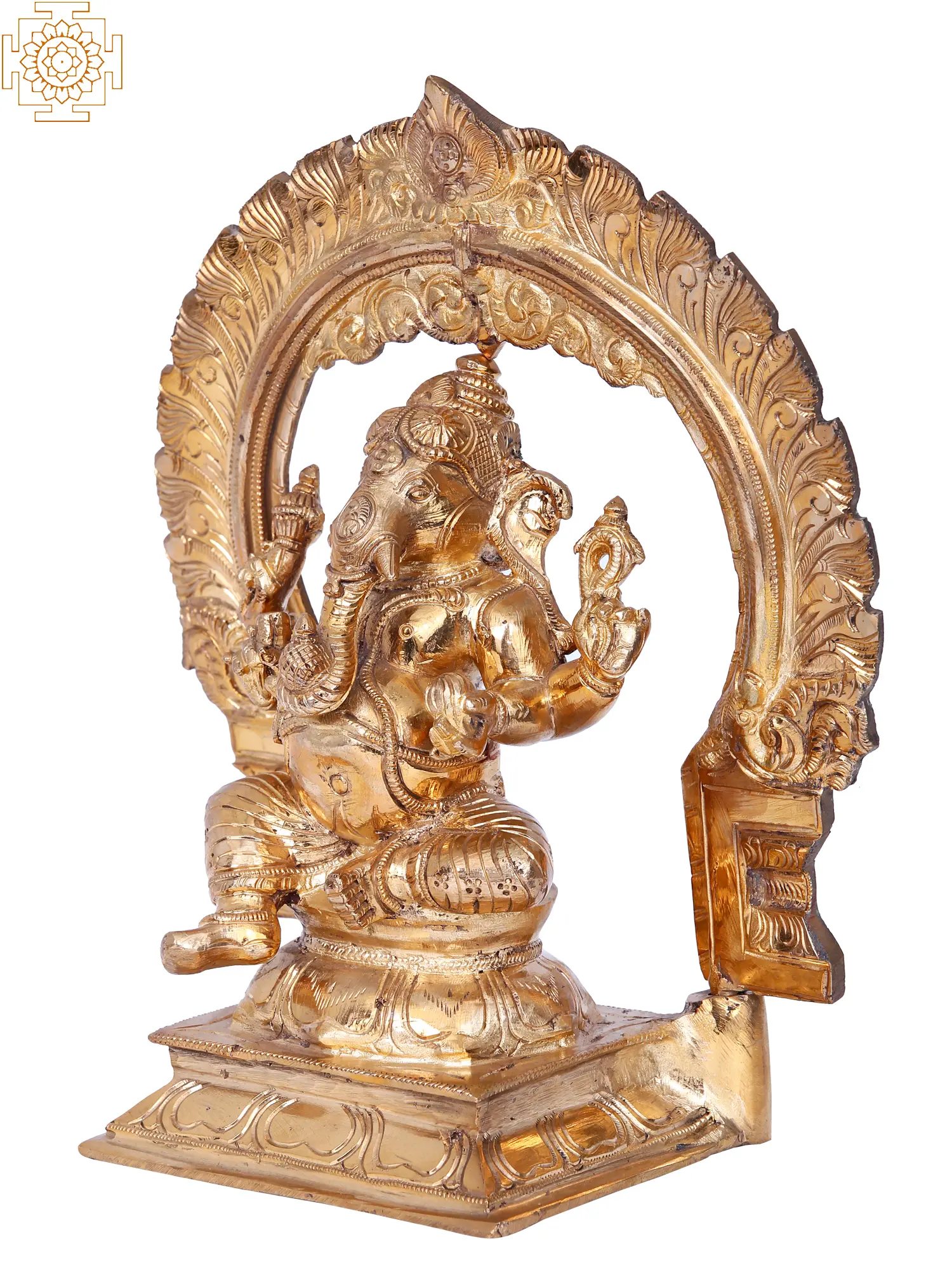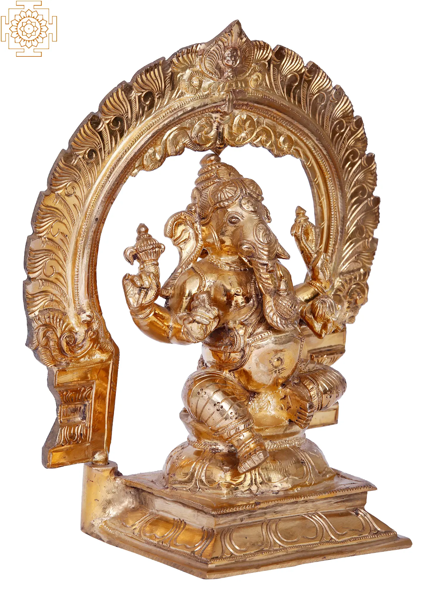 Chaturbhuja Lord Ganesha Seated on Kirtimukha Throne | Panchaloha Bronze Statue