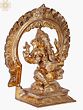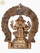 Bronze Statue: Four-Armed Lord Ganesha on Kirtimukha Throne