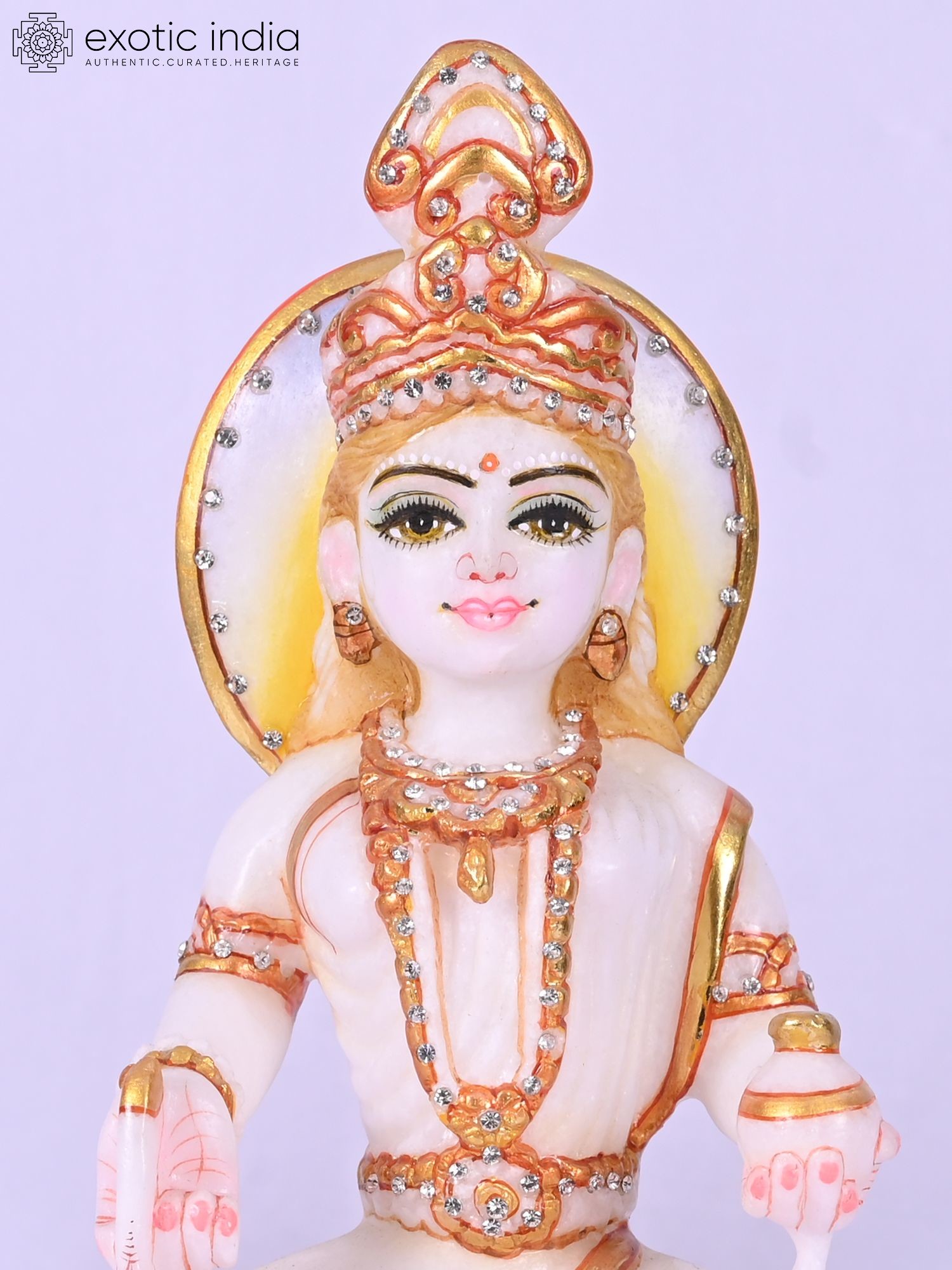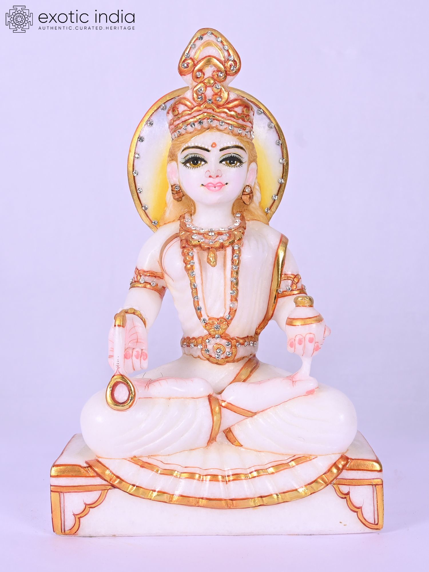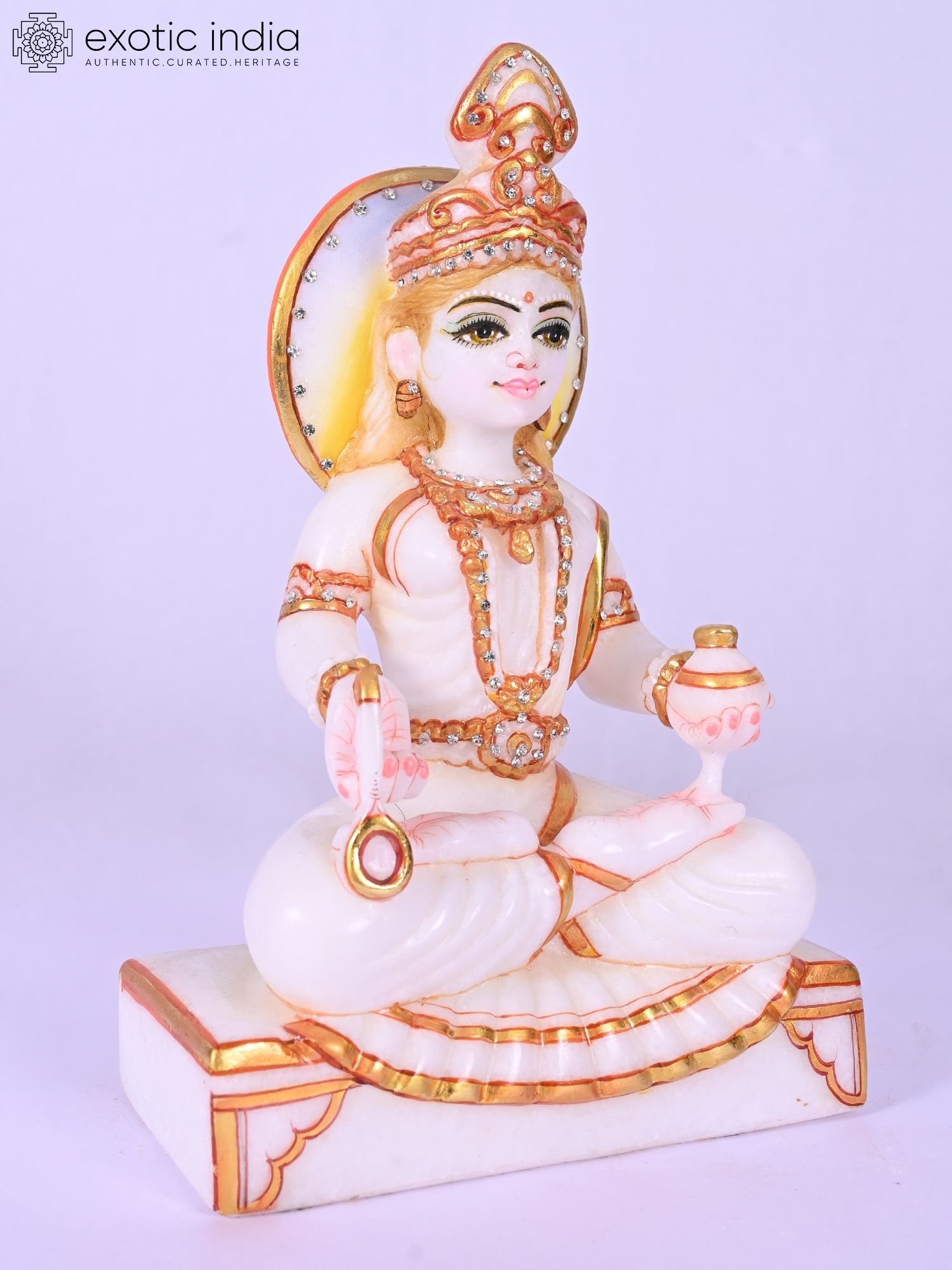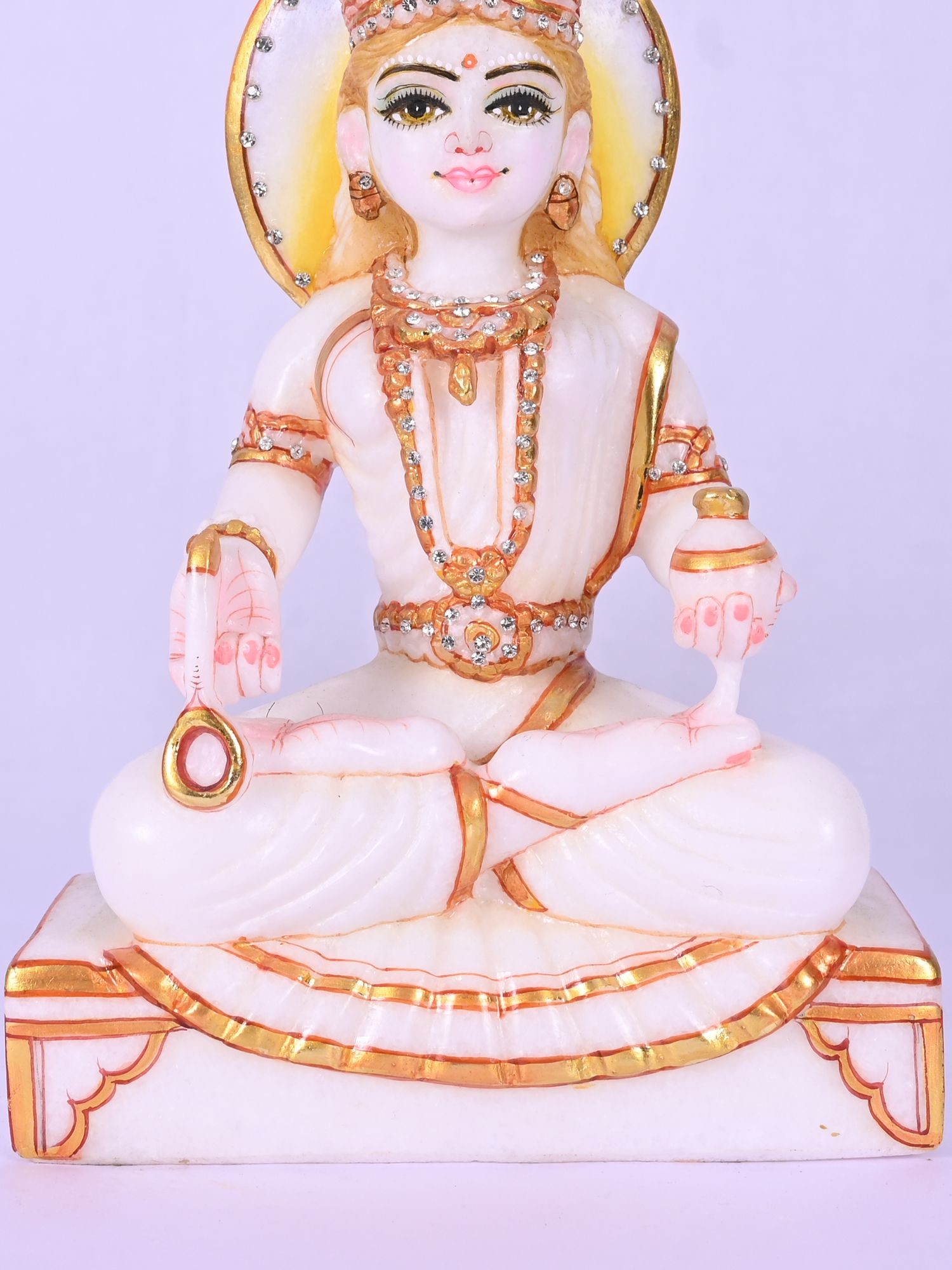 10" Sitting Annapurna Devi - Hindu Goddess of Food and Nourishment | White Marble Statue