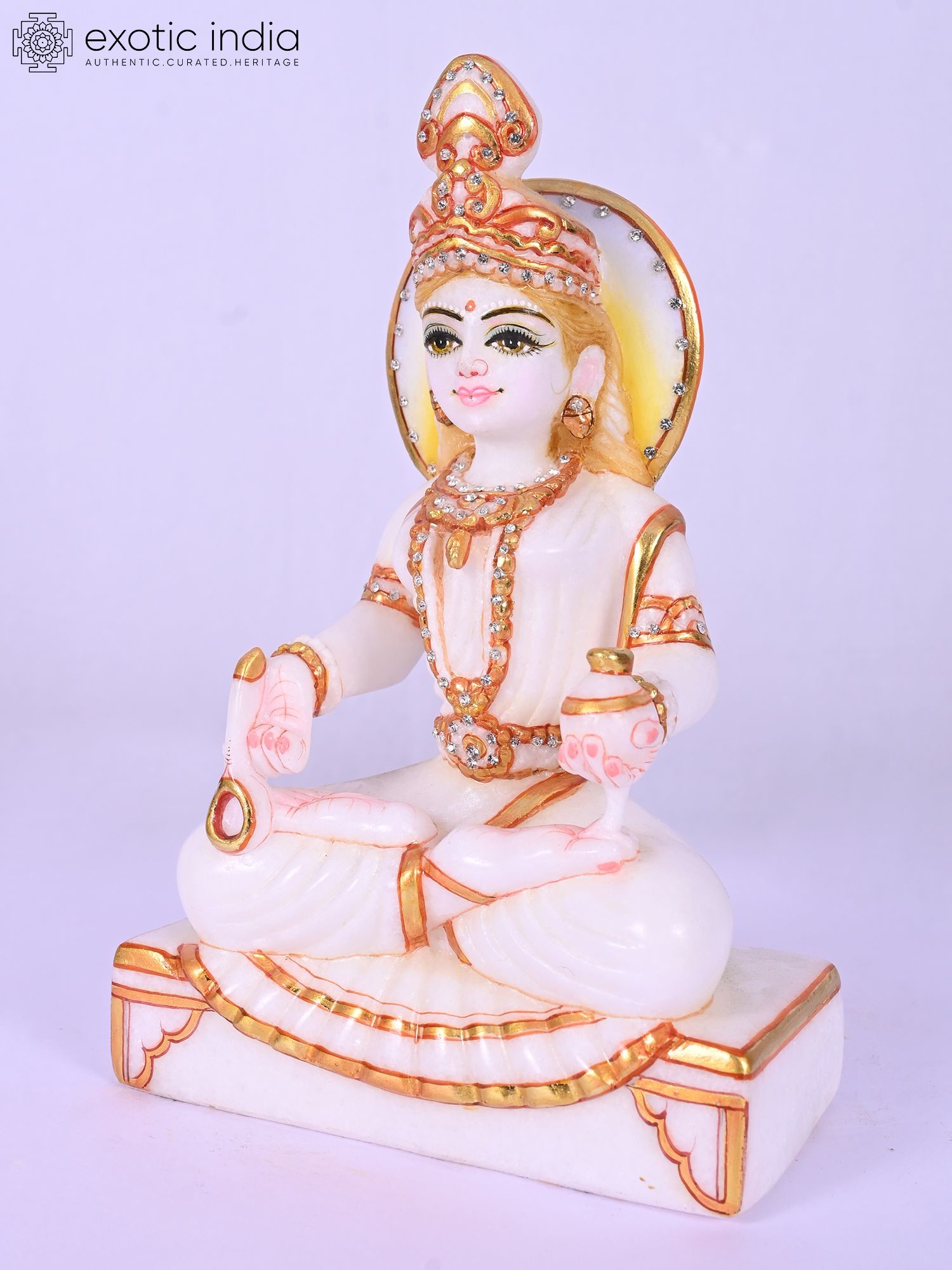 White Marble Statue of Gyan Dayani Devi Maa Saraswati Seated on Lotus