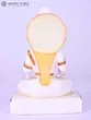 16" Seated Goddess Lakshmi White Marble Statue with Lotus & Elephant