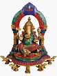 Besides the dull golden colour of brass, the colour palette comprises the typical pastels of red and a couple of blues. Note the jewel-like cuts of resin that add to the grandeur of the Lord’s dhoti and are further filigreed to the higher reaches of the aureole. The presence of His vahana, the mouse, is to be found aplenty, a bunch of them seemingly holding up the ornate multi-tiered pedestal their master is sitting on. Note how the head and the hands of the Lord have been kept relatively bare, adding balance and coherence to the composition.