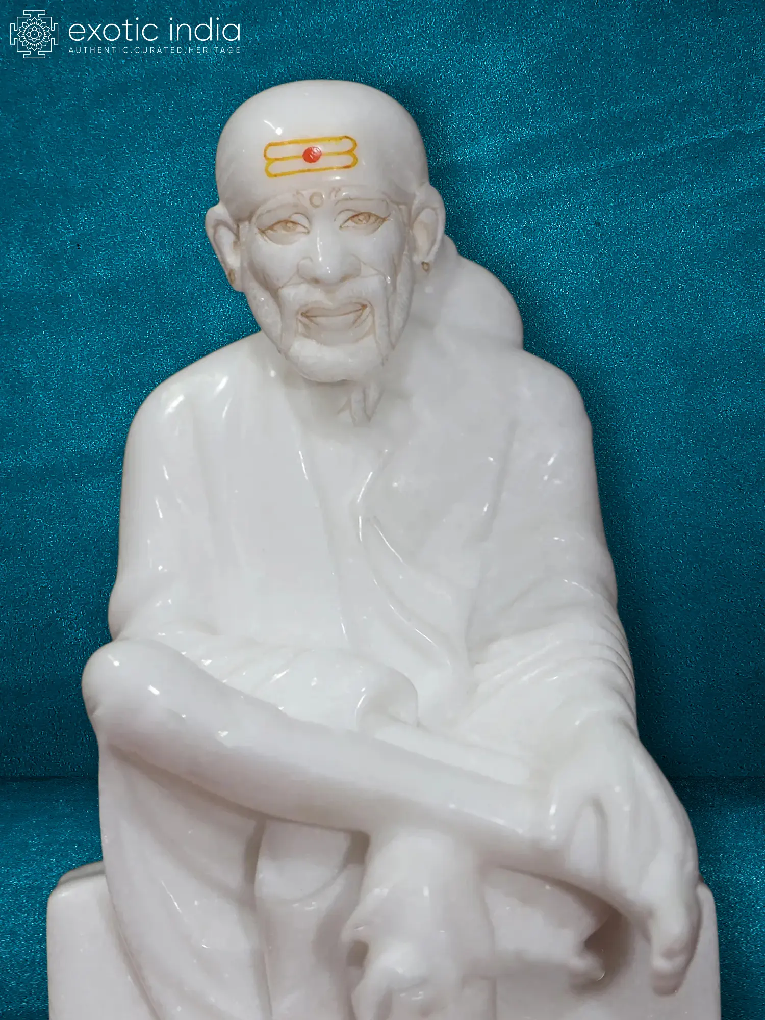 15" Hand-Carved Sai Statue | White Makrana Marble Idol