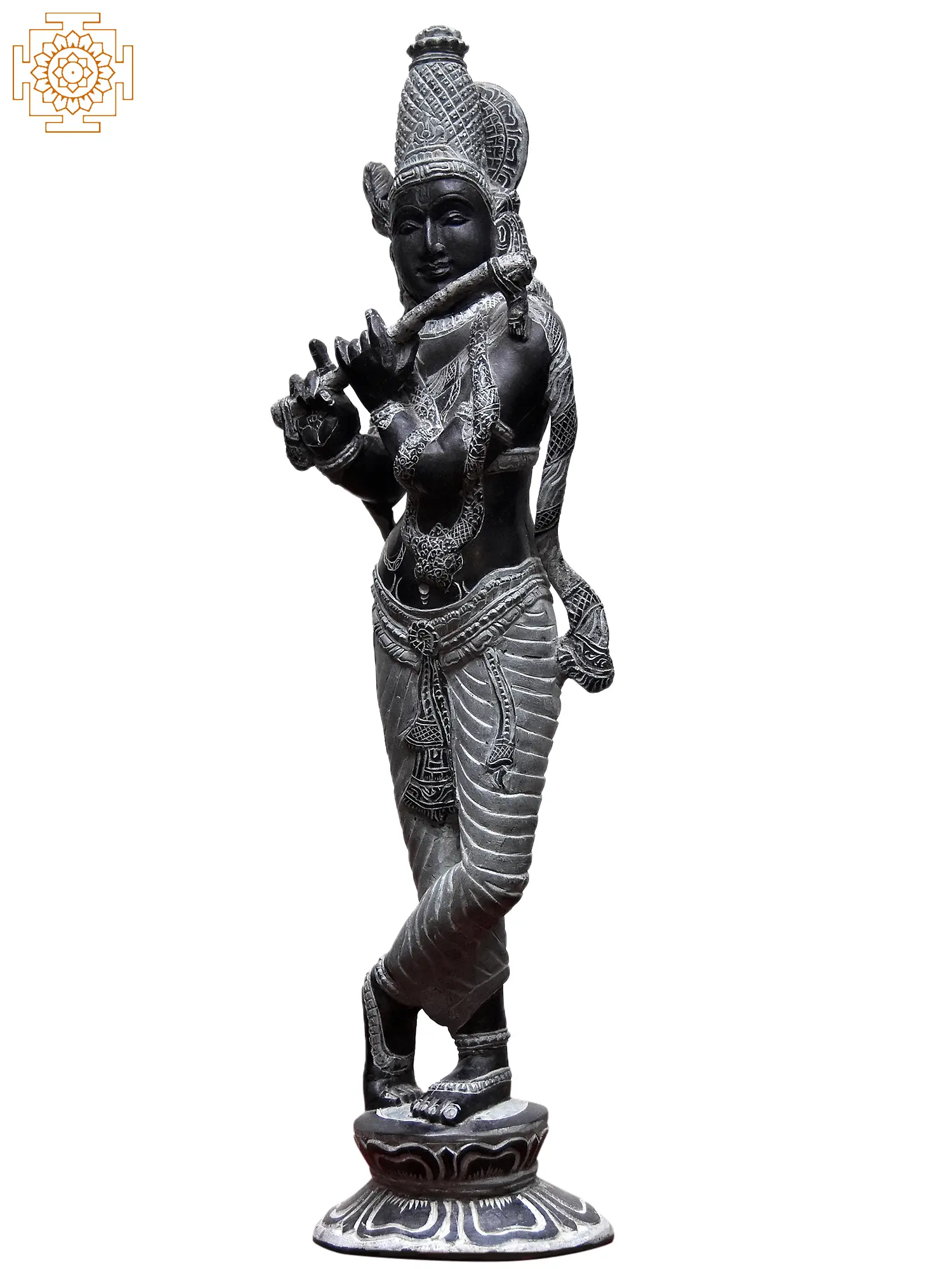 16" Lord Krishna Playing Flute | Orissa Stone Statue | Hand Carved indian art