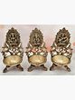 The brass Lakshi-Ganesha-Sawasvati lamp features three diyas(lamps) with all three deities, symbolizing pure divinity towards the divine beings and seeking their blessings. The lamp is made with an impeccable pattern, beautiful detailing, and has a premium design.