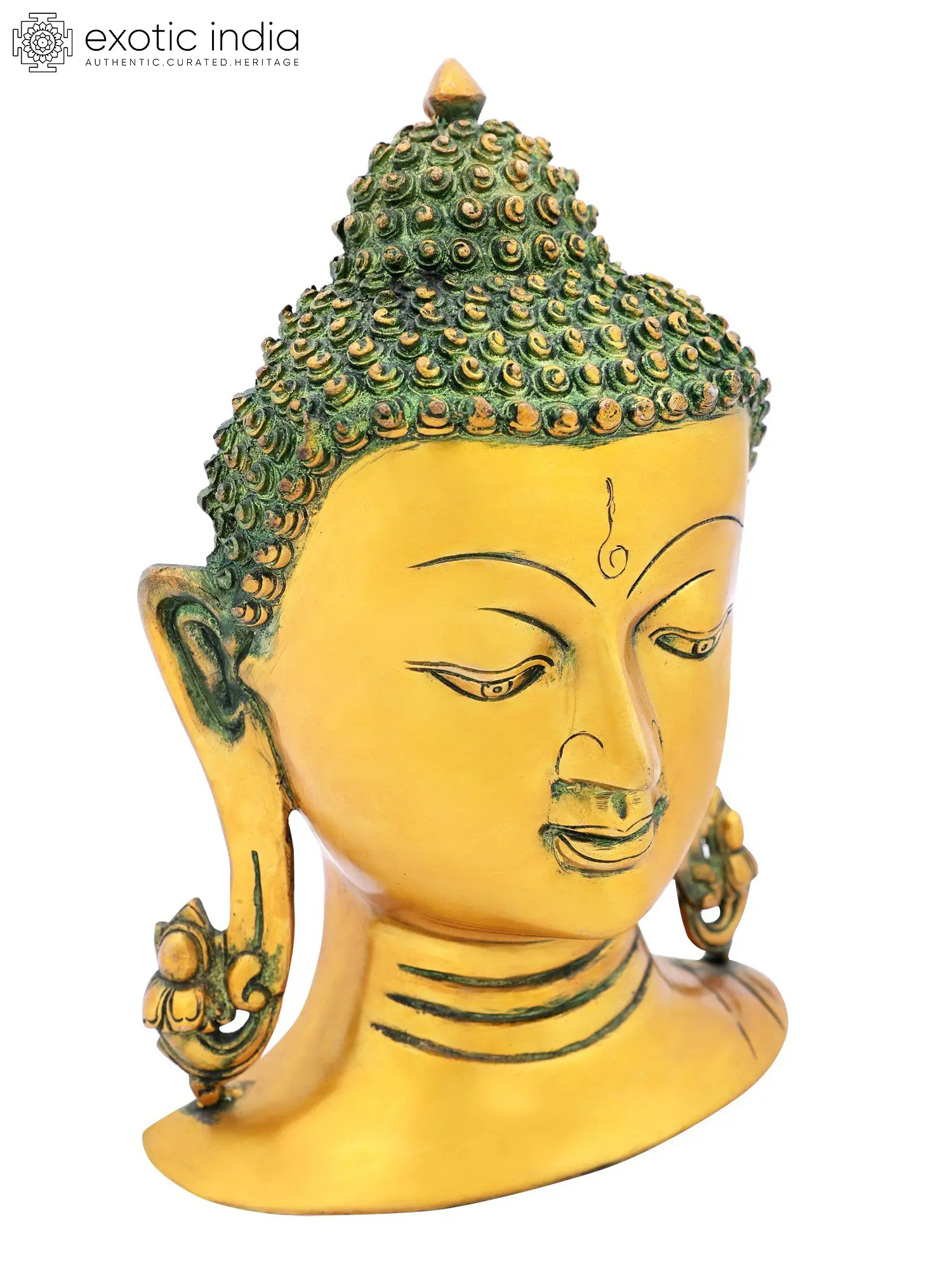 11" Lord Buddha Wall Hanging Mask In Brass | Handmade | Made In India