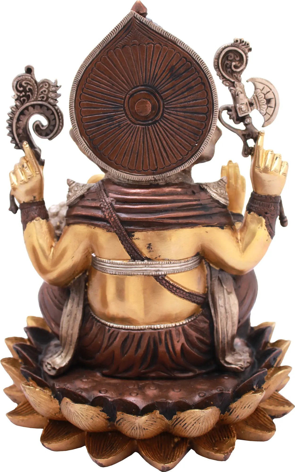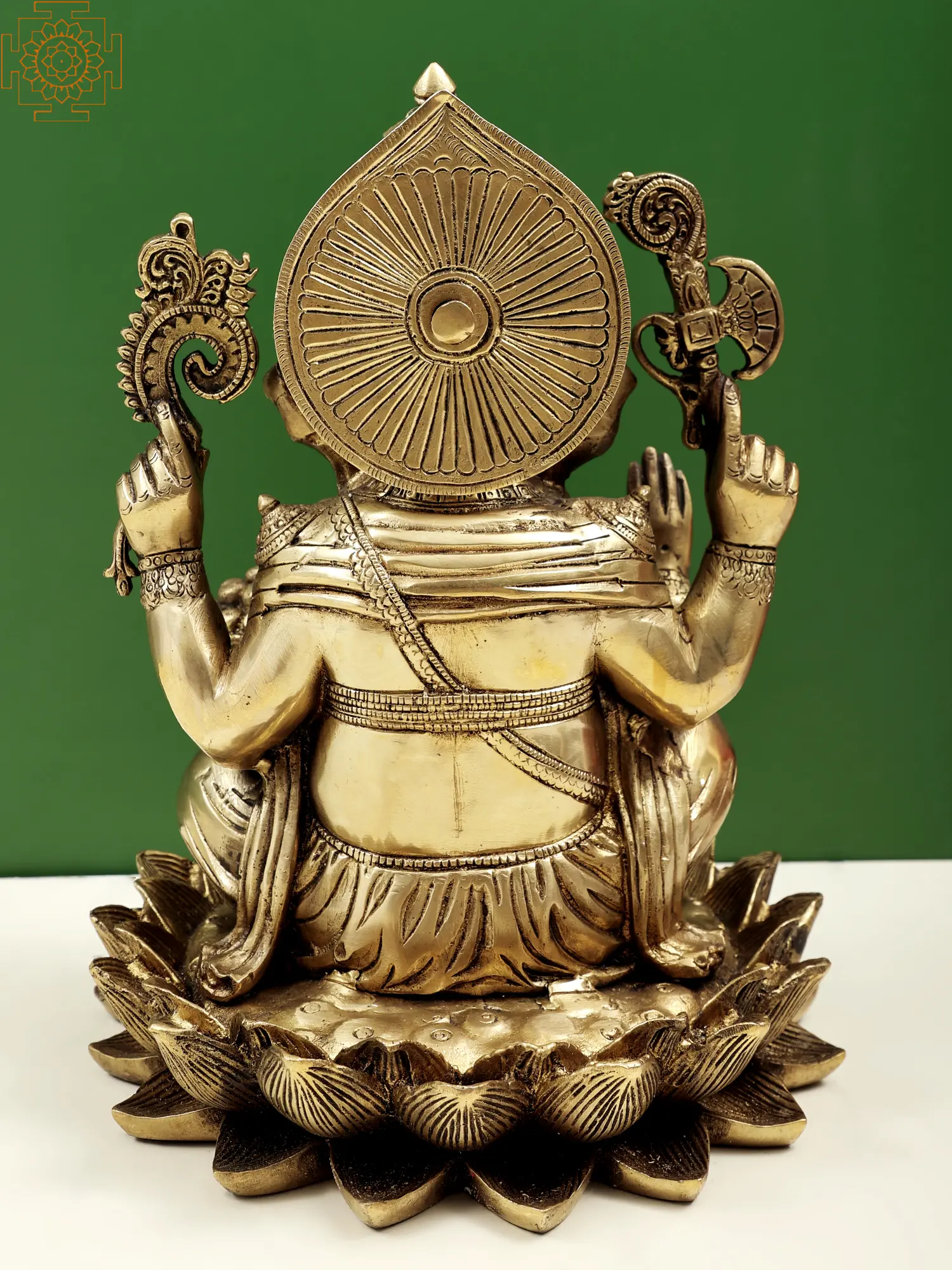 11" Lord Ganesha Seated on Lotus in Brass | Handmade | Made In India