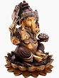 This exquisite brass statue captures the benevolent form of Lord Ganesha, the beloved Hindu deity revered as the remover of obstacles, the patron of arts and sciences, and the intellect incarnate. Seated gracefully upon a blooming lotus, a symbol of purity, spiritual awakening, and cosmic creation, this Ganesha embodies a profound sense of peace and divine presence. The intricate craftsmanship, evident in every curve and detail, speaks to the skill of Indian artisans who have brought this sacred figure to life. The warm, lustrous glow of the brass enhances the divine aura of the deity, making it a captivating centerpiece for any sacred space or home.