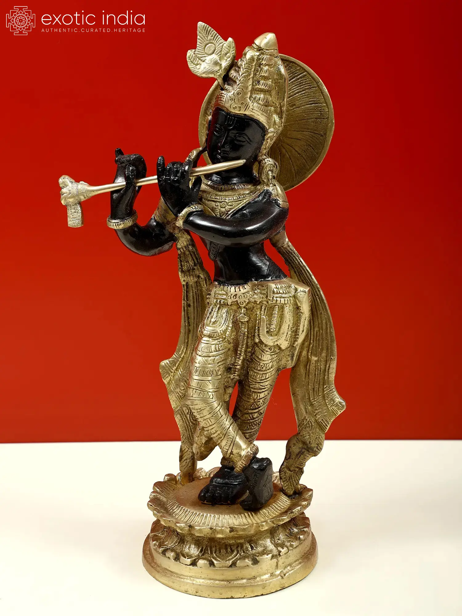 11" Lord Krishna Playing Flute In Brass