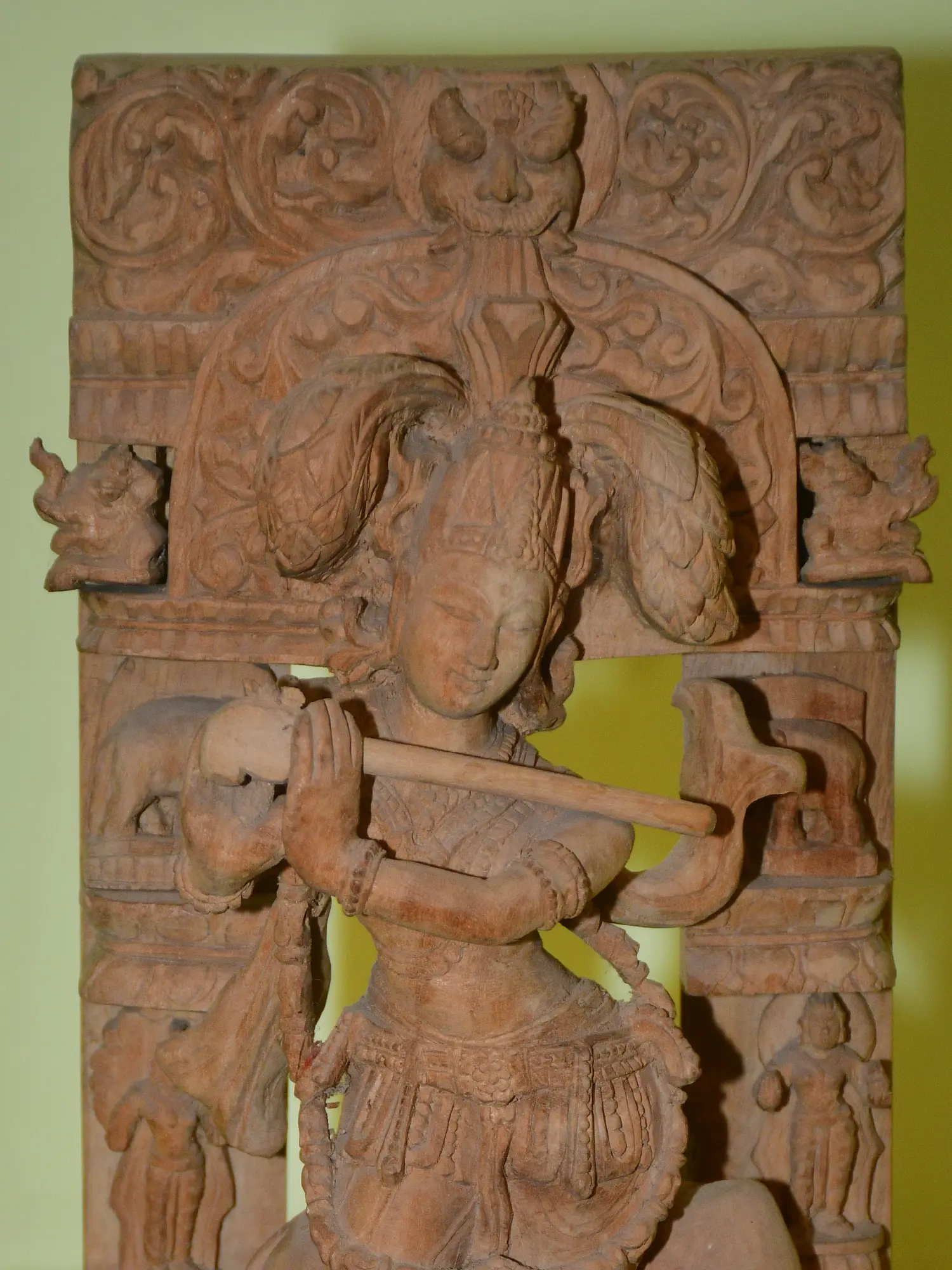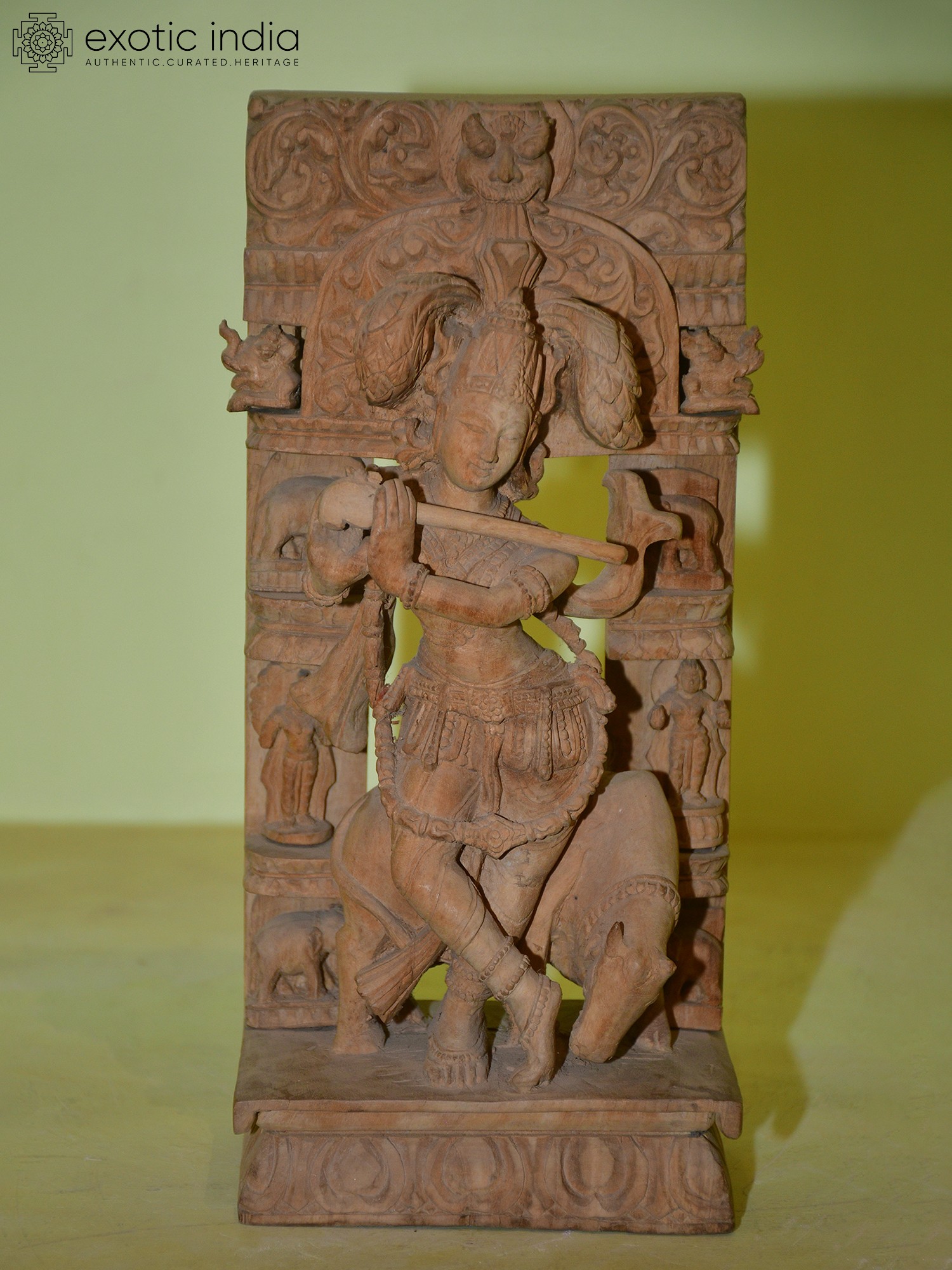 Divine Lord Shrinathji Playing the Flute | Pichwai Painting on Cotton | by Narendra
