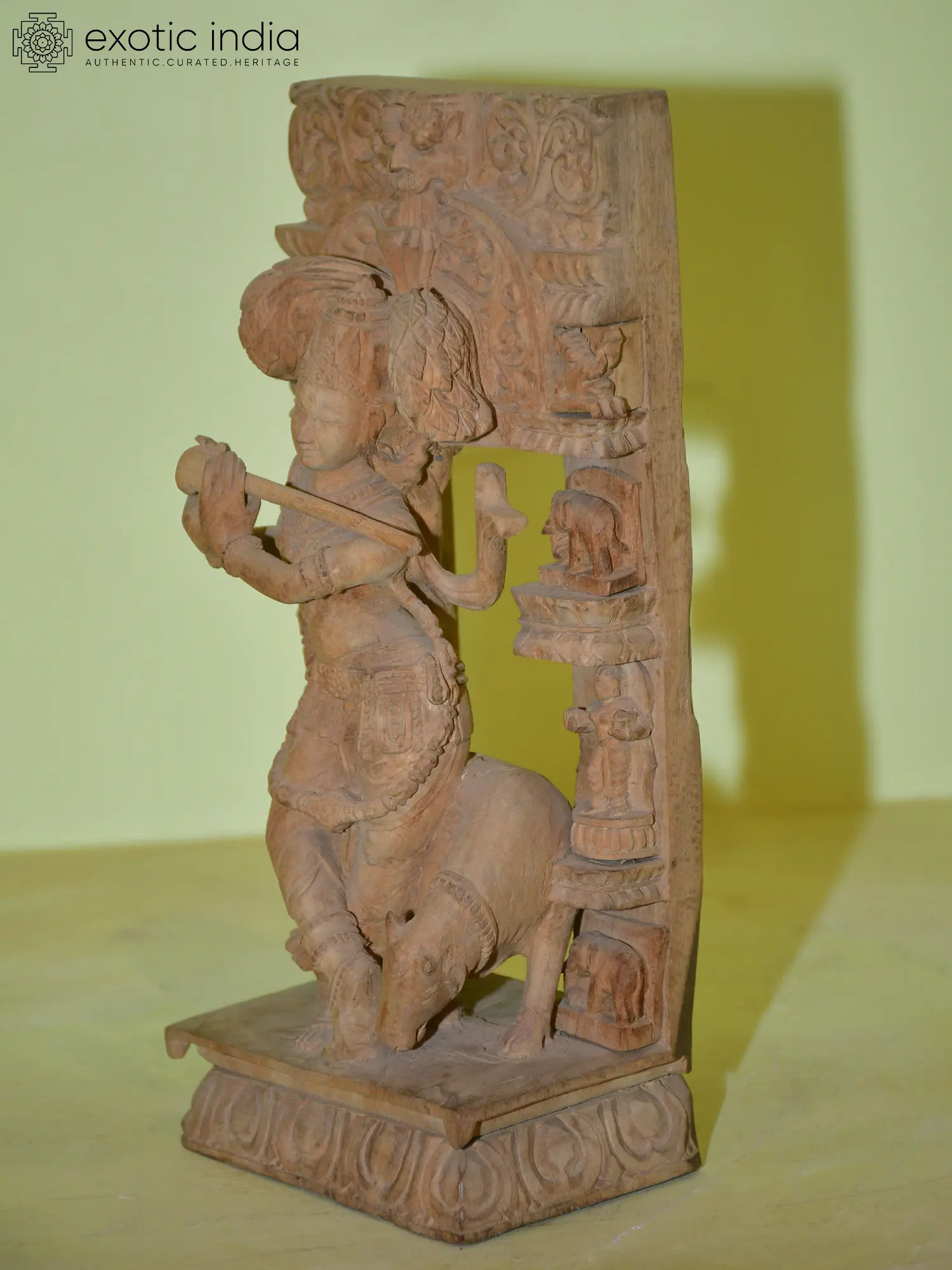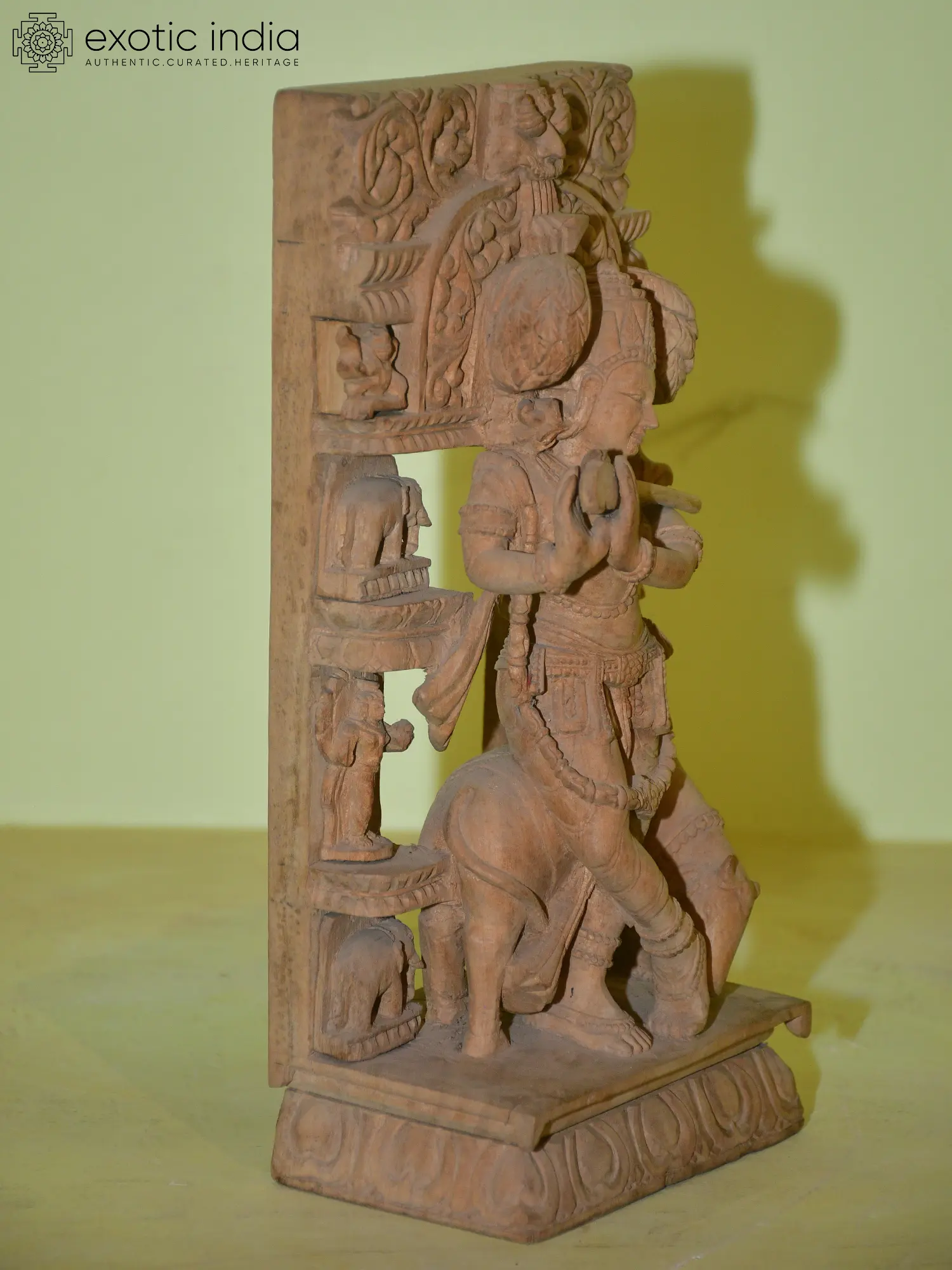 12" Dancing Lord Krishna Statue Playing Flute | Black Mahabalipuram Stone