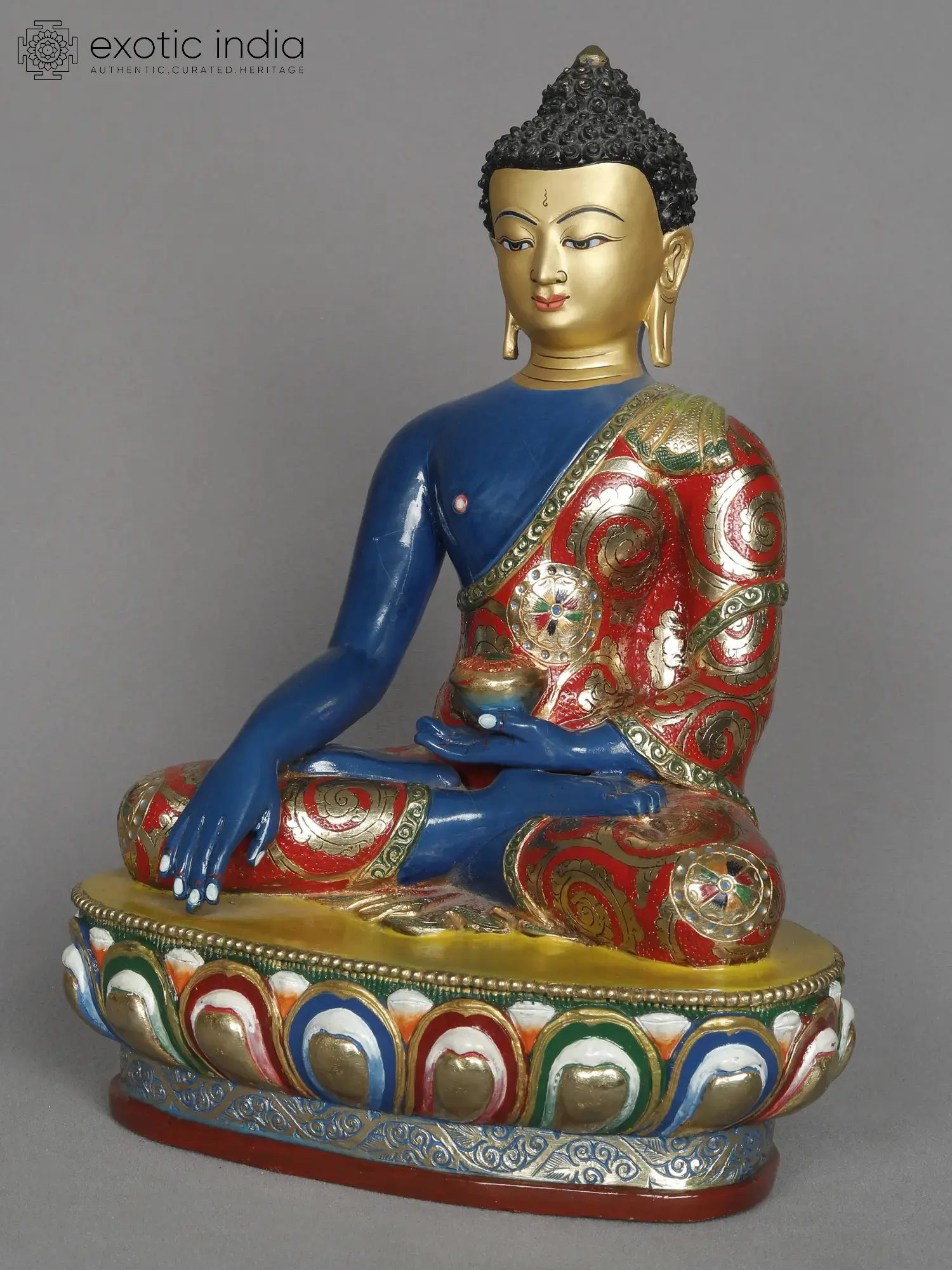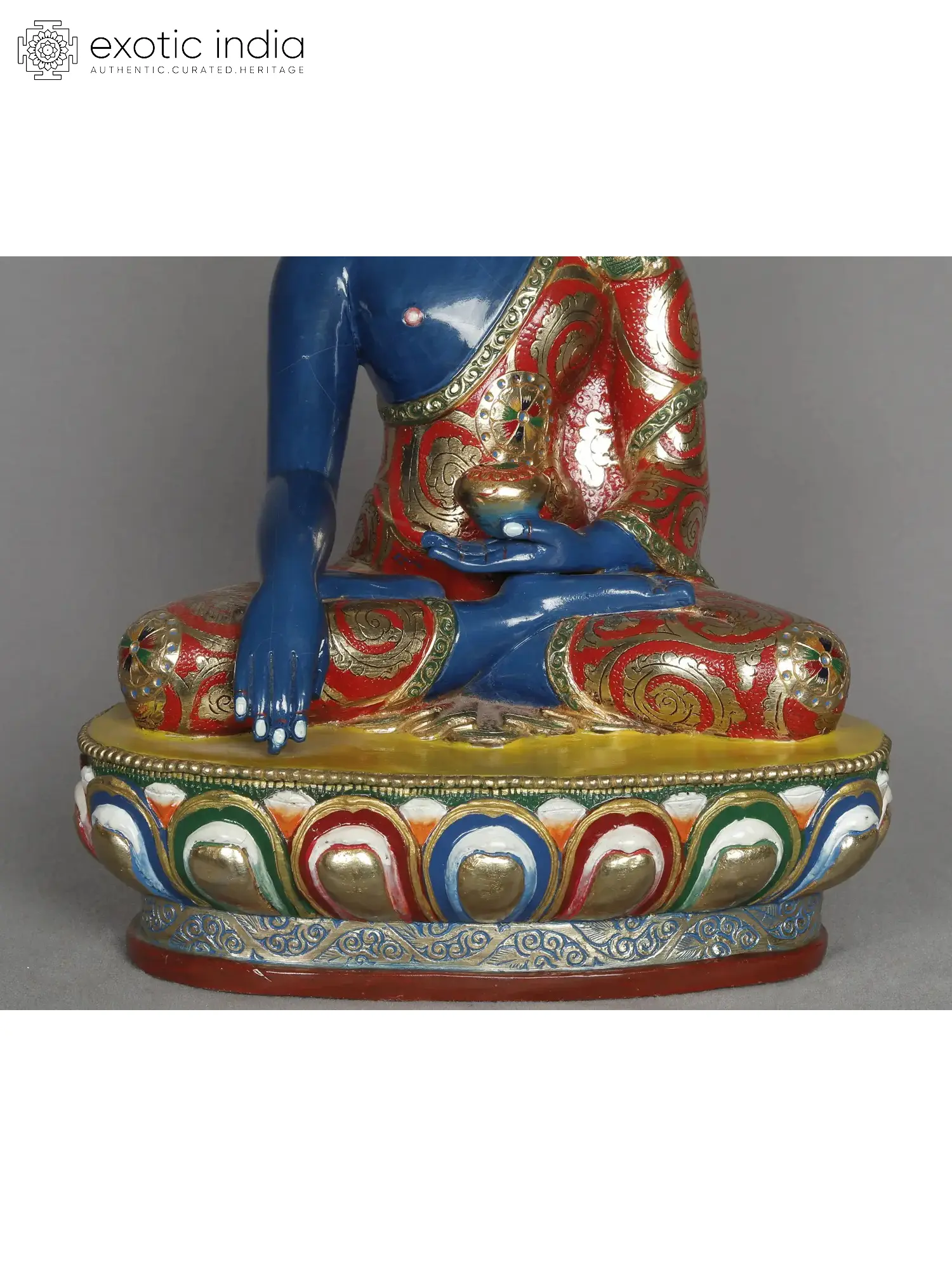 Shakyamuni Buddha is a glazing Buddha statue that symbolizes peace and divine beauty. Shakyamuni Buddha is depicted as a half-closed eyes figure in the Bhumisparsha mudra, symbolizing deep meditation and peace of mind. He taught different kinds of teachings, mostly sutras and tantras to suit the varying degrees of intelligence of his disciples. His left hand forms an earth-touching gesture, symbolizing his triumph over temptations. The curls on Shakyamuni’s head are beautifully depicted and highlighted with black color. The facial features are presented with exquisite detail and grace. When placed in any place, this Buddha statue can enhance peace of mind.