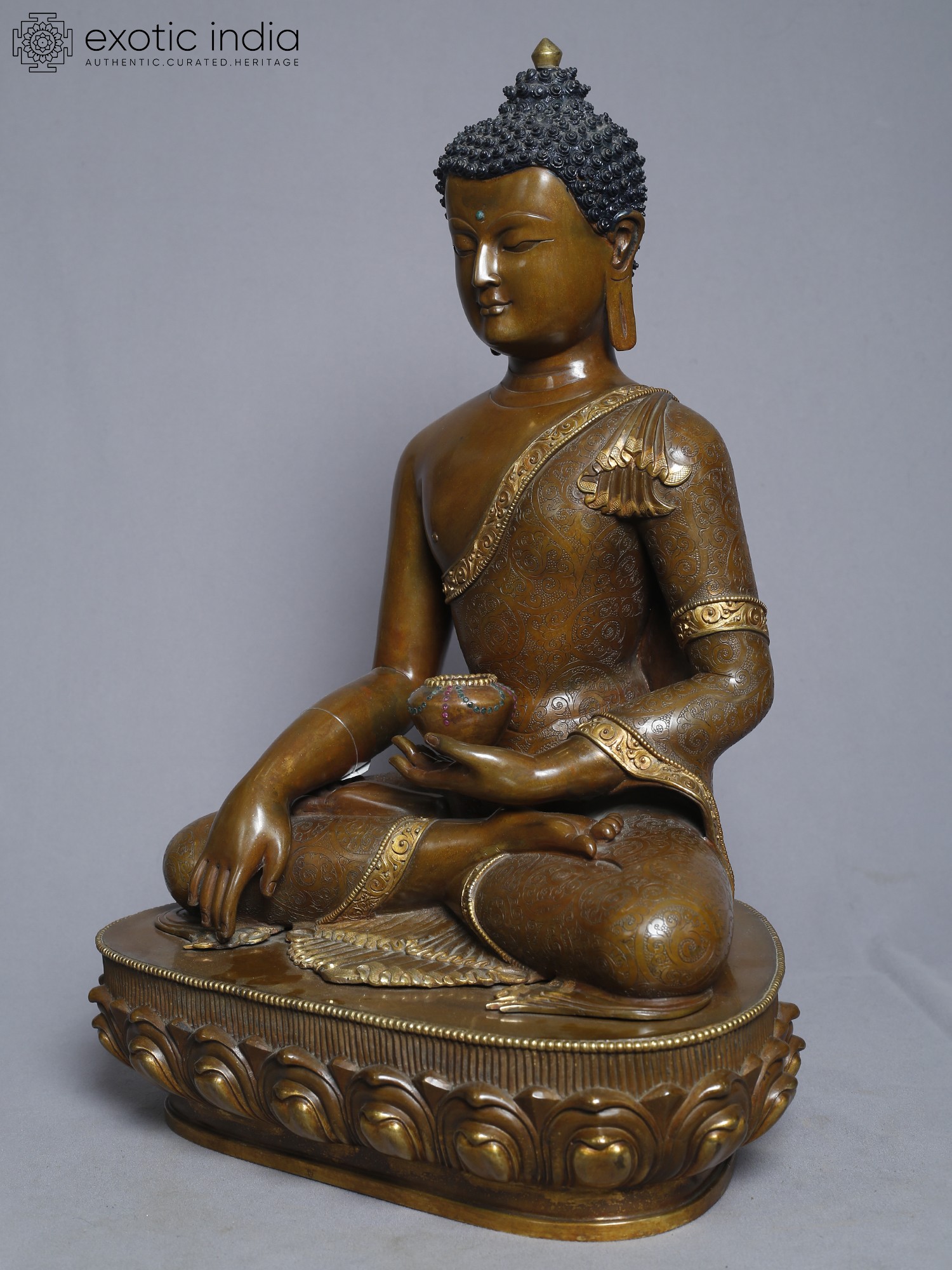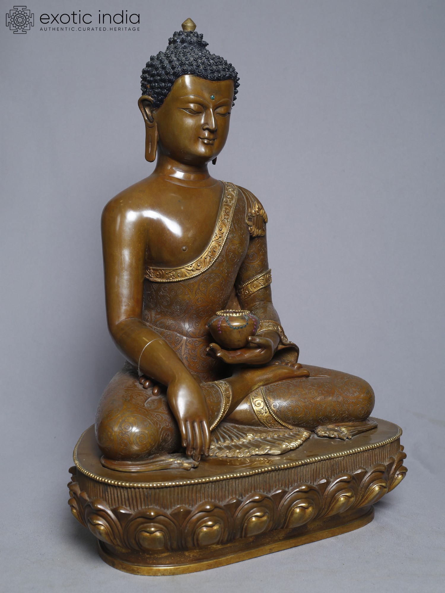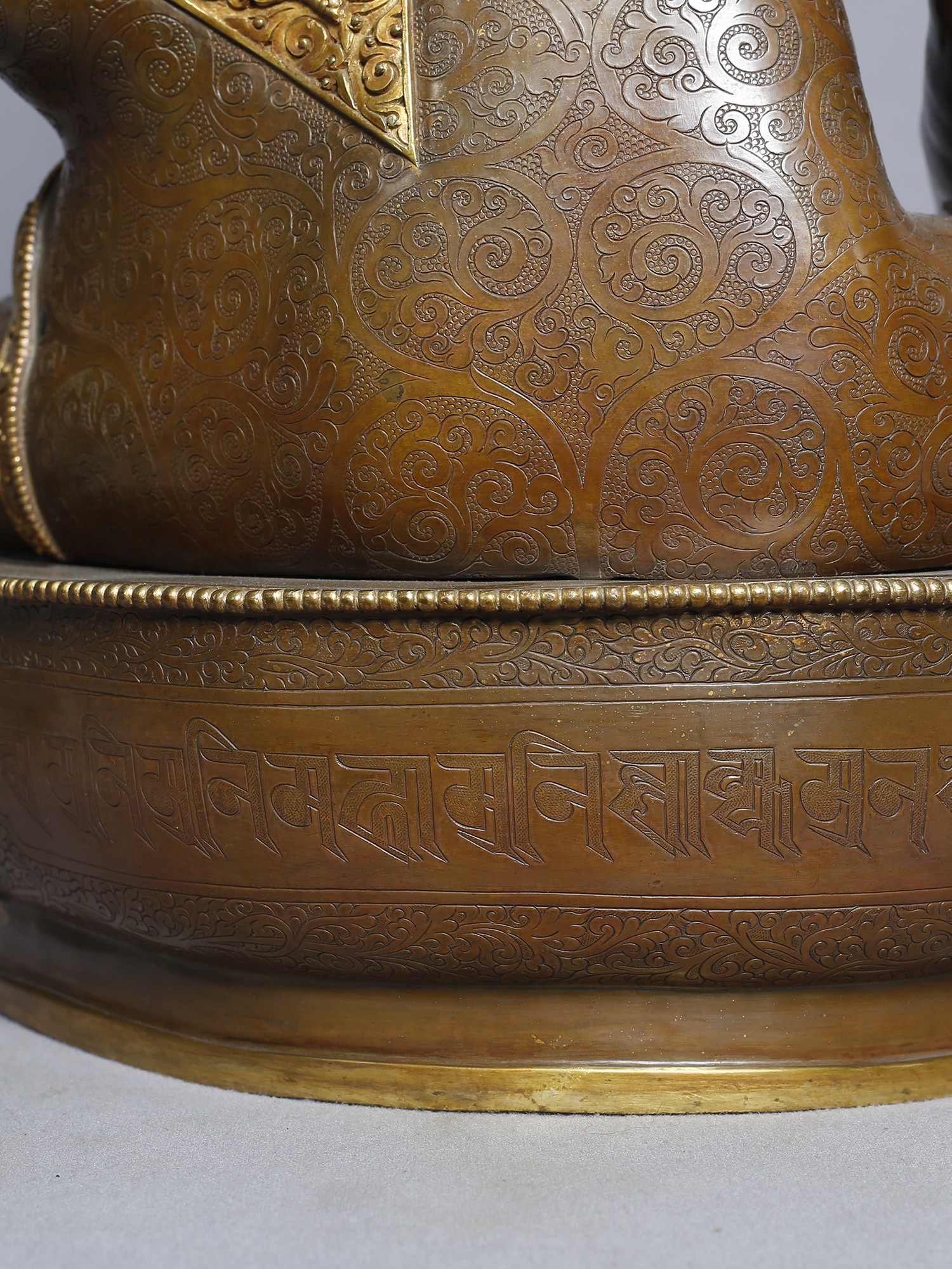 19" Brass Tibetan Lord Buddha Engraved Wall Hanging Thangka Frame | Handmade