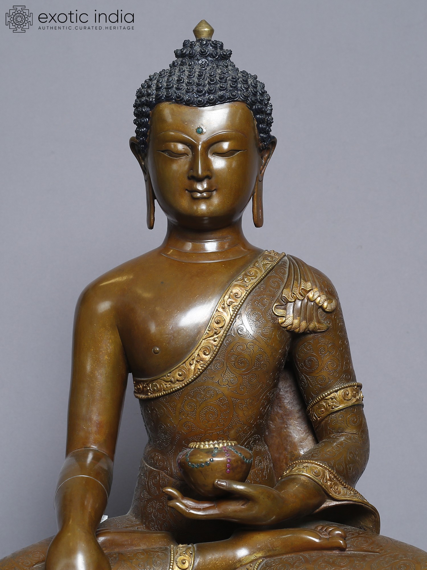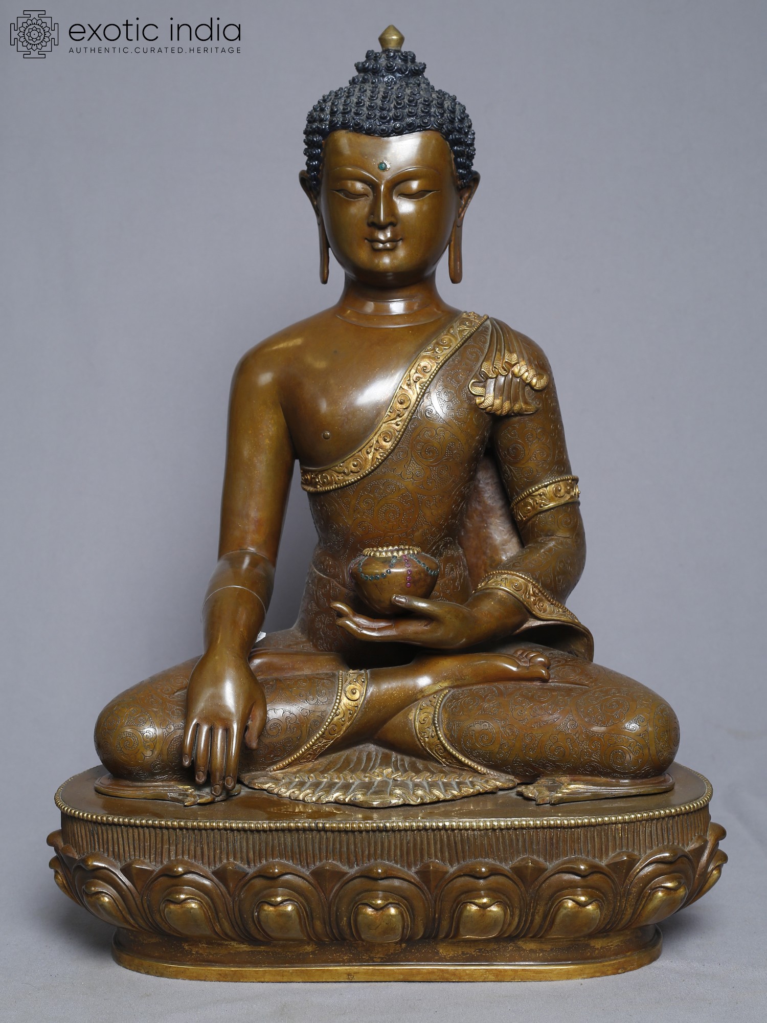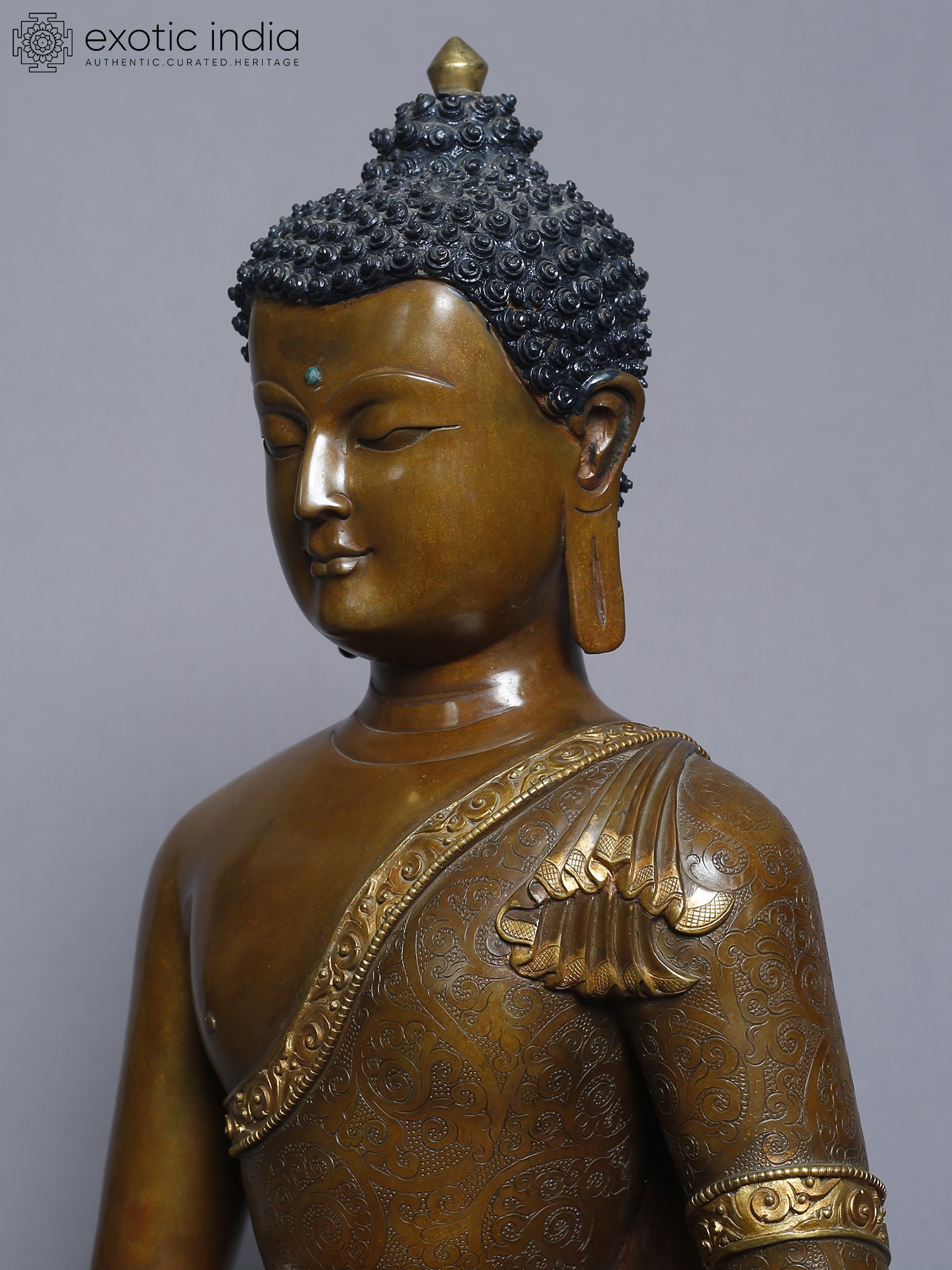 19" Brass Tibetan Lord Buddha Engraved Wall Hanging Thangka Frame | Handmade