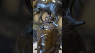 This brass monument showing Lord Shiva's head embodies the essence of self-realization and recognition of one's true nature. His gorgeous face with a soft grin, as though emanating the aura of content, can spiritually lift the tone of a location.
