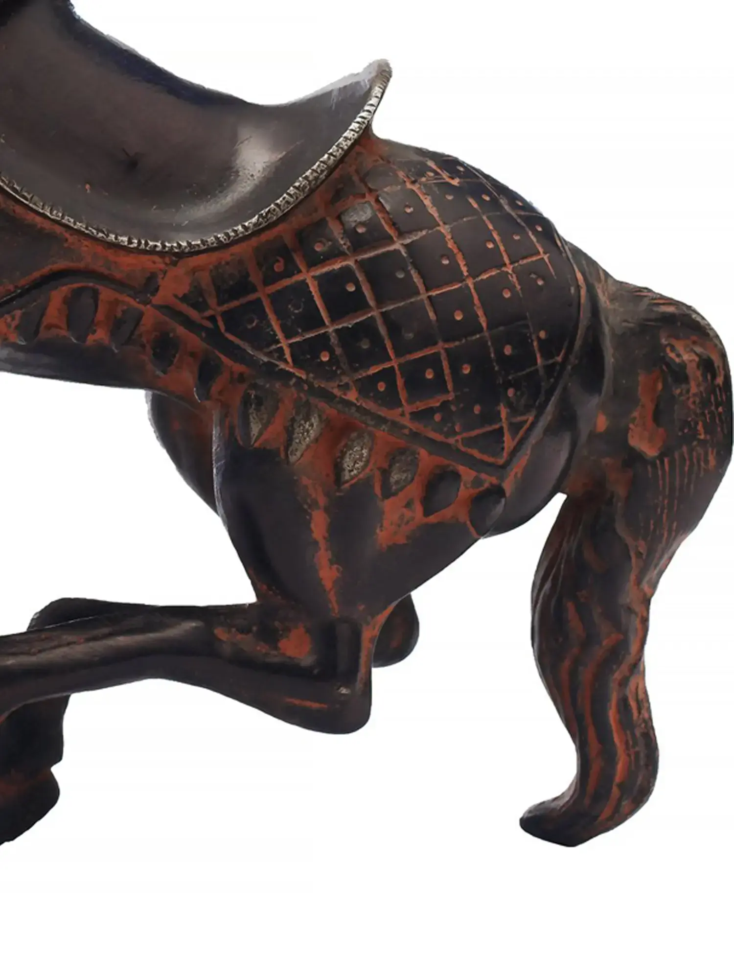 Handmade in India, this brass sculpture is a testament to the country's rich artistic heritage. Indian artisans have been working with brass for centuries, perfecting techniques that blend tradition with artistic vision. The process of creating such a detailed piece involves meticulous attention to form, texture, and finish. Each hammer stroke, each shaping of the molten metal, contributes to the final character of the sculpture. This particular piece, with its dramatic pose and detailed ornamentation, showcases the depth of skill and the enduring passion for artistic creation that defines Indian craftsmanship. It is an heirloom piece, designed to be admired and treasured for its aesthetic beauty and the stories it whispers of ancient traditions and timeless spirit.