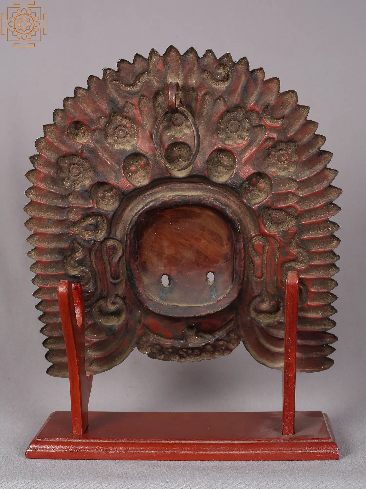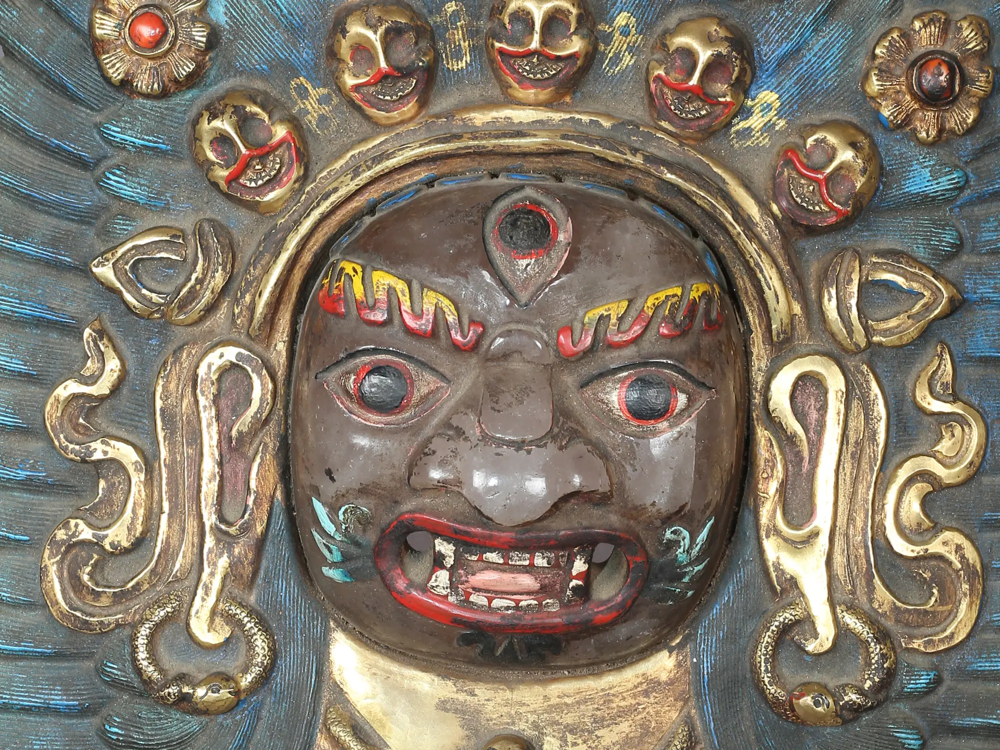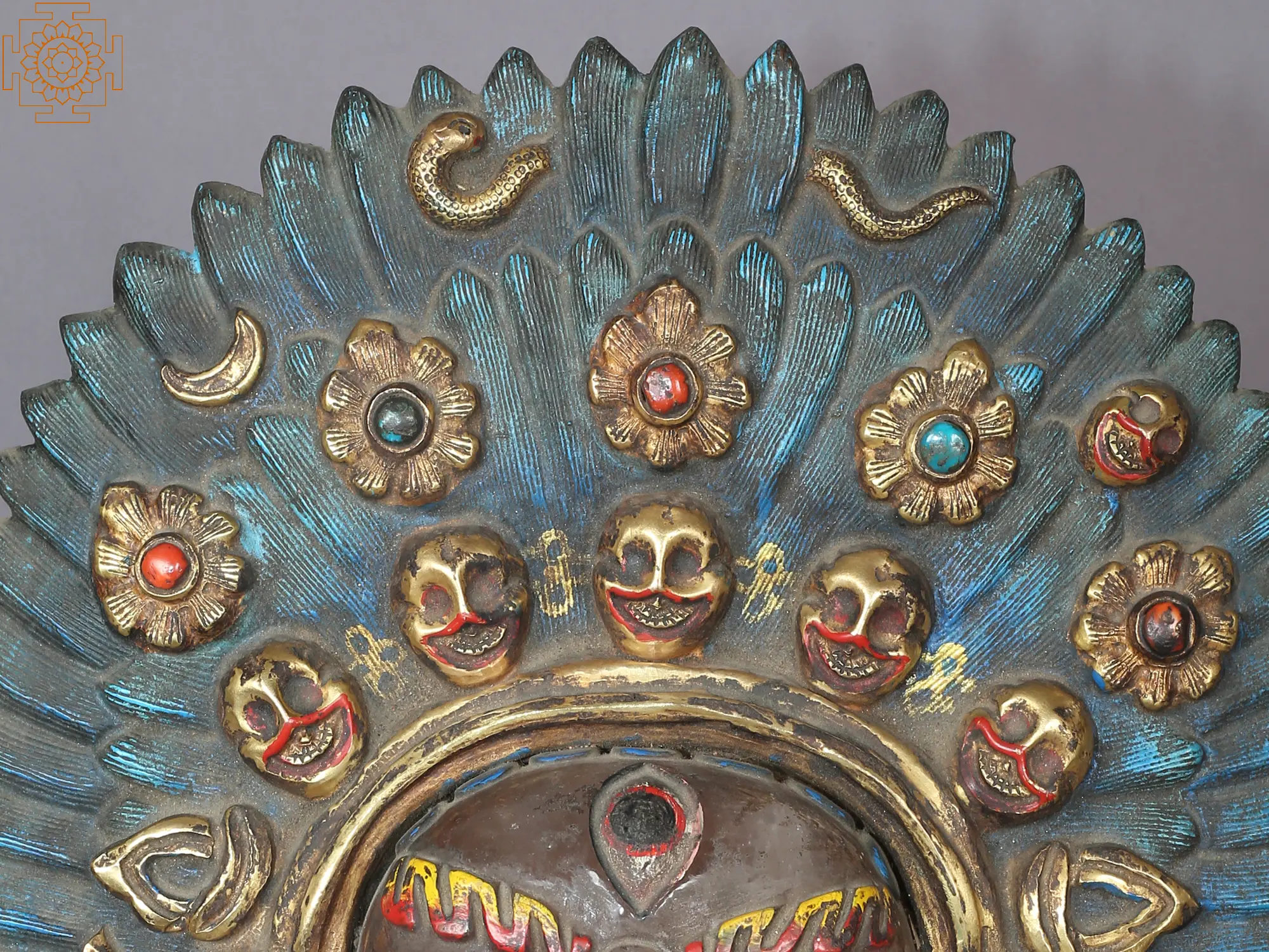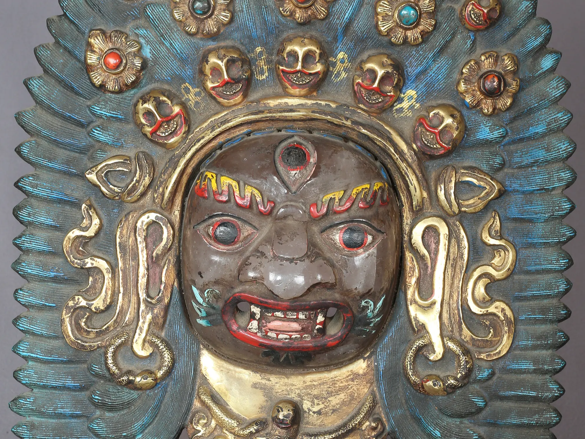 28'' Fierce Hindu God Crowned Bhairava Face From Nepal | Copper Gilded With Gold