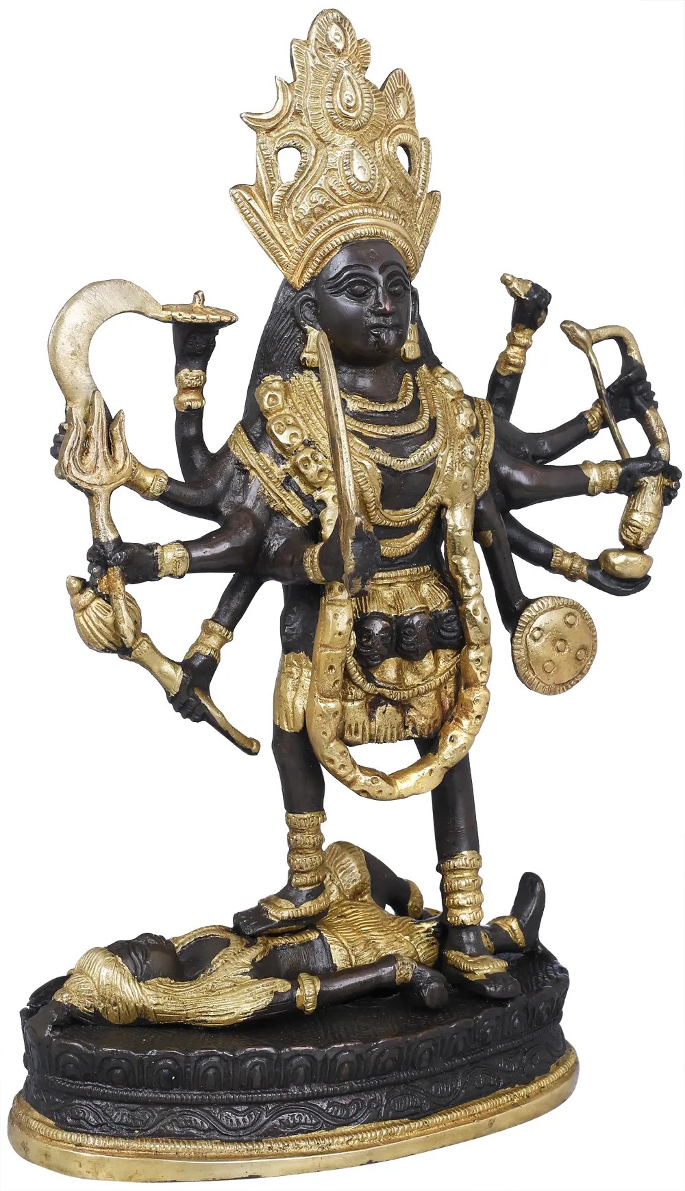 11" Mother Goddess Kali In Brass | Handmade | Made In India