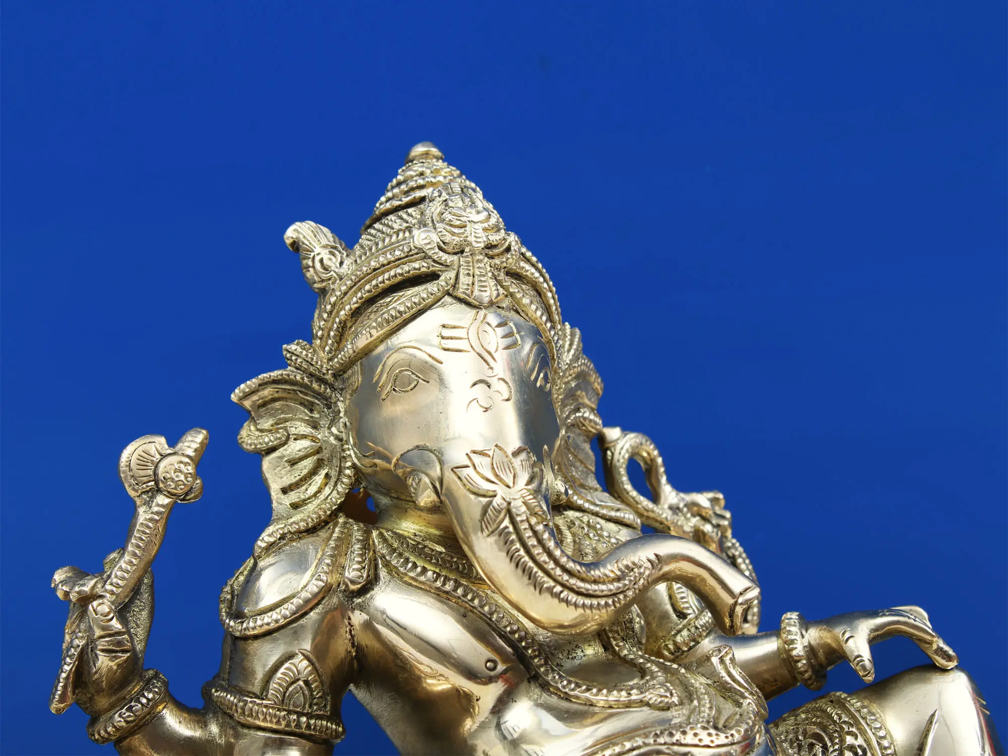 The choice of brass for this statue is significant. Brass has long been associated with auspiciousness and purity in many cultures. Its durability ensures that this piece will be a cherished heirloom, passed down through generations, its beauty only deepening with age. The warm, lustrous glow of brass complements the divine subject matter, lending an air of divinity and reverence to the piece. This statue is not merely a decorative item; it is a spiritual conduit, a tangible representation of divine blessings and a constant reminder of the presence of Ganesha's benevolent energy. Place it in your puja room, on your desk, or as a centerpiece in your living area to imbue your surroundings with its sacred essence and the promise of auspicious fortune.
