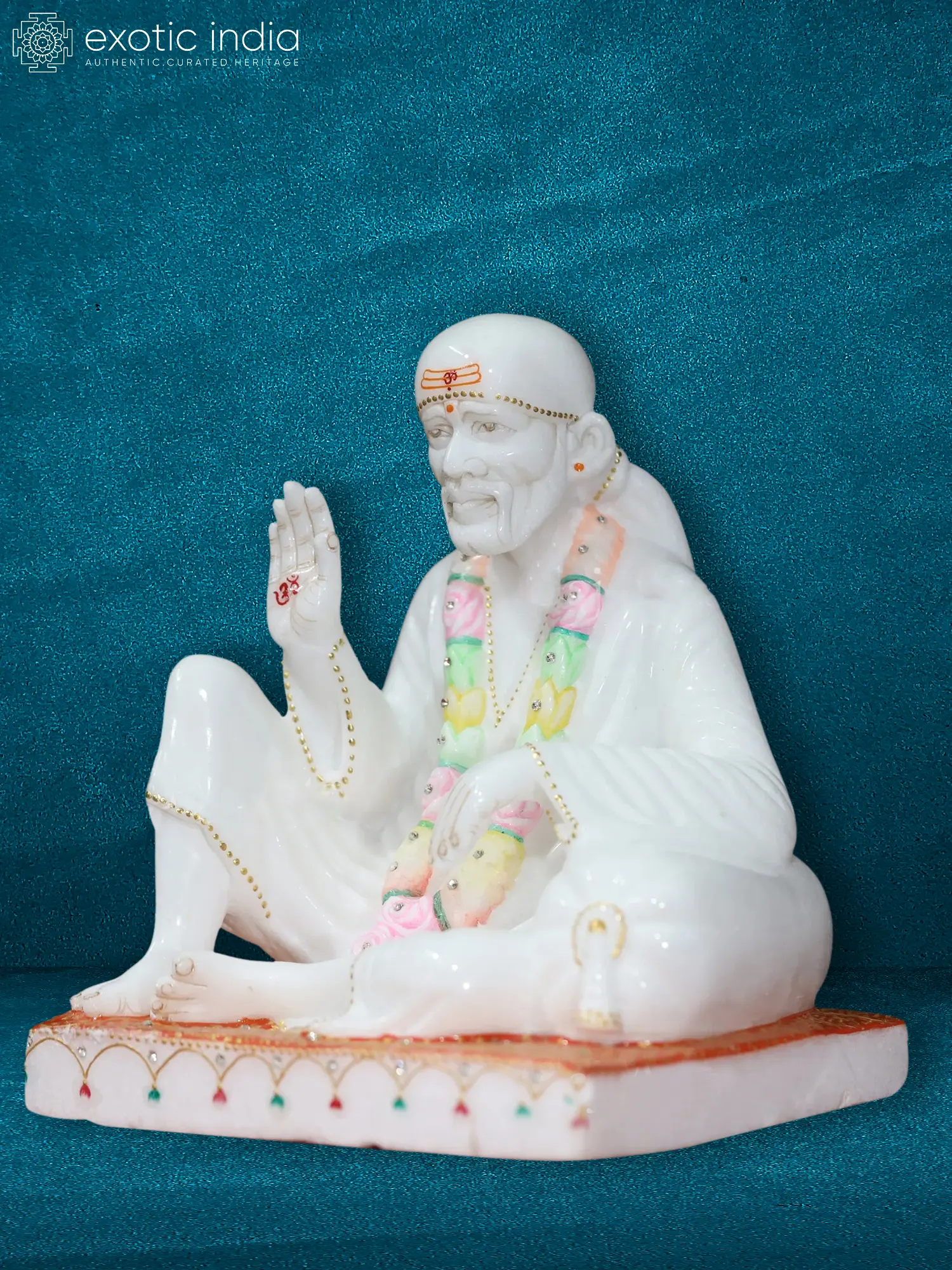 15" Hand-Carved Sai Statue | White Makrana Marble Idol