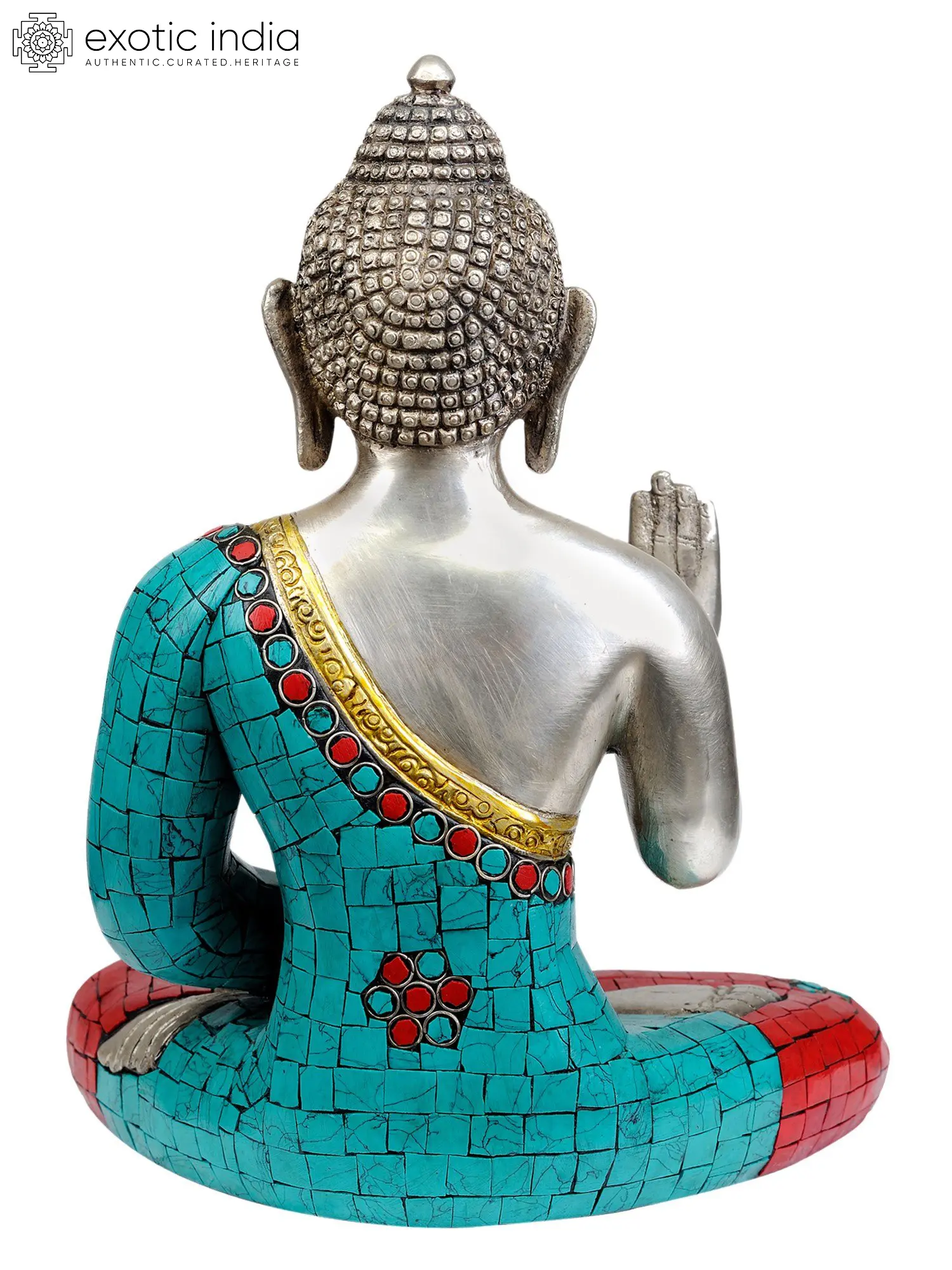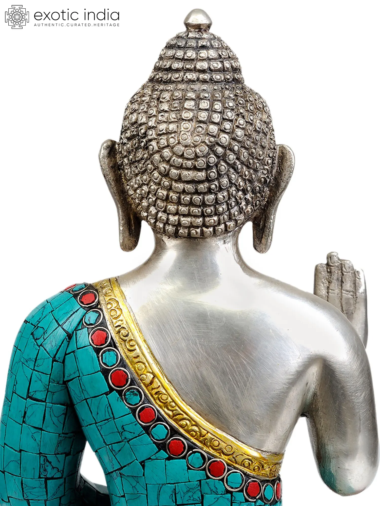 11" Shakyamuni Buddha Granting Abhaya (Inlay Statue) In Brass