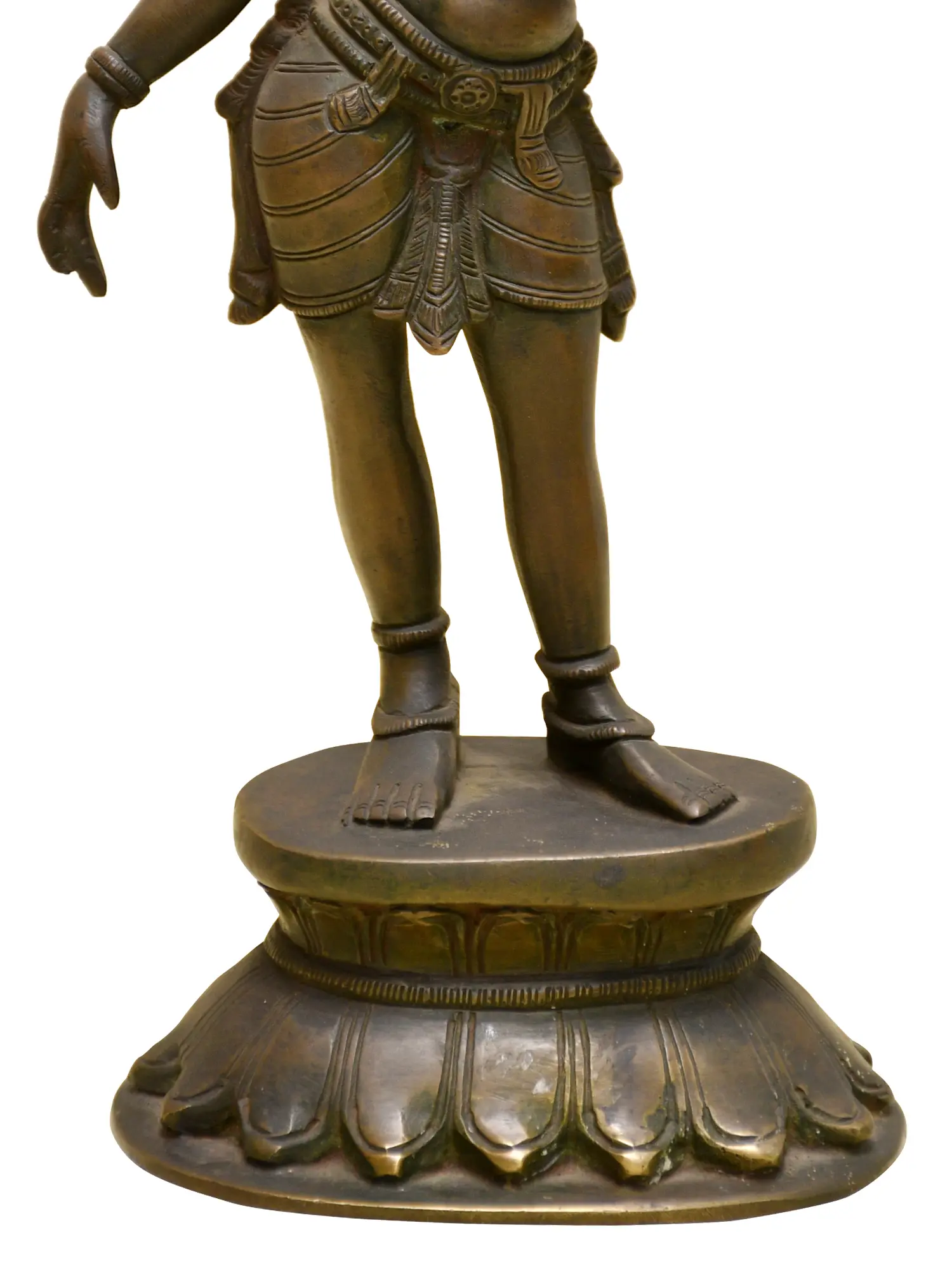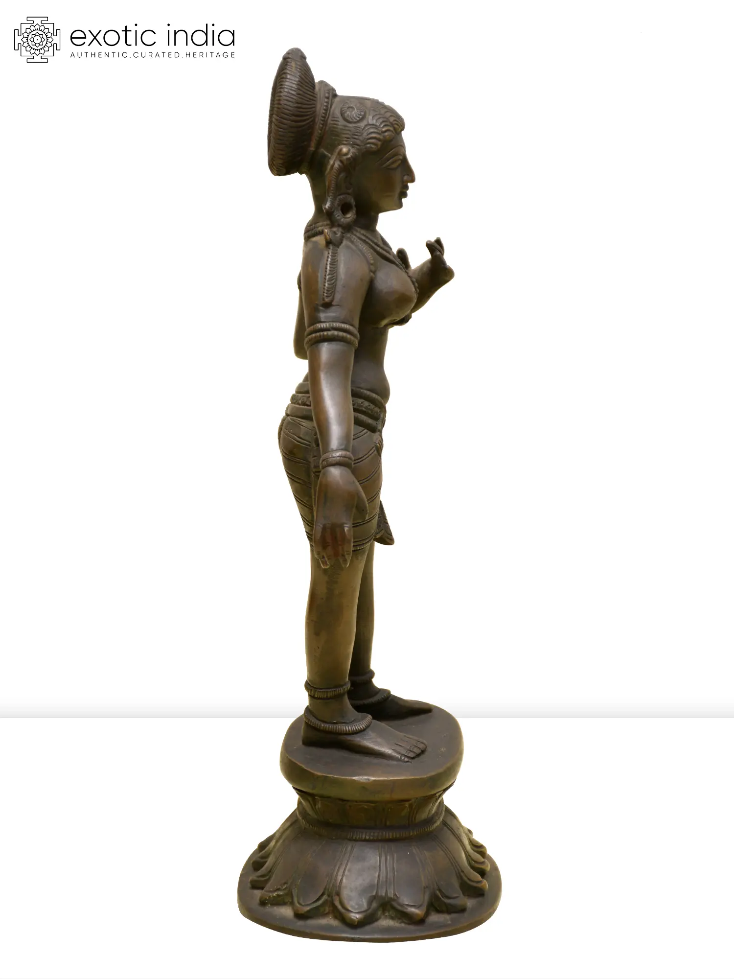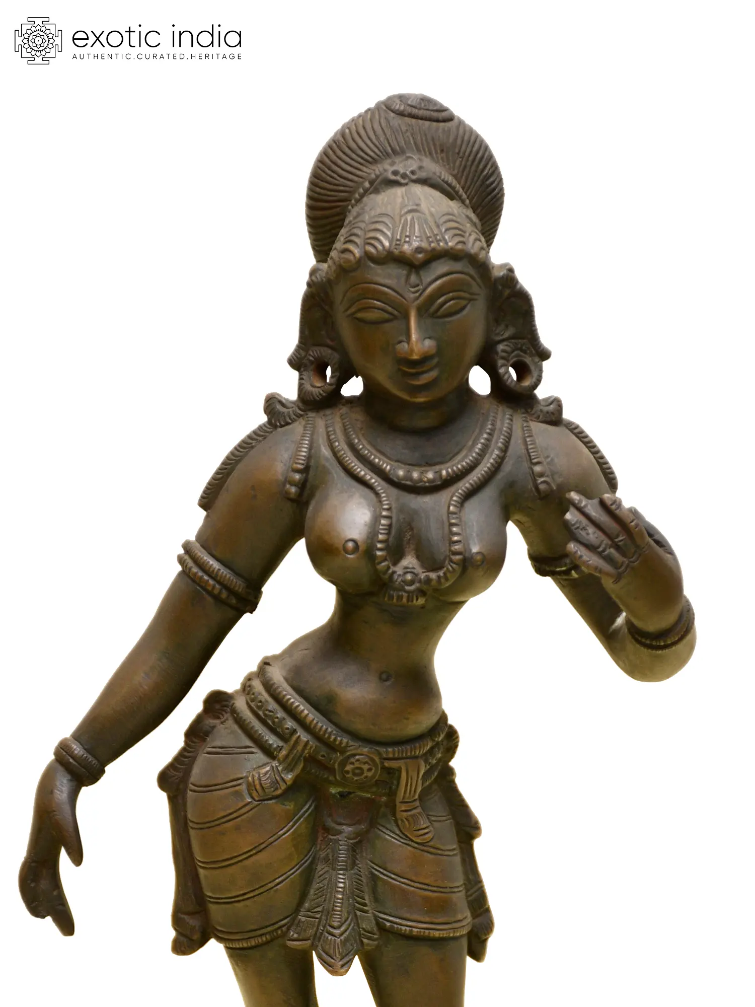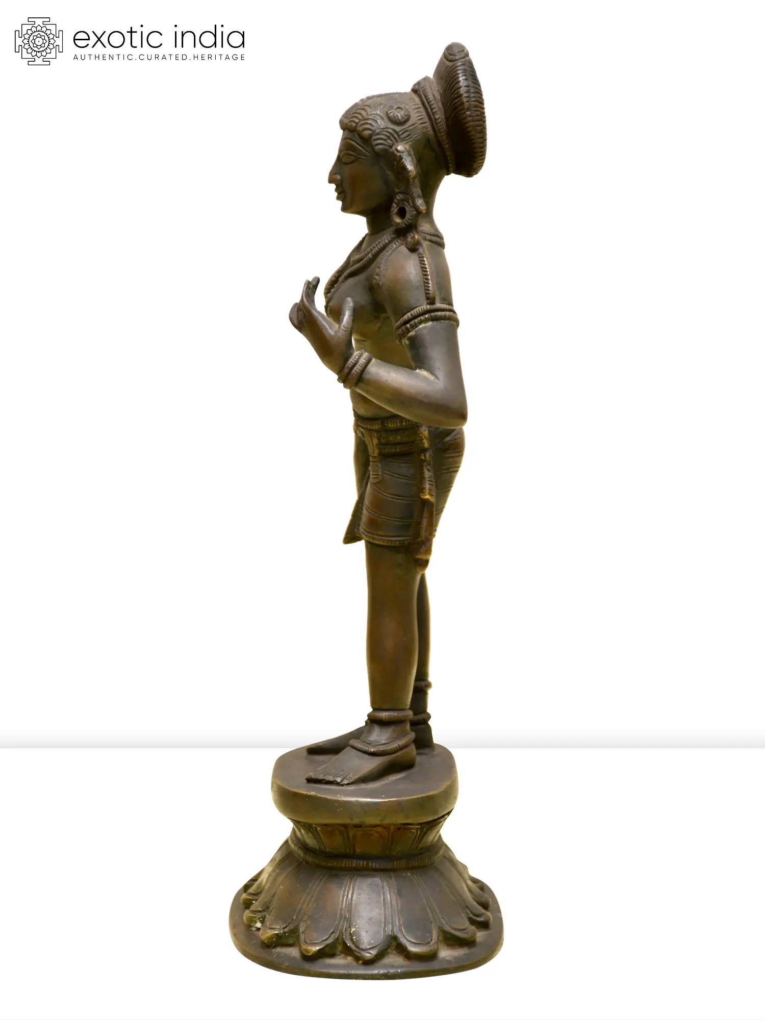This Panchaloha bronze statue presents a youthful woman, labeled “Apsara” or celestial nymph due to her unparalleled and perfect allure.