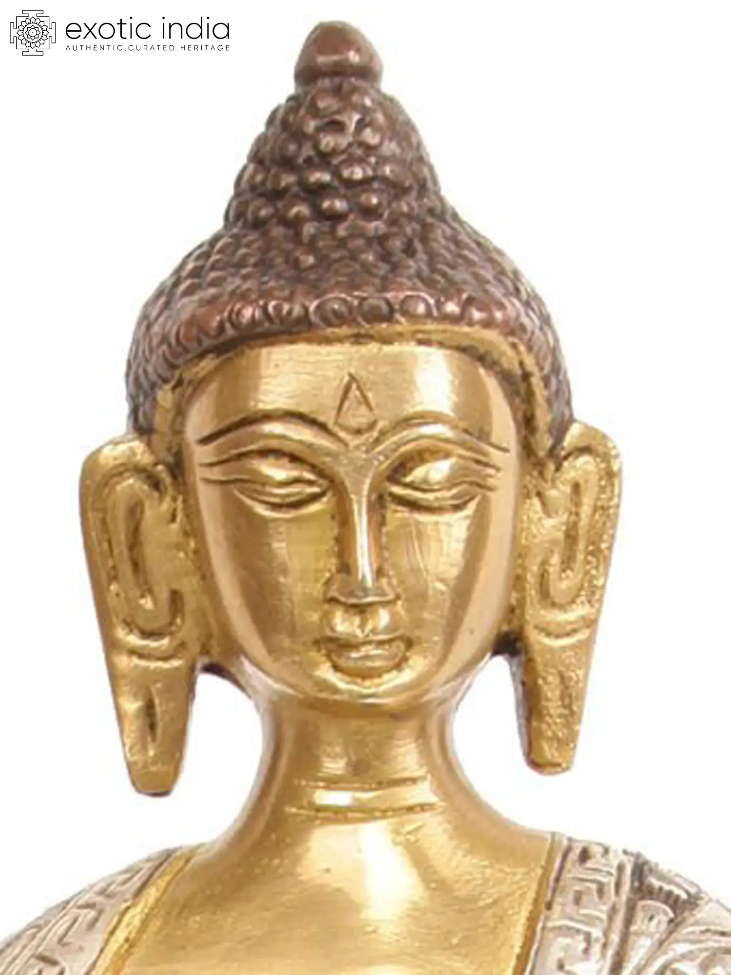 This exquisite brass statue embodies the profound peace and wisdom of Lord Buddha. Standing tall, this meticulously handcrafted piece from India captures the essence of the enlightened one in a moment of serene contemplation and gentle offering. The skilled artisans have poured their devotion and talent into every detail, creating a masterpiece that resonates with spiritual energy and artistic brilliance. The posture of the Buddha, with one hand raised in a gesture of blessing or protection and the other by his side, conveys a sense of compassionate vigilance. This specific mudra, known as Abhaya Mudra, symbolizes fearlessness and reassurance. It's a powerful reminder of the Buddha's teachings that one should overcome fear and suffering through wisdom and mindfulness. The intricate carving of his robes, adorned with auspicious symbols and flowing patterns, speaks to the rich cultural heritage from which this artwork originates. Each fold and drape is rendered with such precision that it appears almost lifelike, adding to the statue's captivating presence.