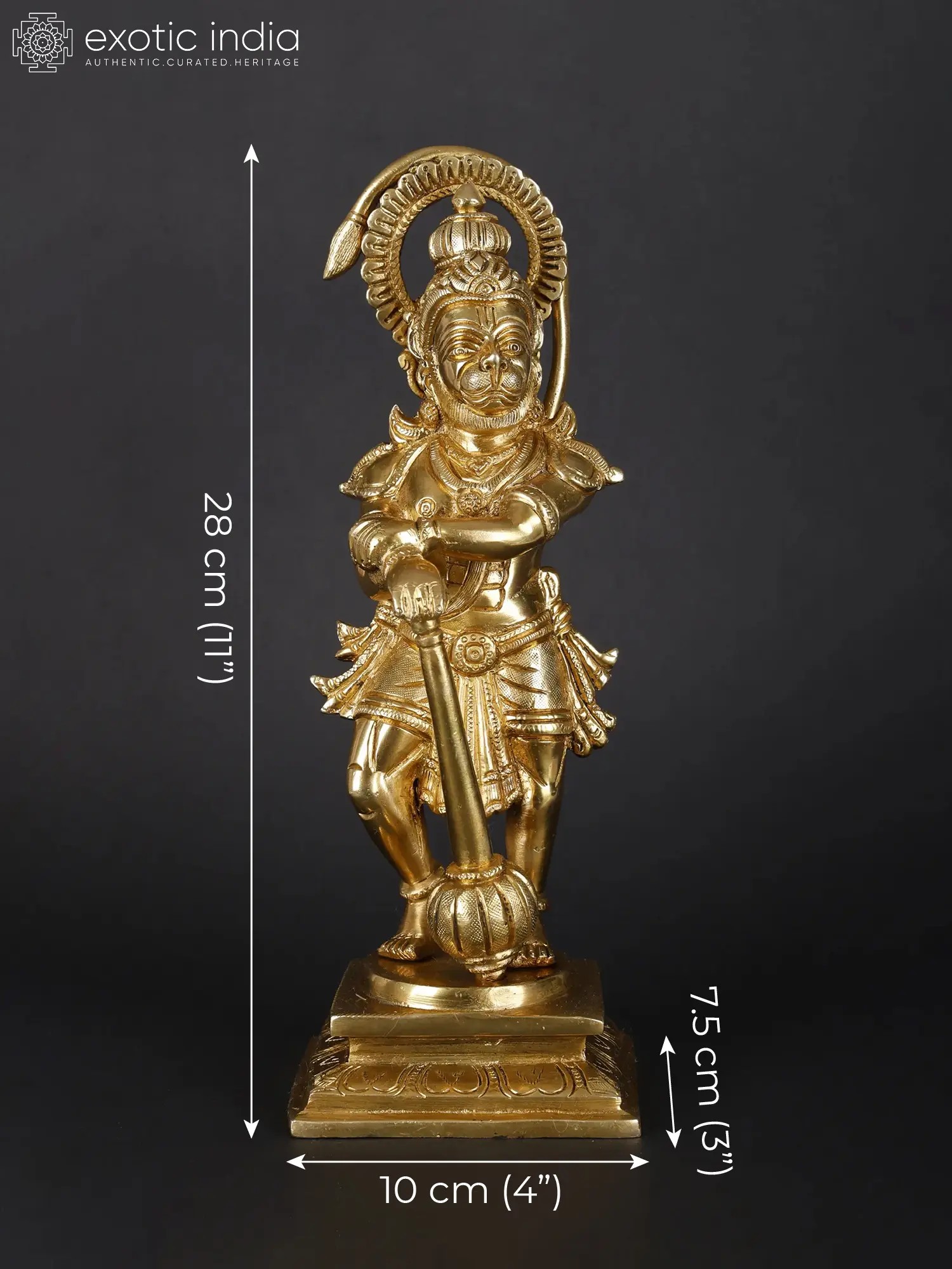 12" Superfine Standing Lord Hanuman in Blessing Gesture | Brass Statue with Inlay Work
