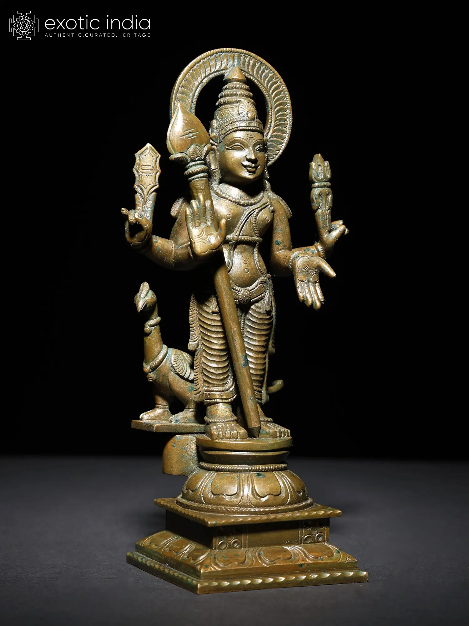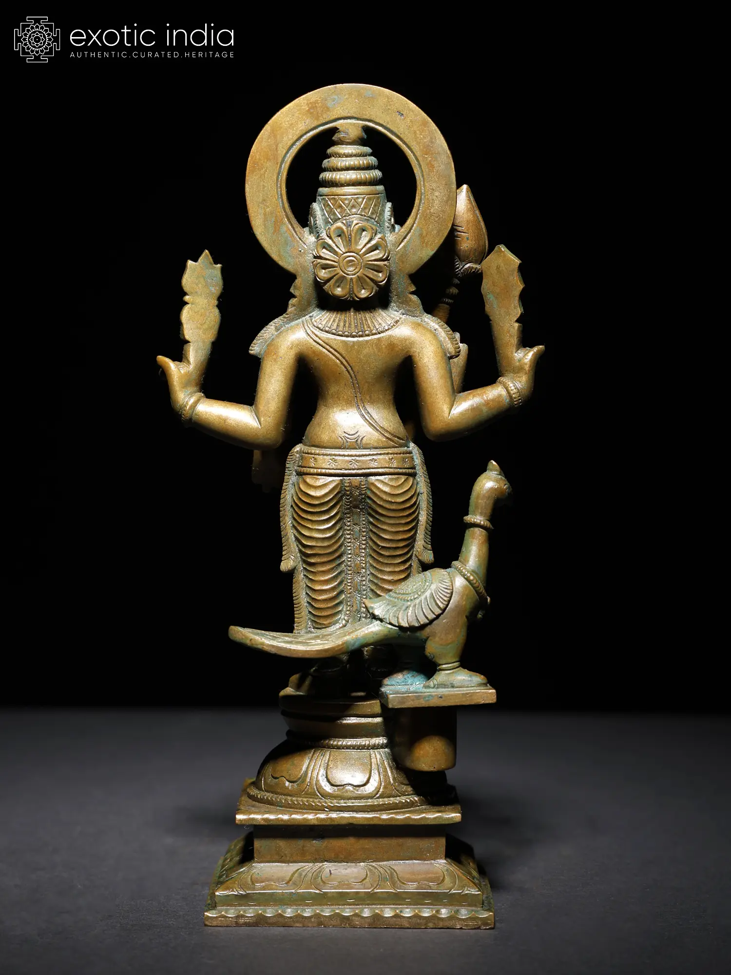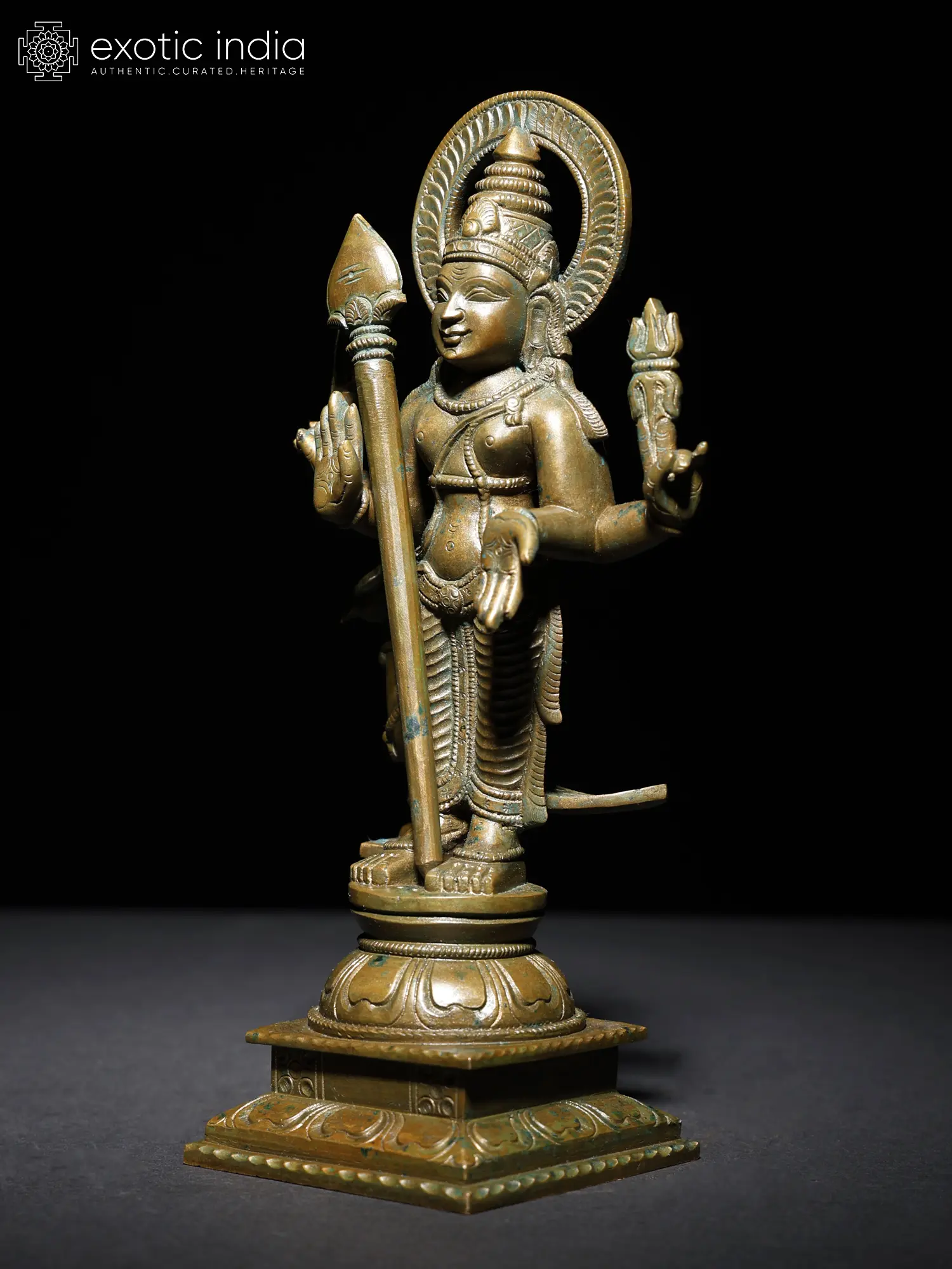 The Standing Lord Kartikeya (Murugan) Bronze Statue is a stunning representation of the revered Hindu deity, known as the god of war and victory.