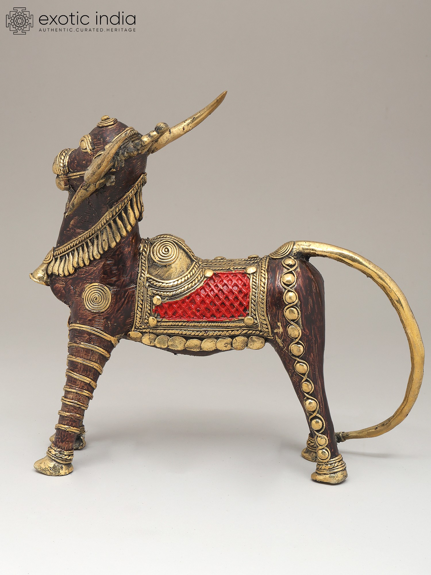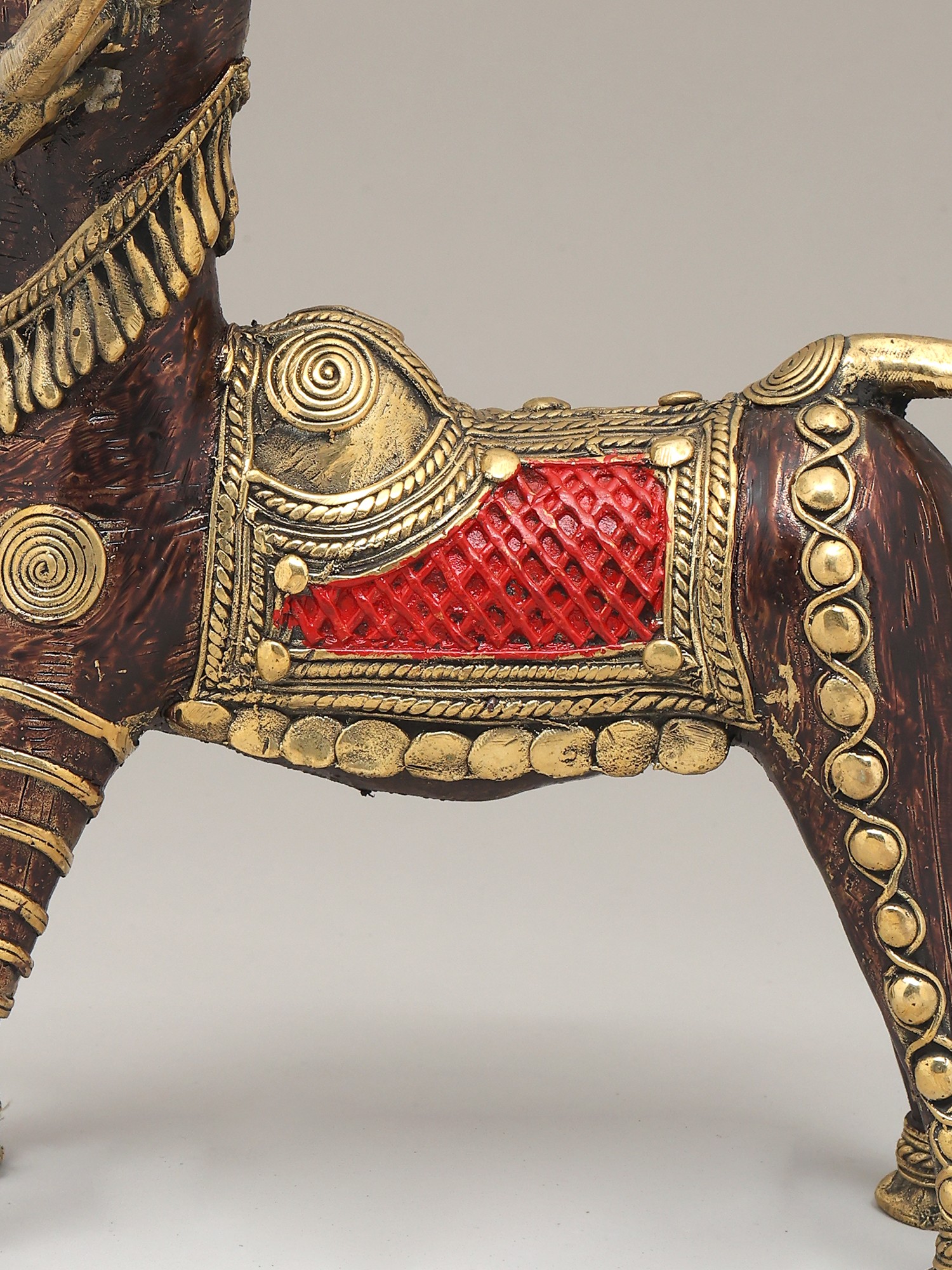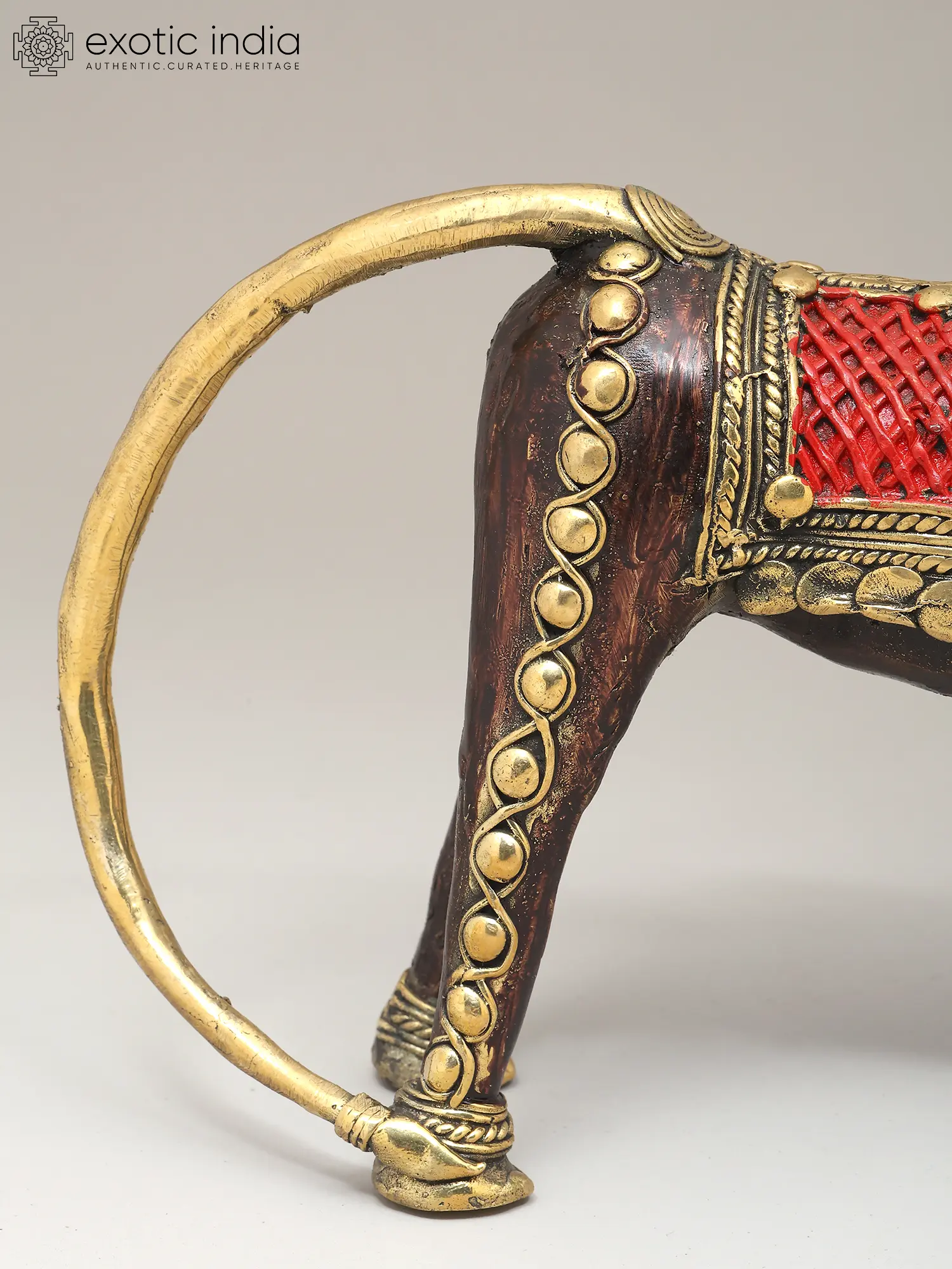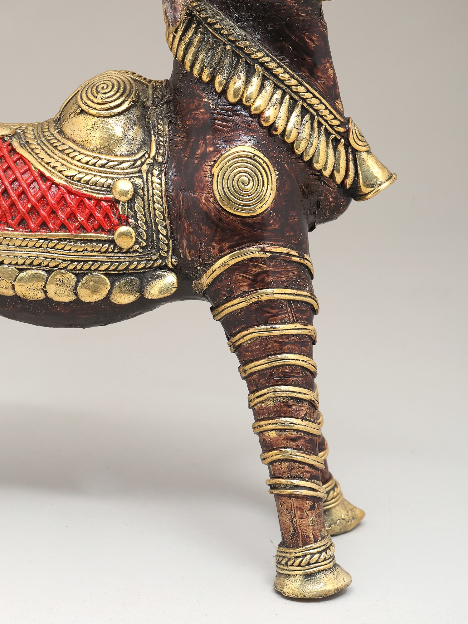 9" Dhokra Art Elephant Design Tribal Lamp in Brass