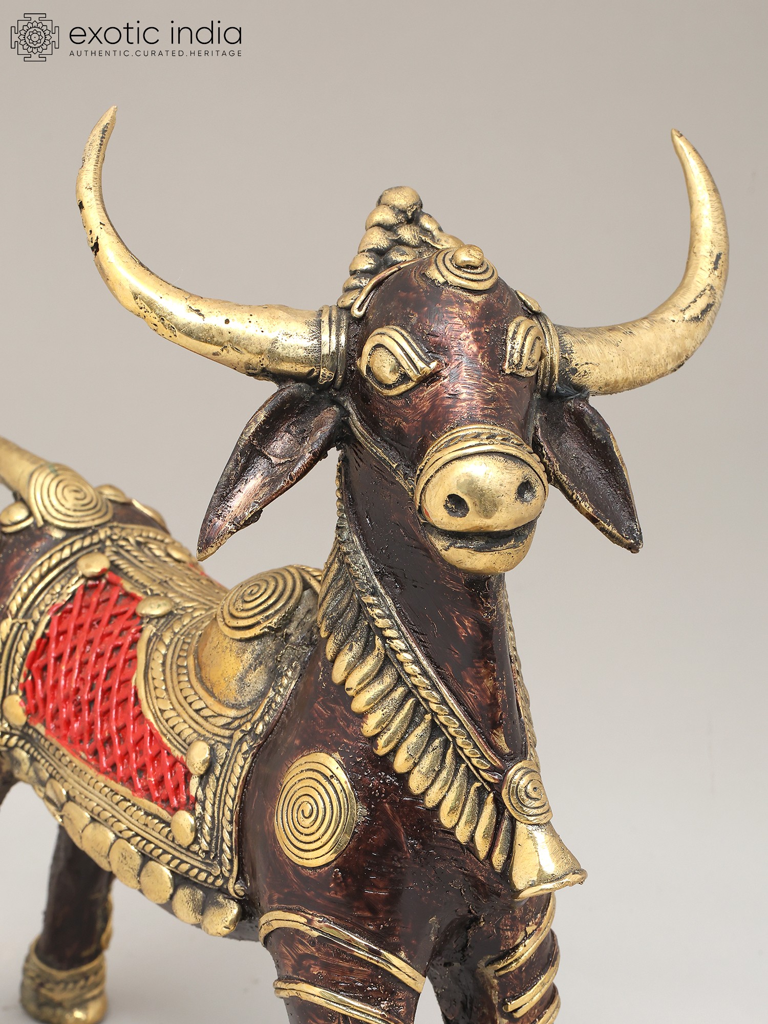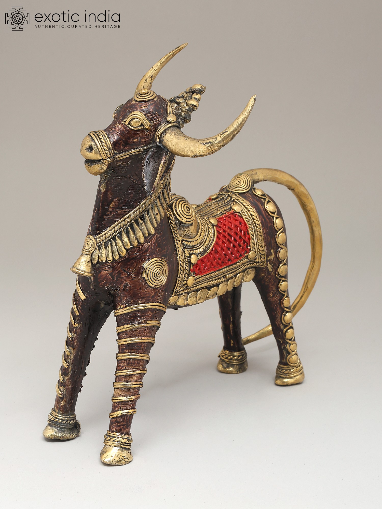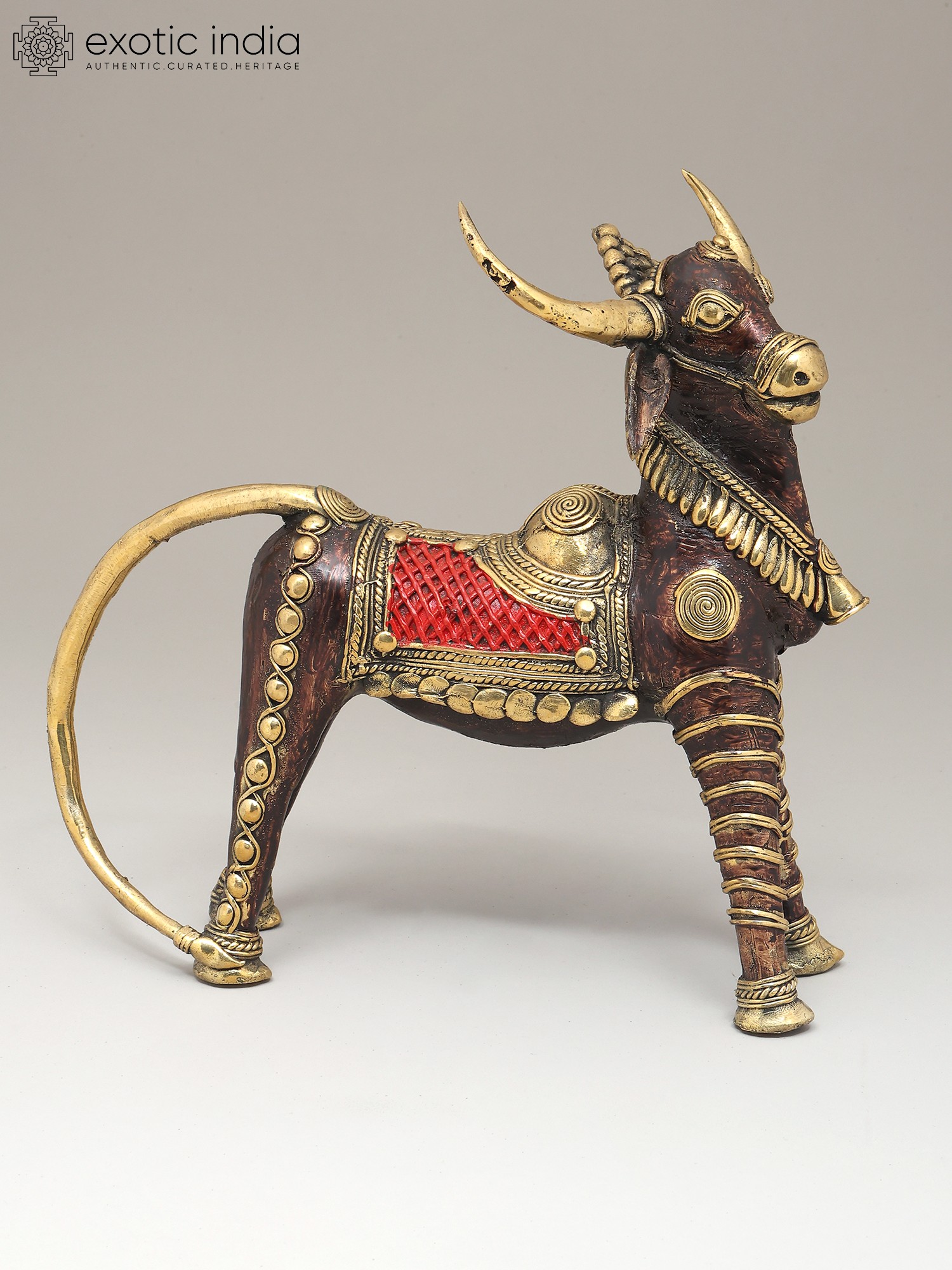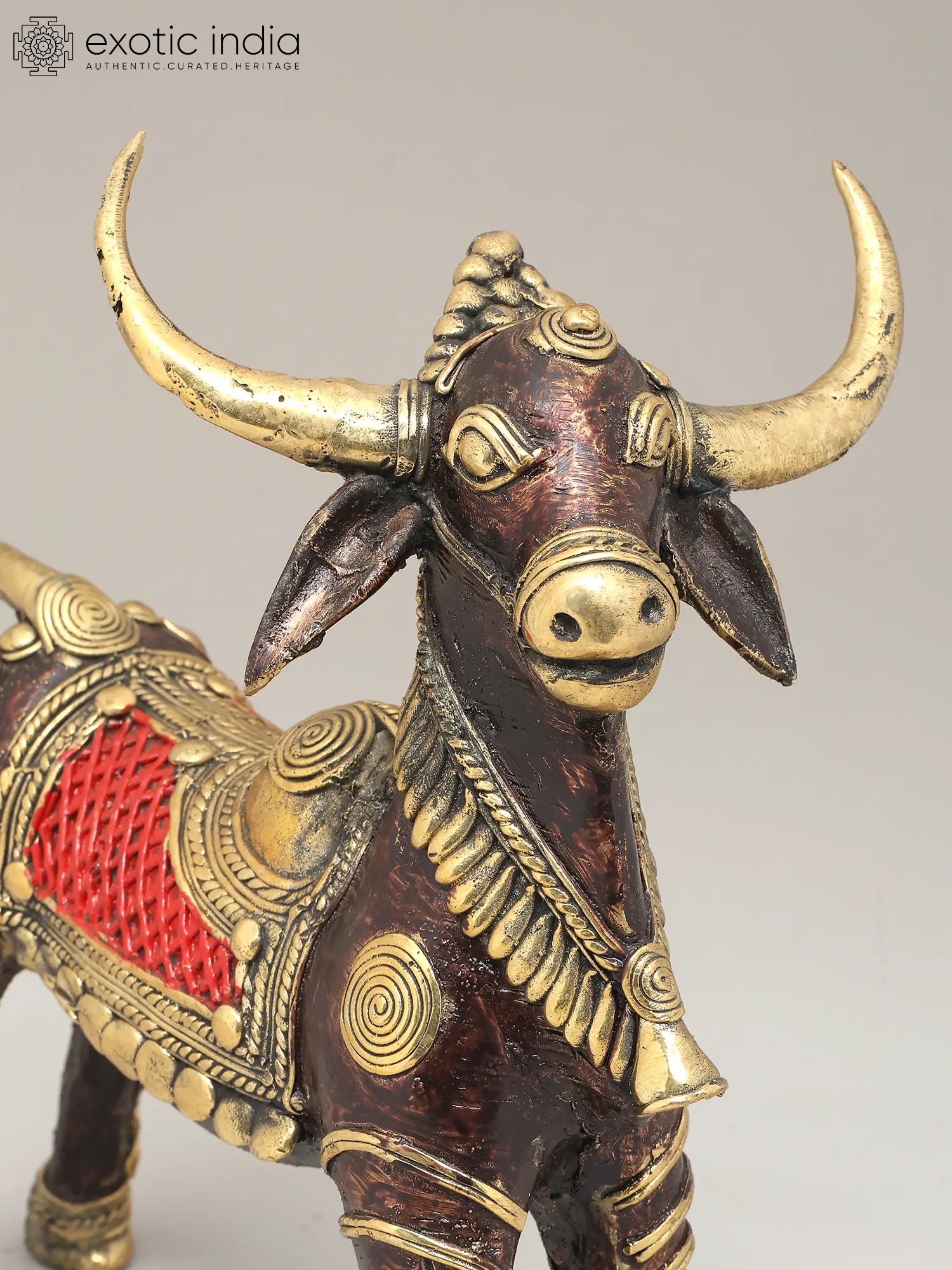 9" Dhokra Art Elephant Design Tribal Lamp in Brass