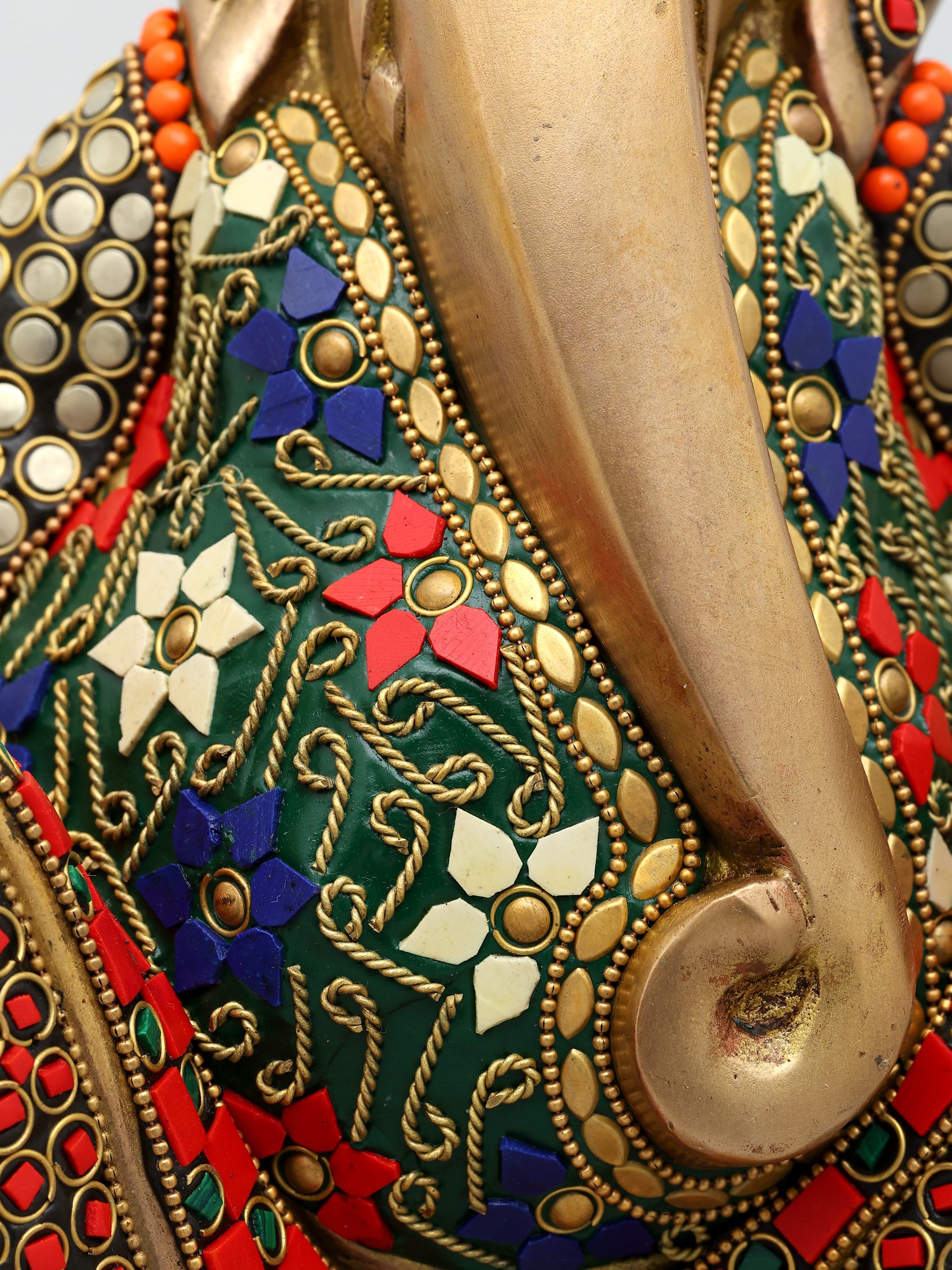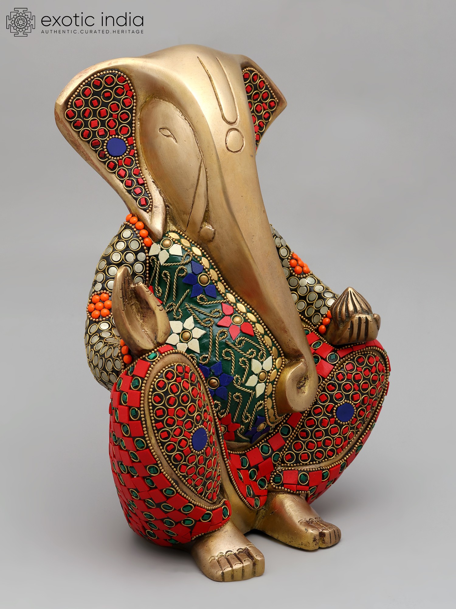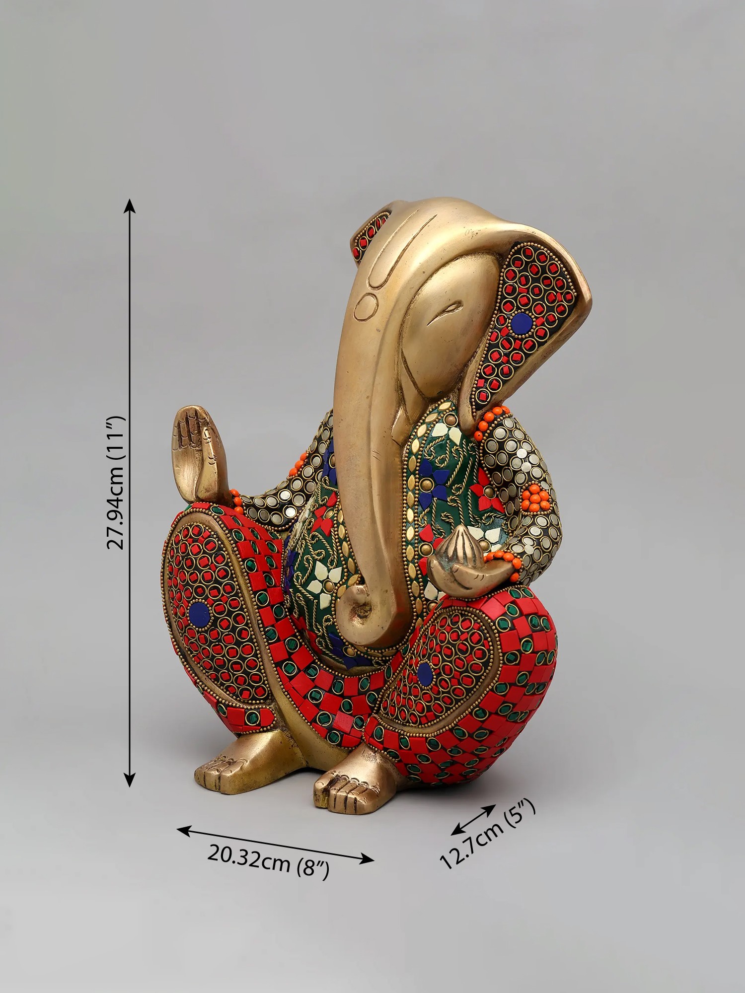 16" Stylized Ganapati Granting Abhaya (Inlay Statue) In Brass | Handmade | Made In India