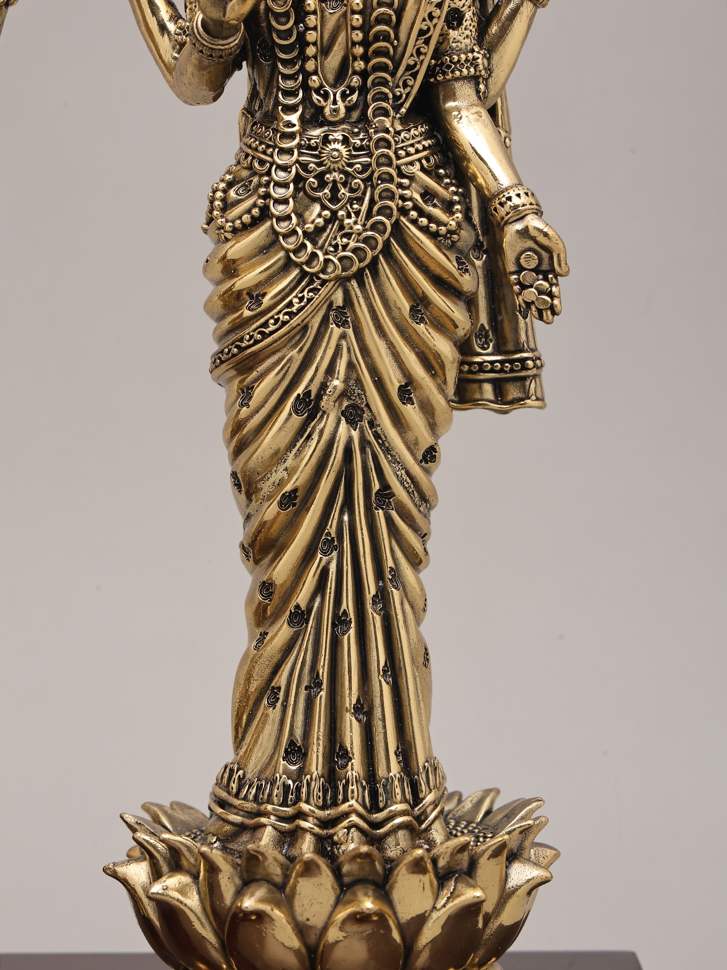 8" Four Armed Goddess Laxmi Seated on Lotus Petals | Green Stone Statue | Hand Carved