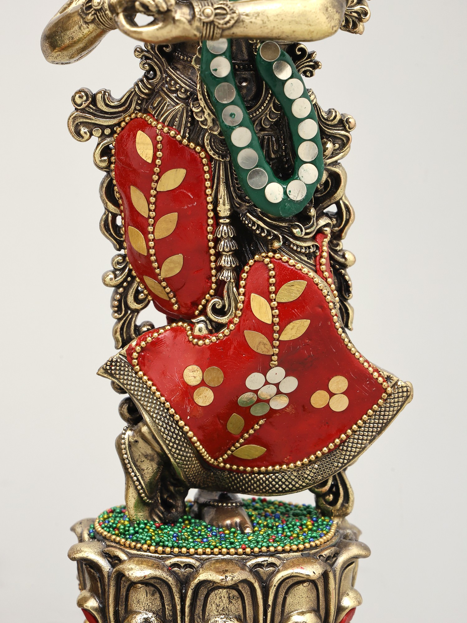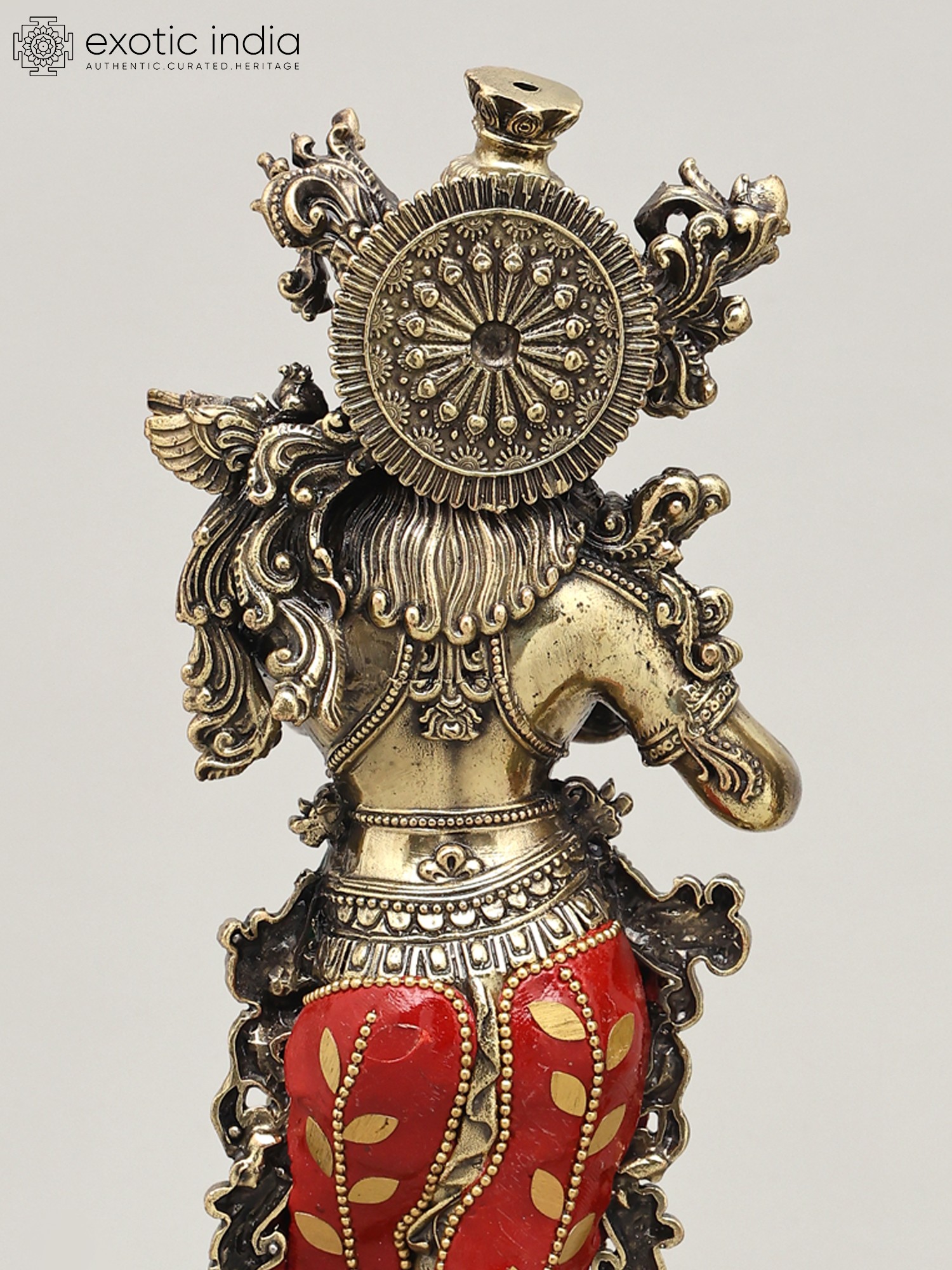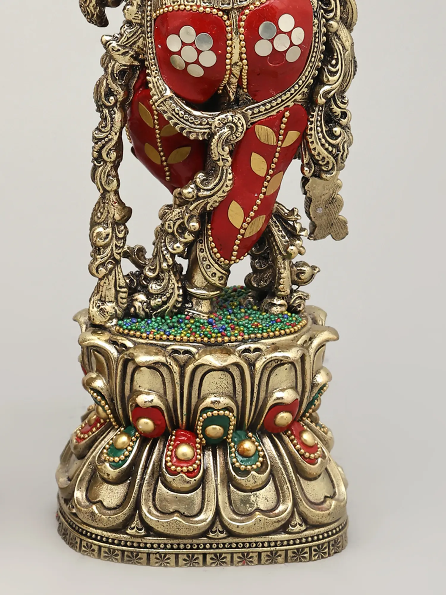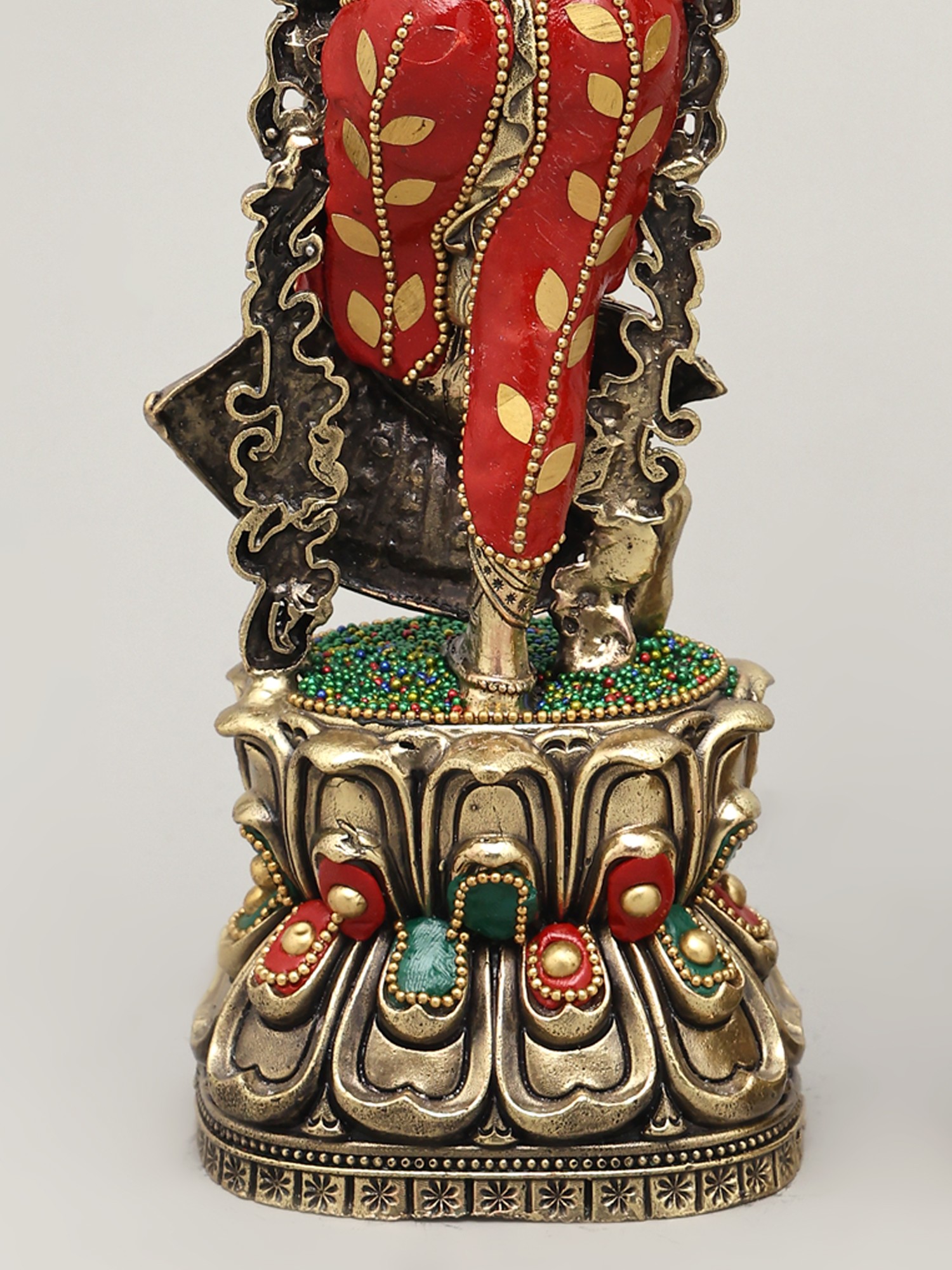 4" Small Divine Form of Lord Vishnu with Conch, Chakra, Mace and Lotus | Brass Statue