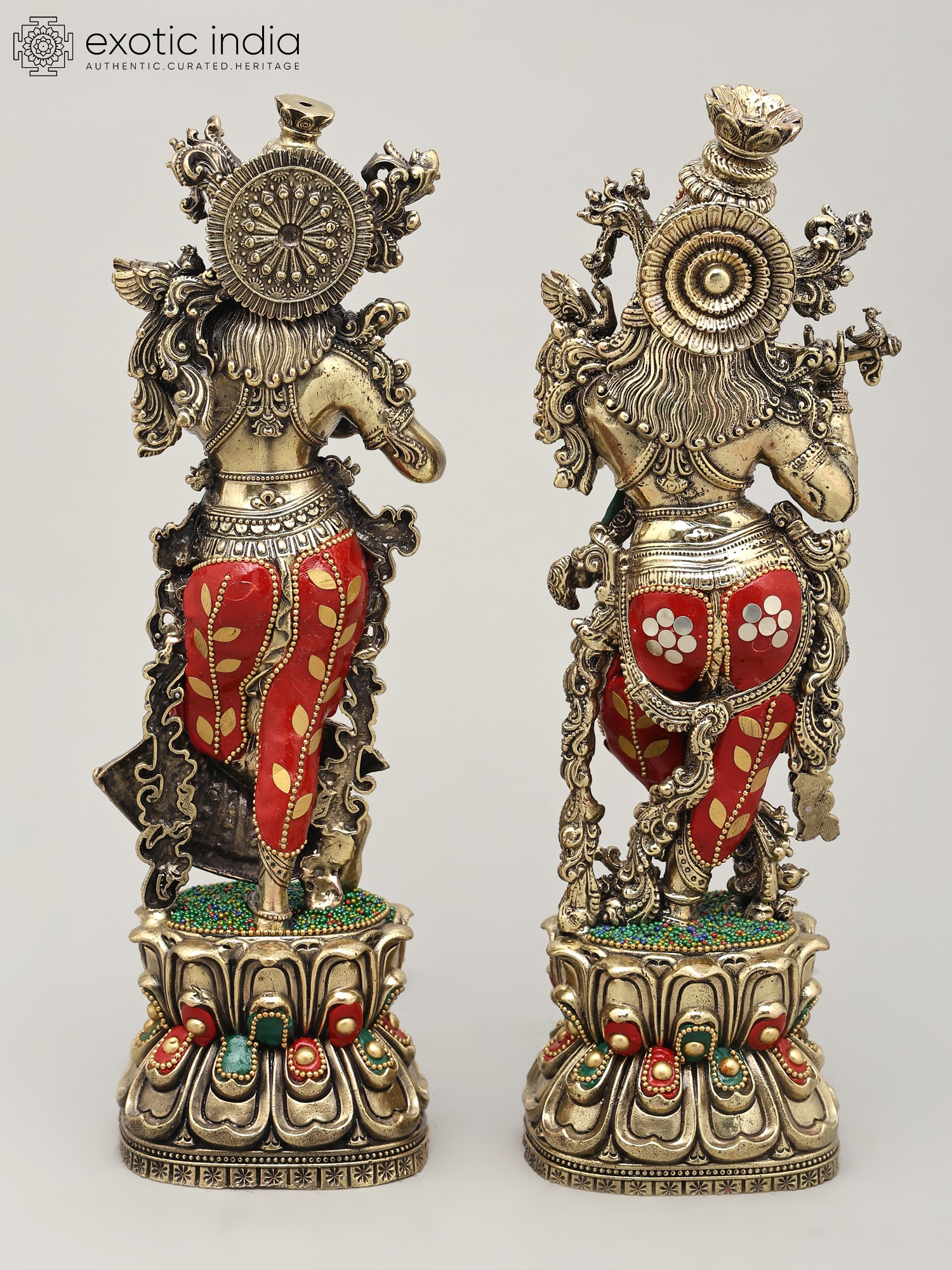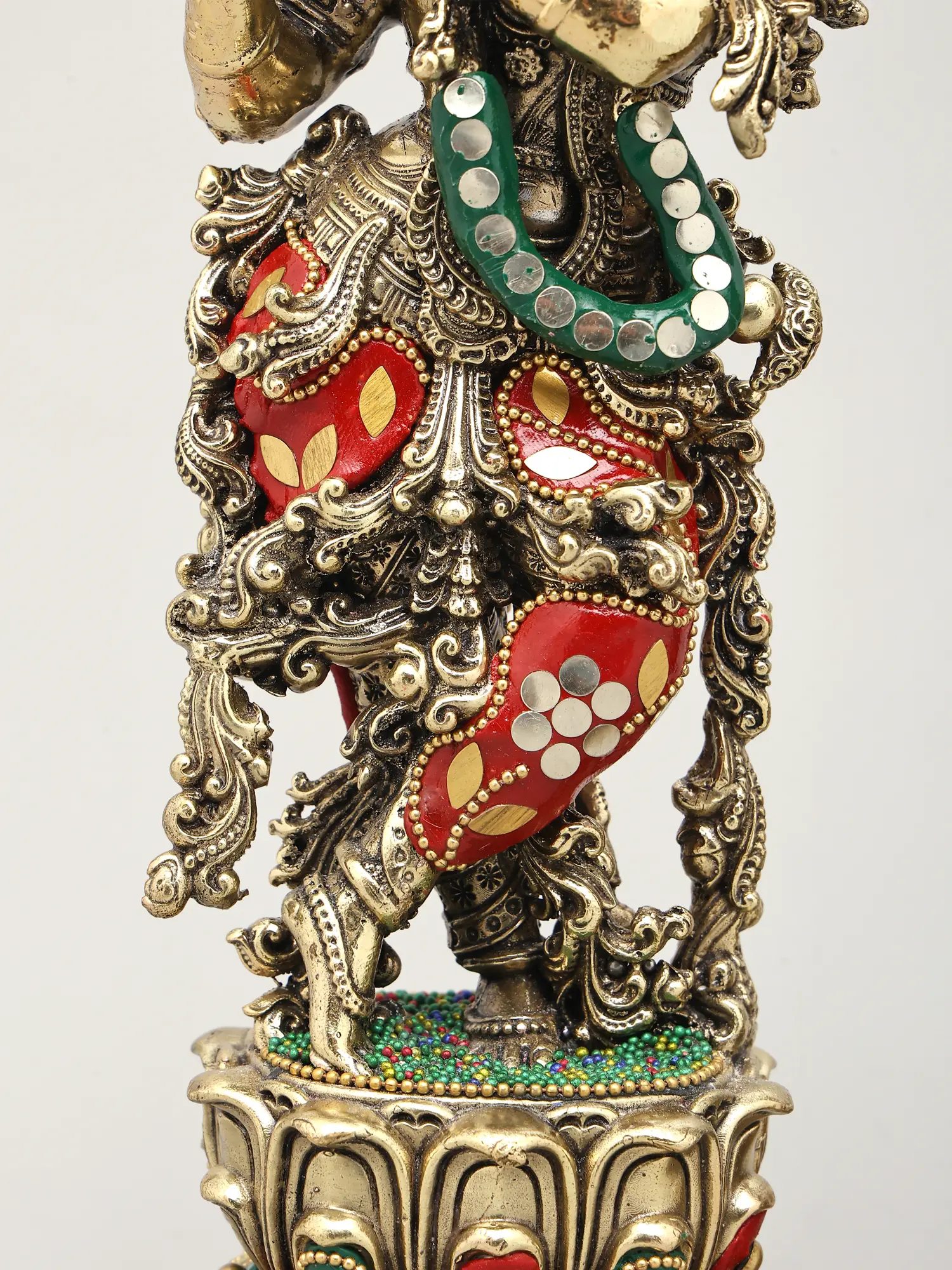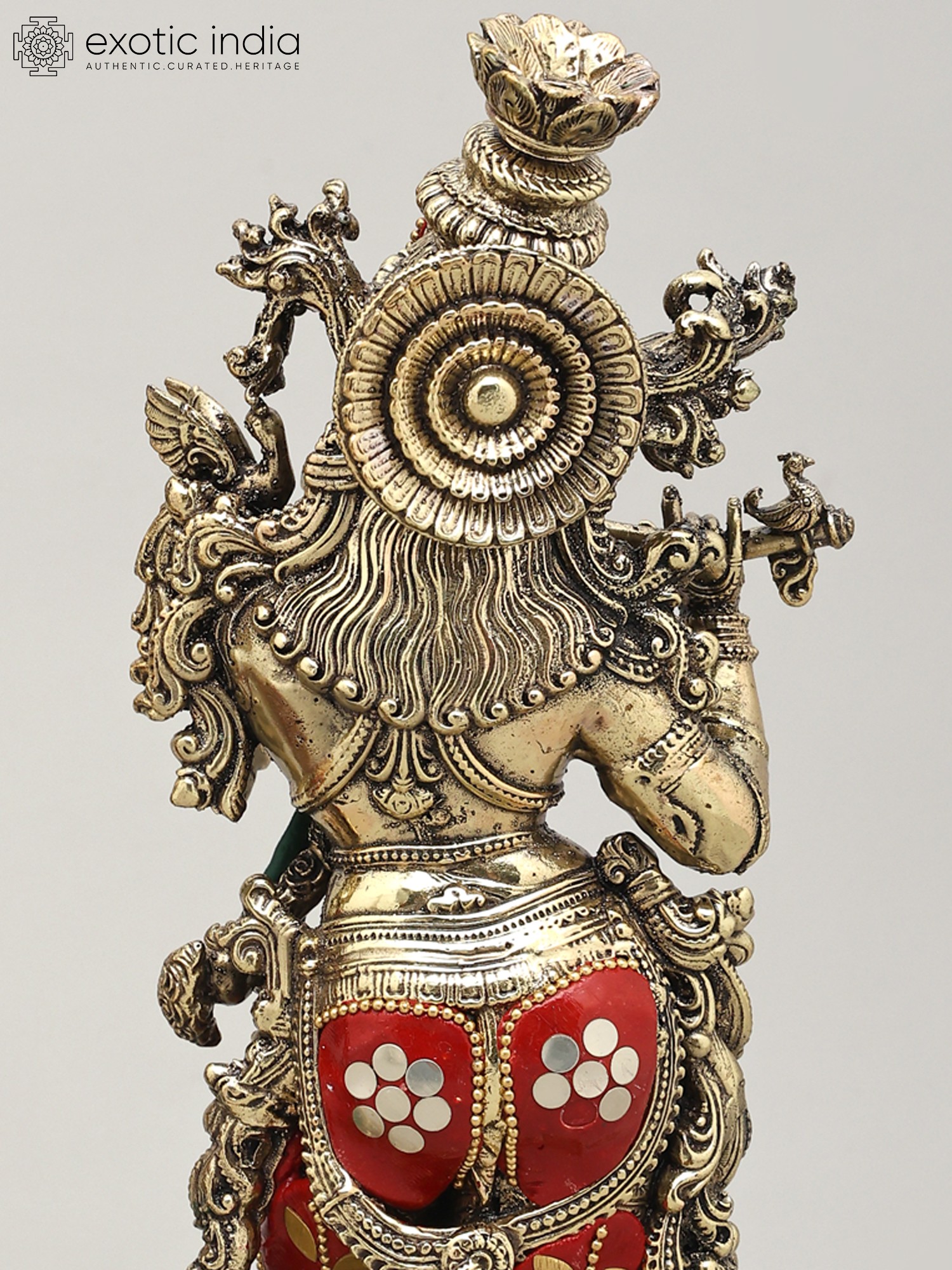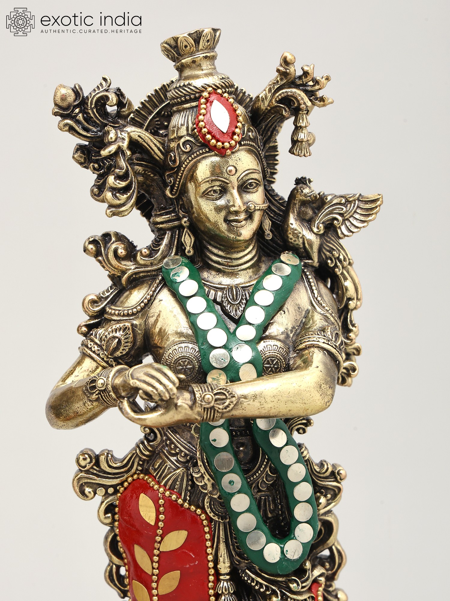 4" Small Divine Form of Lord Vishnu with Conch, Chakra, Mace and Lotus | Brass Statue