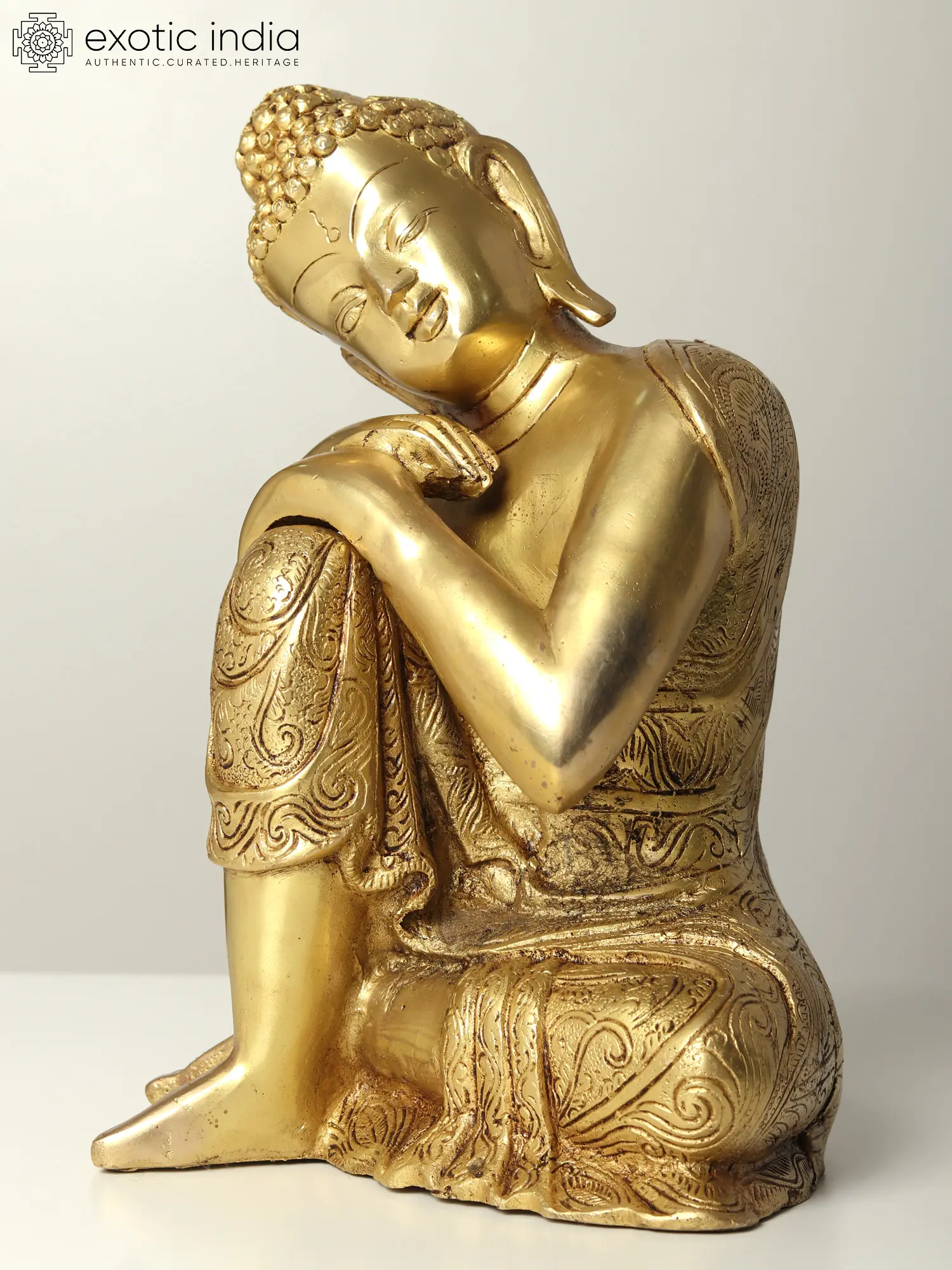 Self-reflection is an essential component of living a peaceful life. This Thinking Buddha Brass statue represents Buddha as an incarnation who is deeply engaged in self-reflection. It is believed that by correcting your actions, you might attain greater insight. The image of Buddha sitting peacefully with his legs crossed and his hands supporting his head while thinking and meditating evokes peaceful emotions in the observer. Keeping this statue at home will add wisdom to the environment by inspiring the beholder to reflect on their deeds.