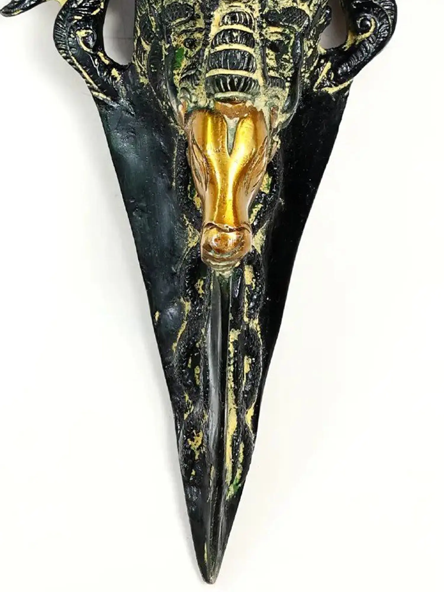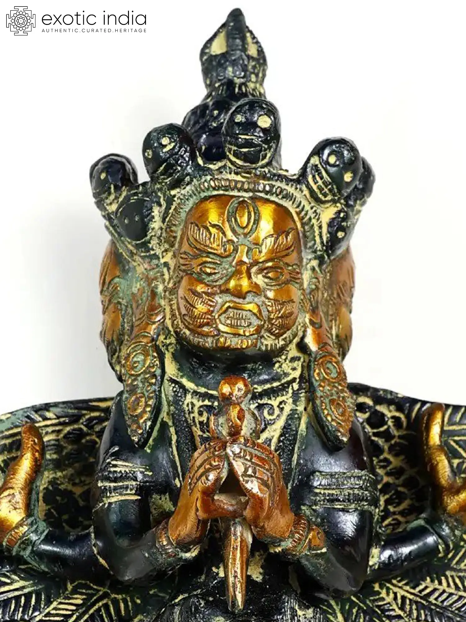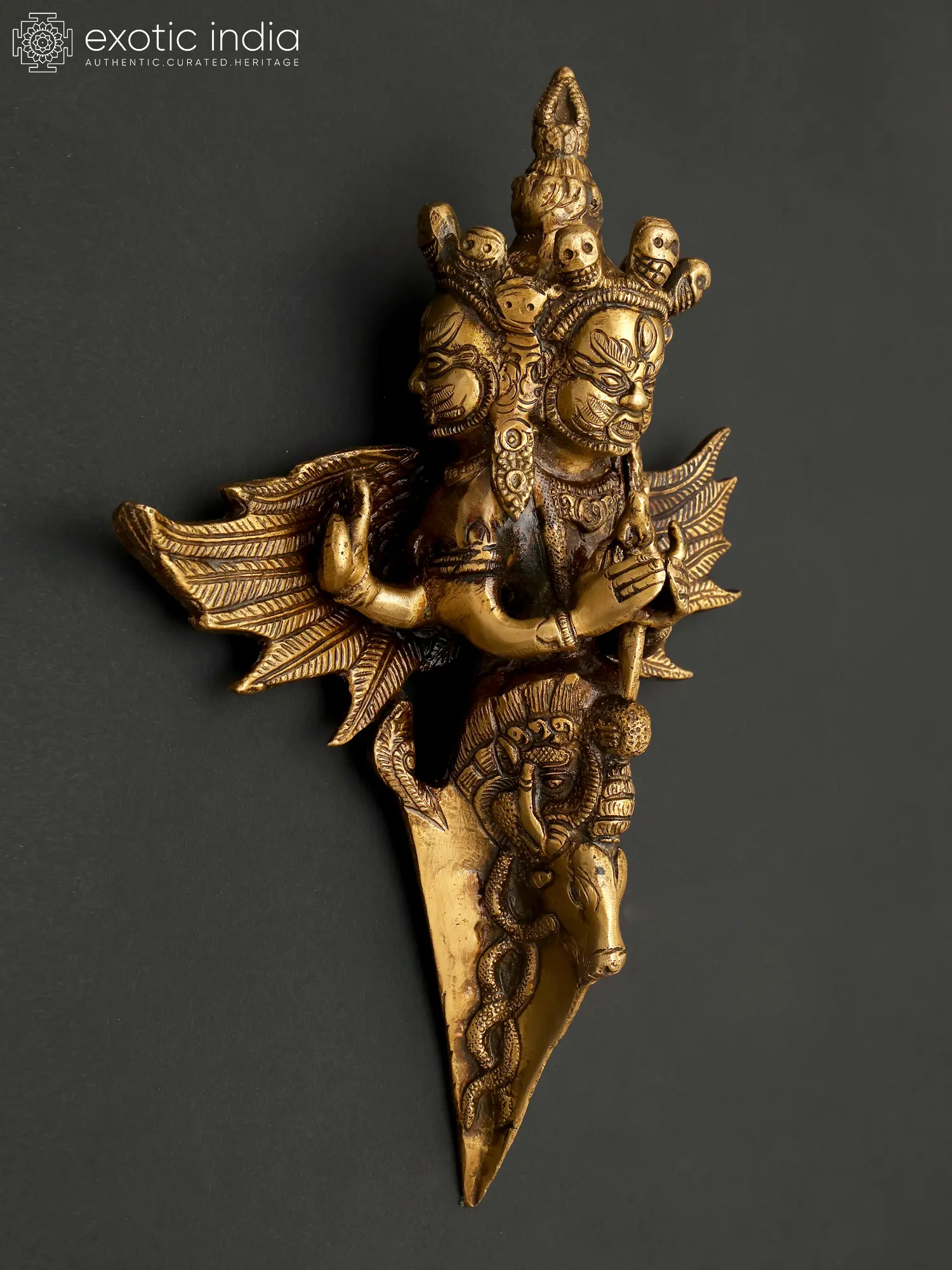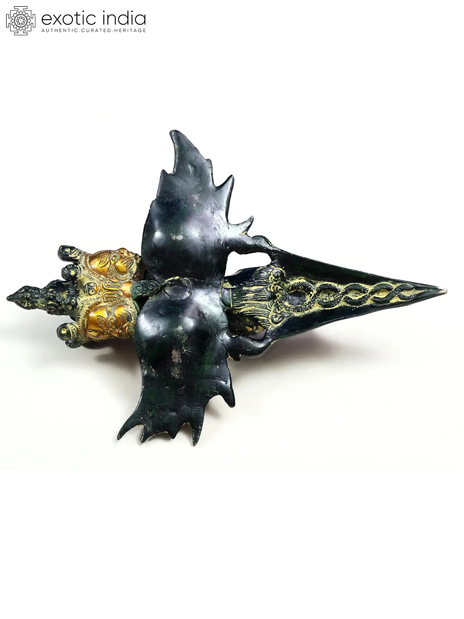 Prepare to be captivated by the Three-Headed Mahakala Phurpa with Wings, a remarkable embodiment of Tibetan Buddhist spirituality. Handmade with meticulous care in the heart of India, this Phurpa transcends the ordinary. With three fearsome heads and ornate wings, it's a symbol of Mahakala's divine protection and fierce compassion. As you include it in your rituals and devotions, it becomes a vessel for spiritual significance, enriching your sacred space with a profound aura of reverence and strength. This Three-Headed Mahakala Phurpa is a harmonious blend of Indian craftsmanship and Tibetan spirituality, inviting you to explore the deep traditions and intricate artistry of Tibetan Buddhism.