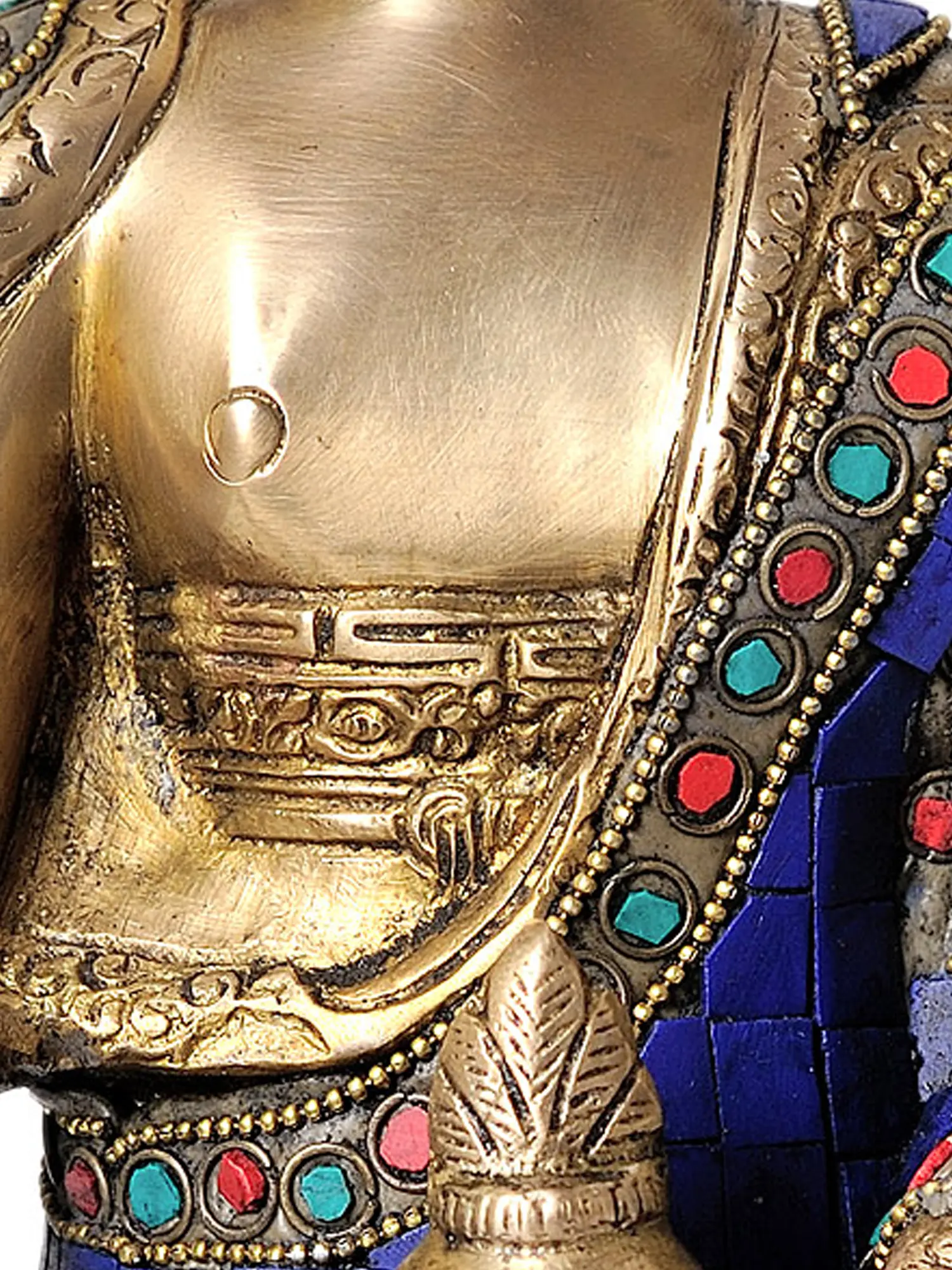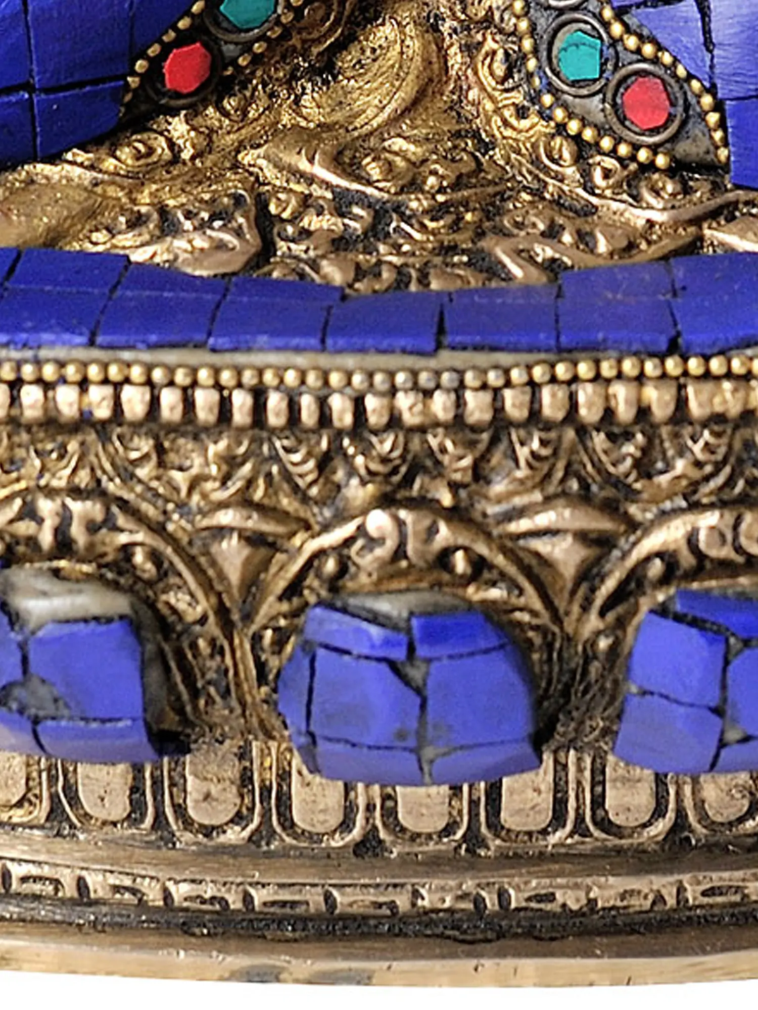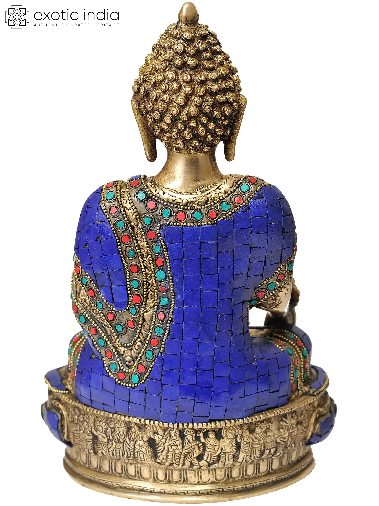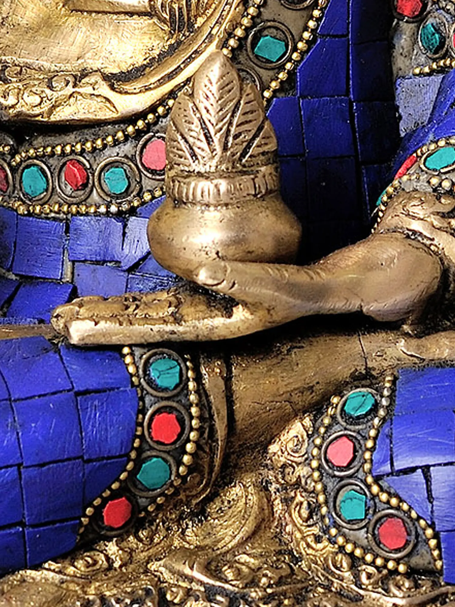 This impressive statue is meticulously handcrafted from high-quality brass, ensuring its durability and timeless appeal. The intricate carving of the Buddha’s serene countenance, the flowing robes, and the ornate base speak to the unparalleled skill of the artisans. The vibrant lapis lazuli, complemented by precisely set turquoise and coral, adds a breathtaking dimension of color and texture, transforming the brass into a truly divine masterpiece. Each element is thoughtfully placed, creating a harmonious and spiritually resonant representation of the Medicine Buddha. This handmade piece from India is more than just a decorative item; it is a sacred artifact, imbued with the spirit of devotion and centuries of artistic tradition, ready to bring its healing grace into your sacred space.