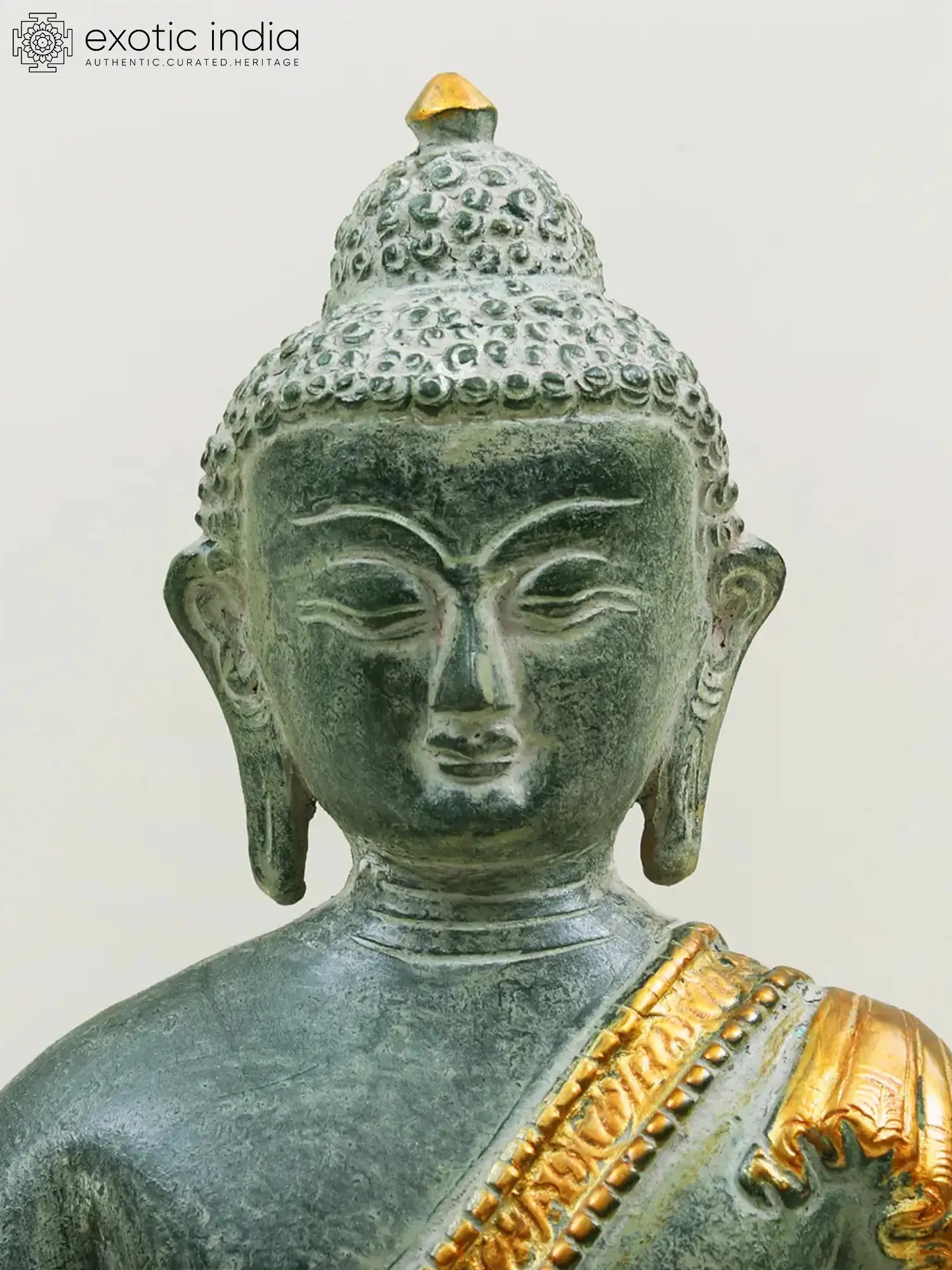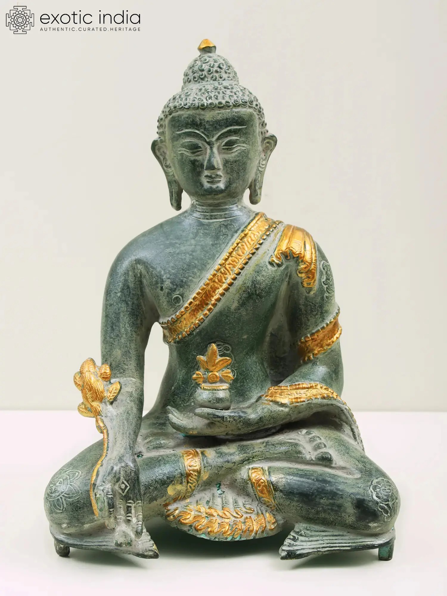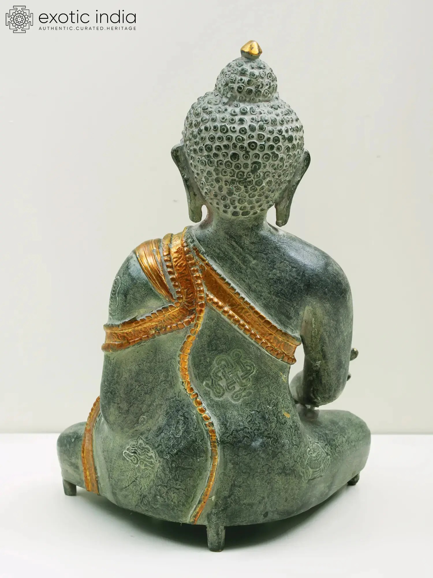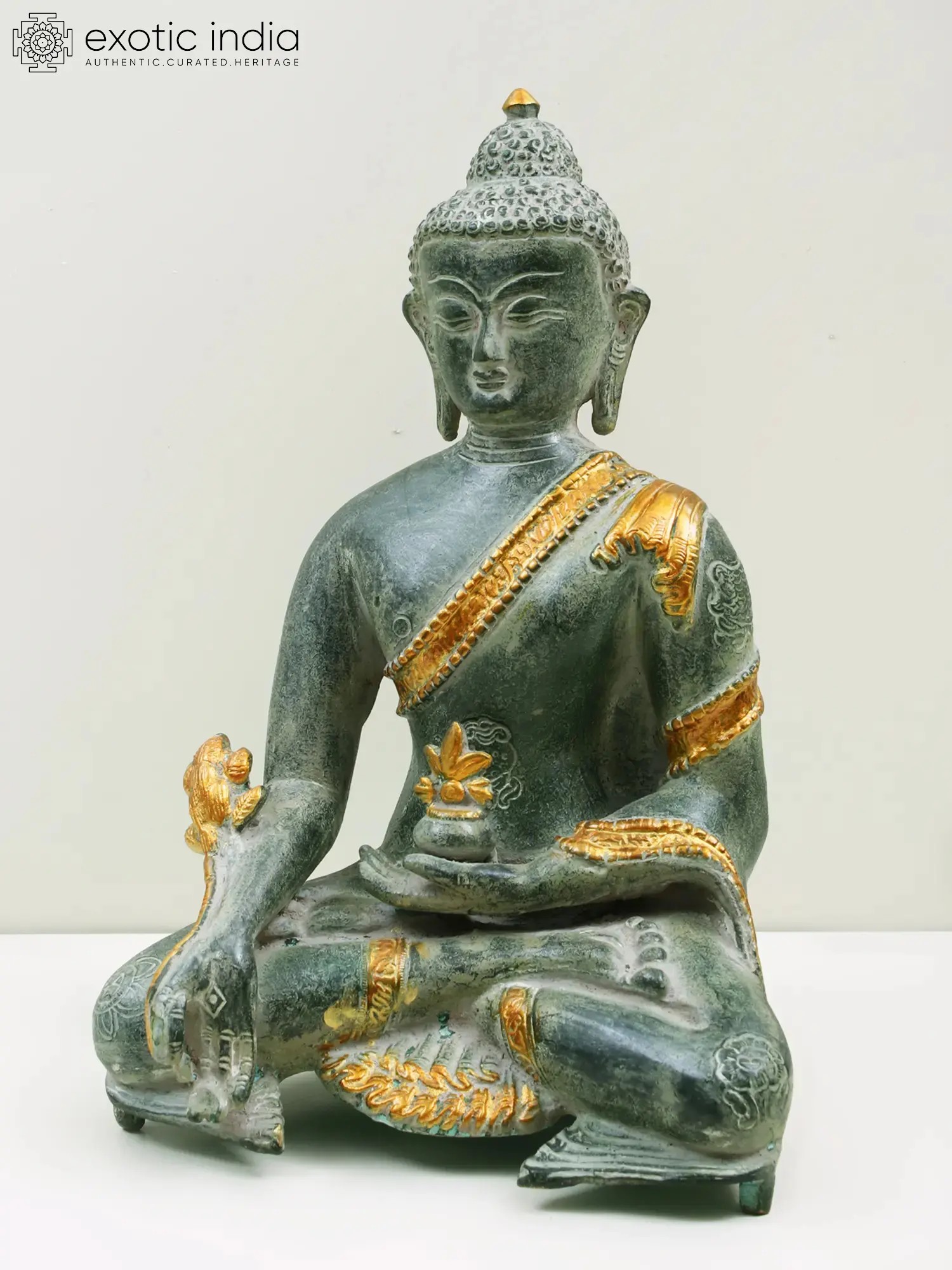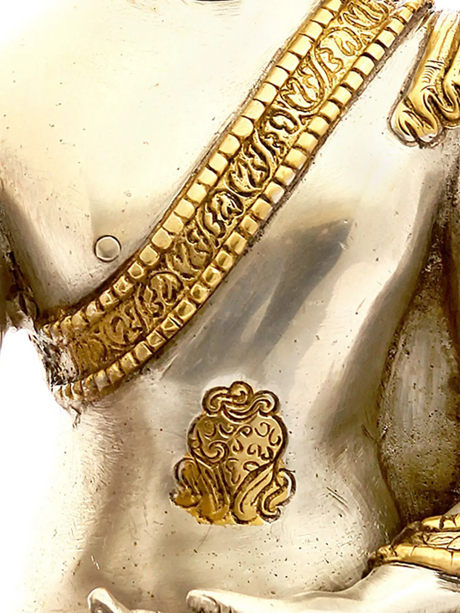 11" (Tibetan Buddhist Deity) The Medicine Buddha in Silver Hue with Golden Border Garment In Brass | Handmade | Made In India