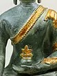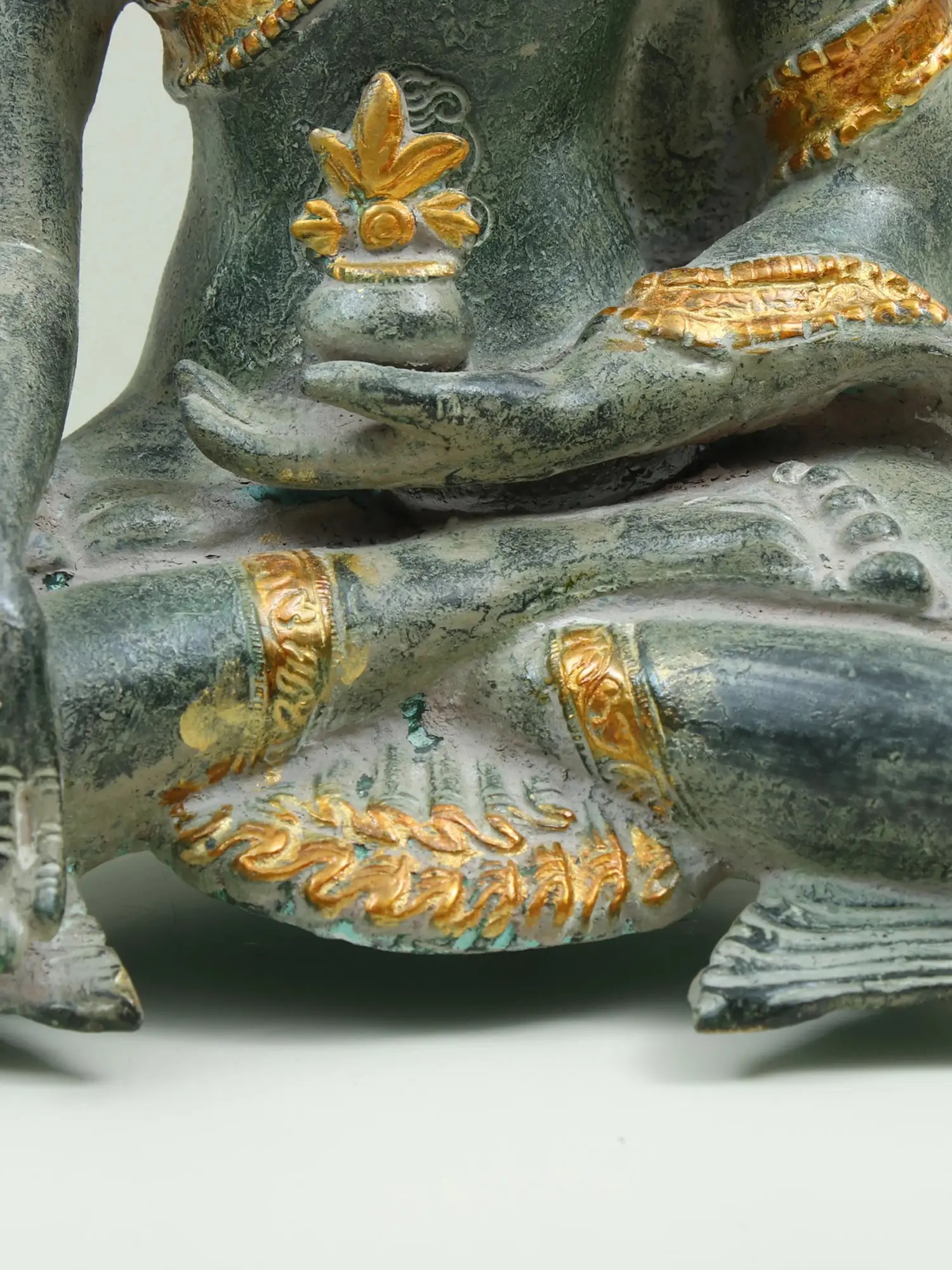 In his left hand, the Medicine Buddha holds a lapis lazuli bowl filled with medicine nectar, symbolizing his ability to heal all diseases and ailments, both physical and mental. His right hand rests in his lap in the Varada Mudra, the gesture of giving and compassion, signifying his willingness to grant blessings and help all beings in need. The branch of the myrobalan plant held between his fingers is a potent symbol of healing, believed to possess medicinal properties capable of restoring balance and harmony within the body. The Medicine Buddha is said to have made twelve great vows upon attaining enlightenment, each dedicated to relieving suffering and bringing happiness to all sentient beings. These vows reflect his profound commitment to healing and compassion, making him a powerful symbol of hope and healing for Buddhists around the world. Meditating upon the Medicine Buddha or reciting his mantra are believed to bring physical and mental well-being, as well as protection from negative influences. This statue serves as a tangible reminder of the Medicine Buddha's compassionate presence and his unwavering commitment to healing. It is more than just an art object; it is a sacred representation of enlightenment and compassion, a beacon of hope for those seeking healing and inner peace. Its presence in a home or meditation space can create a tranquil atmosphere, fostering a sense of well-being and connection to the healing power of the Medicine Buddha. This handcrafted piece embodies centuries of artistic and spiritual tradition, a testament to the enduring power of faith and the pursuit of enlightenment.