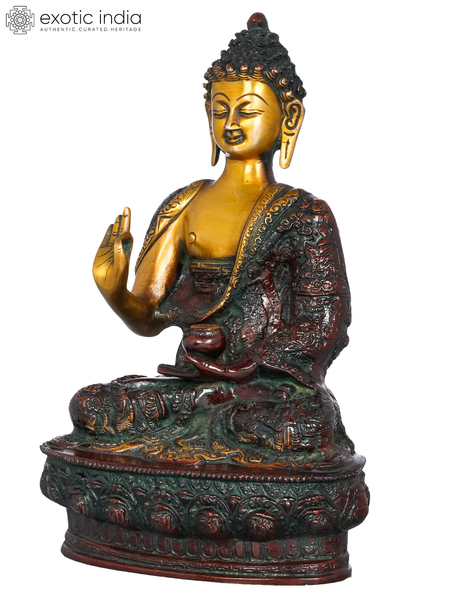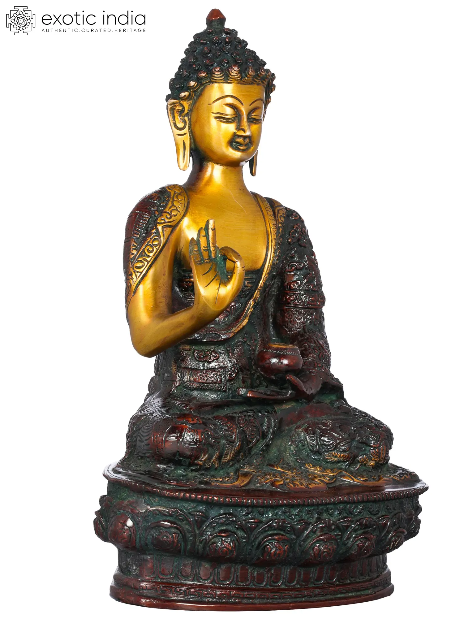 11" Tibetan Buddhist Deity Preaching Buddha In Brass | Handmade | Made In India